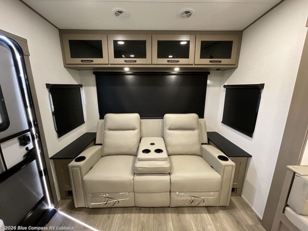 This is the perfect couple's trailer with a space for an overnight guest or two little ones on the booth dinette. You can switch out this dinette for an optional swivel dinette as well, and the standard theater seating can be replaced by an optional trundle bed if you need more sleeping space. A 40" HDTV will keep you entertained when the weather isn't cooperating, and you can whip up your best meals in the full kitchen. And a 19' power awning will provide shade if you choose to take your plate outdoors! The spacious full bath will let you clean up each day, and you'll feel right at home in the front private bedroom with a queen bed!