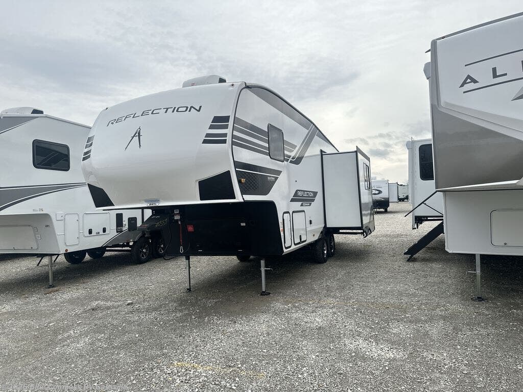 Each Reflection 100 Series fifth wheel by Grand Design is affordable and packed with luxury for unforgettable camping memories! The MorRyde CRE3000 suspension system and Goodyear Endurance tires will provide smooth towing from home to campground. And the solar package with a 180W solar panel, 60 Amp charge controller and 12V refrigerator will allow you to camp for longer periods of time and in more locations! A heated and enclosed underbelly with circulating heat is included in the Arctic 4-Seasons Protection Package, along with a double insulated roof and front cap, and thermofoil insulation under the holding tanks so you can camp all year long if you choose. You will appreciate having an on-demand water heater for hot showers after exploring, and the universal all-in-one docking station will let you monitor your RVs tanks levels and functions with ease. These models also include many luxurious interior features, such as premium Congoleum flooring, pleated shades, residential cabinetry, and matte black fixtures and hardware. Don't let the Reflection 100 Series fifth wheels pass you by!