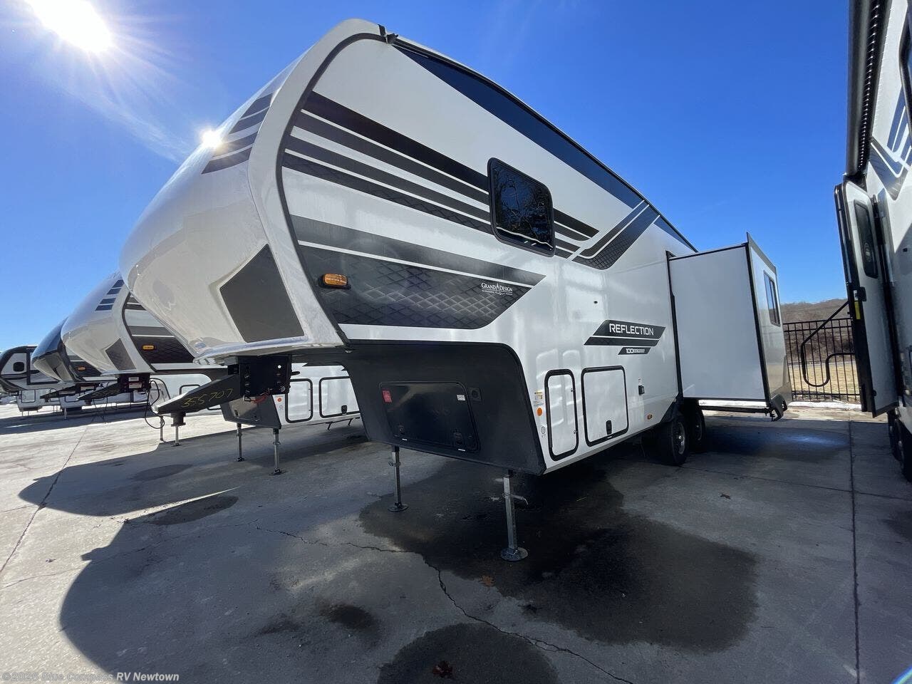 Each Reflection 100 Series fifth wheel by Grand Design is affordable and packed with luxury for unforgettable camping memories! The MorRyde CRE3000 suspension system and Goodyear Endurance tires will provide smooth towing from home to campground. And the solar package with a 180W solar panel, 60 Amp charge controller and 12V refrigerator will allow you to camp for longer periods of time and in more locations! A heated and enclosed underbelly with circulating heat is included in the Arctic 4-Seasons Protection Package, along with a double insulated roof and front cap, and thermofoil insulation under the holding tanks so you can camp all year long if you choose. You will appreciate having an on-demand water heater for hot showers after exploring, and the universal all-in-one docking station will let you monitor your RVs tanks levels and functions with ease. These models also include many luxurious interior features, such as premium Congoleum flooring, pleated shades, residential cabinetry, and matte black fixtures and hardware. Don't let the Reflection 100 Series fifth wheels pass you by!