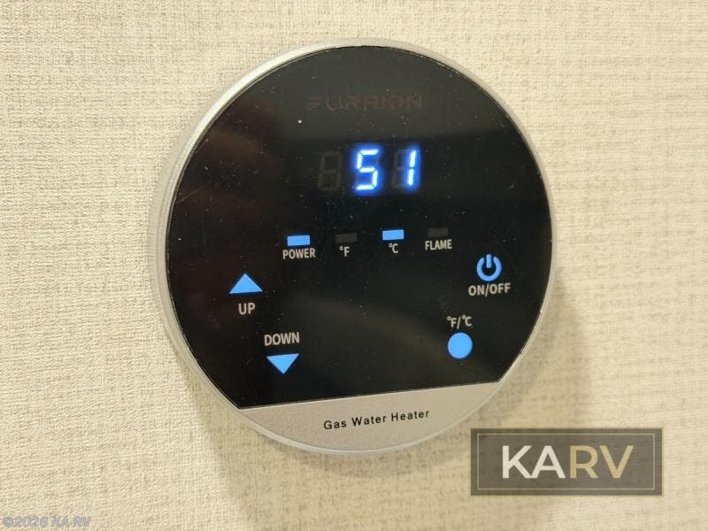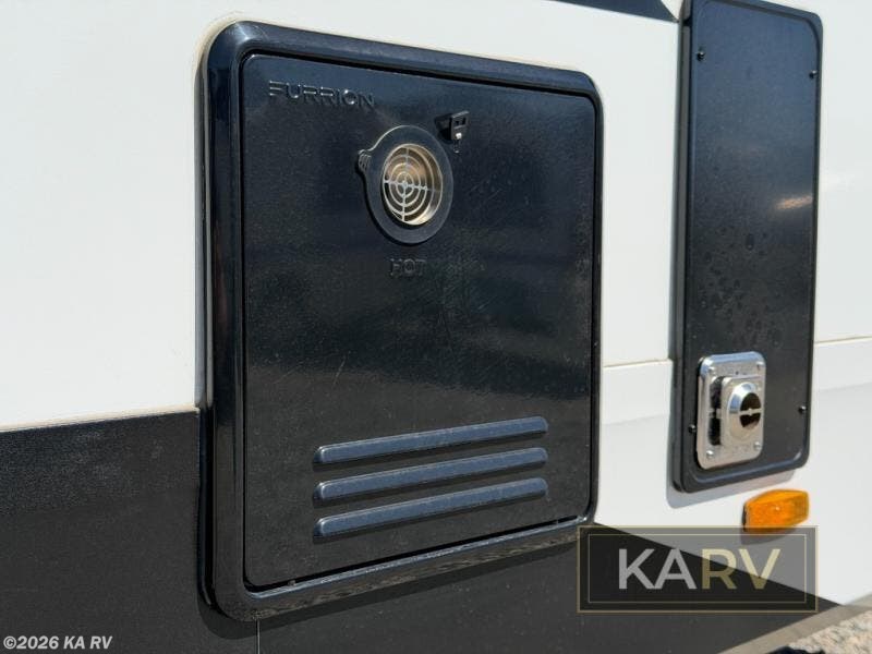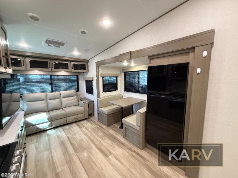 This is the perfect couple's trailer with a space for an overnight guest or two little ones on the booth dinette. You can switch out this dinette for an optional swivel dinette as well, and the standard theater seating can be replaced by an optional trundle bed if you need more sleeping space. A 40" HDTV will keep you entertained when the weather isn't cooperating, and you can whip up your best meals in the full kitchen. And a 19' power awning will provide shade if you choose to take your plate outdoors! The spacious full bath will let you clean up each day, and you'll feel right at home in the front private bedroom with a queen bed!