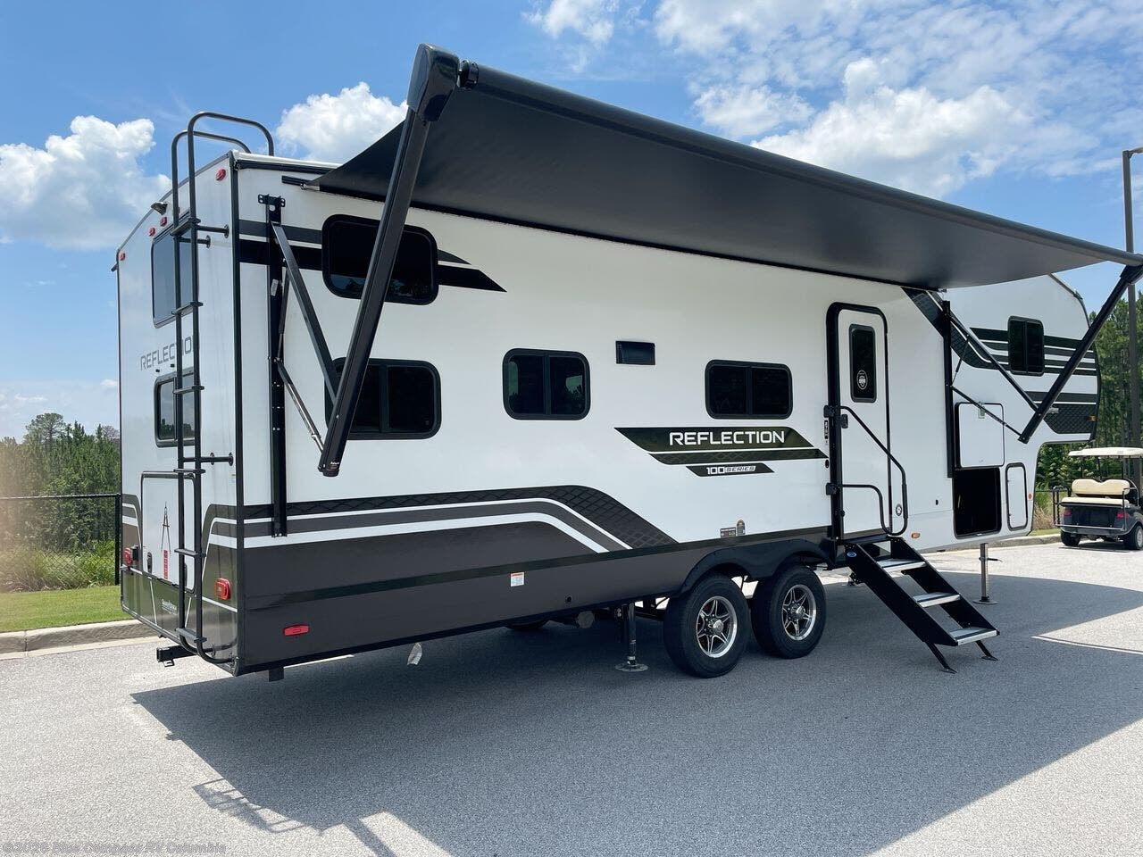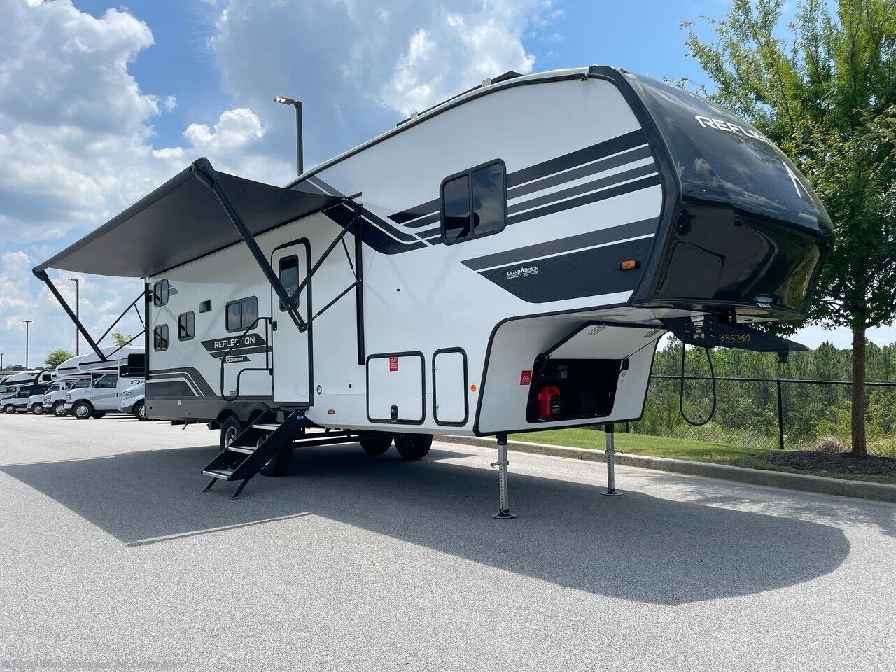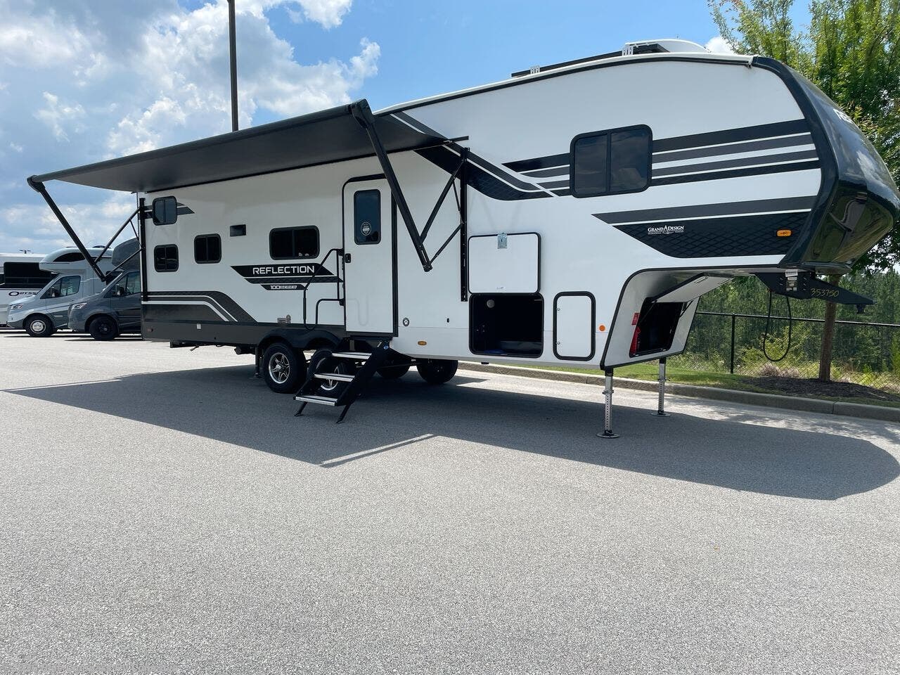 Each Reflection 100 Series fifth wheel by Grand Design is affordable and packed with luxury for unforgettable camping memories! The MorRyde CRE3000 suspension system and Goodyear Endurance tires will provide smooth towing from home to campground. And the solar package with a 180W solar panel, 60 Amp charge controller and 12V refrigerator will allow you to camp for longer periods of time and in more locations! A heated and enclosed underbelly with circulating heat is included in the Arctic 4-Seasons Protection Package, along with a double insulated roof and front cap, and thermofoil insulation under the holding tanks so you can camp all year long if you choose. You will appreciate having an on-demand water heater for hot showers after exploring, and the universal all-in-one docking station will let you monitor your RVs tanks levels and functions with ease. These models also include many luxurious interior features, such as premium Congoleum flooring, pleated shades, residential cabinetry, and matte black fixtures and hardware. Don't let the Reflection 100 Series fifth wheels pass you by!