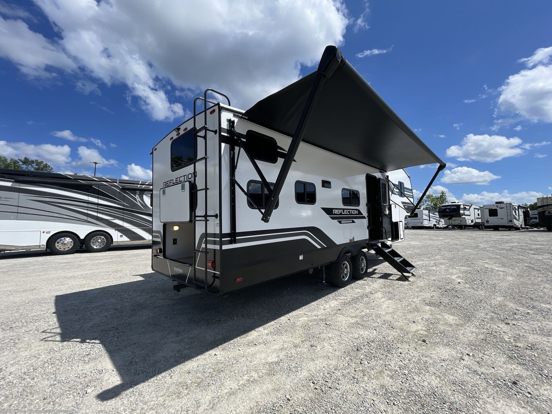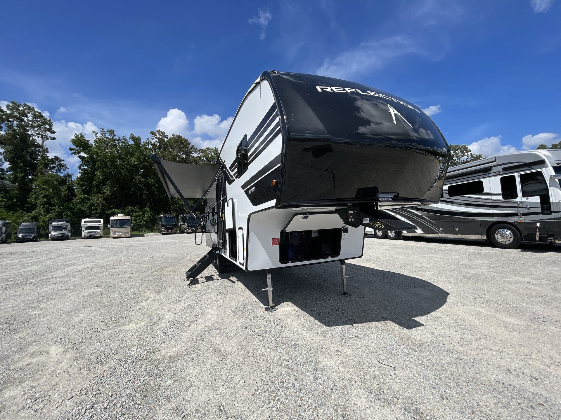 Each Reflection 100 Series fifth wheel by Grand Design is affordable and packed with luxury for unforgettable camping memories! The MorRyde CRE3000 suspension system and Goodyear Endurance tires will provide smooth towing from home to campground. And the solar package with a 180W solar panel, 60 Amp charge controller and 12V refrigerator will allow you to camp for longer periods of time and in more locations! A heated and enclosed underbelly with circulating heat is included in the Arctic 4-Seasons Protection Package, along with a double insulated roof and front cap, and thermofoil insulation under the holding tanks so you can camp all year long if you choose. You will appreciate having an on-demand water heater for hot showers after exploring, and the universal all-in-one docking station will let you monitor your RVs tanks levels and functions with ease. These models also include many luxurious interior features, such as premium Congoleum flooring, pleated shades, residential cabinetry, and matte black fixtures and hardware. Don't let the Reflection 100 Series fifth wheels pass you by!