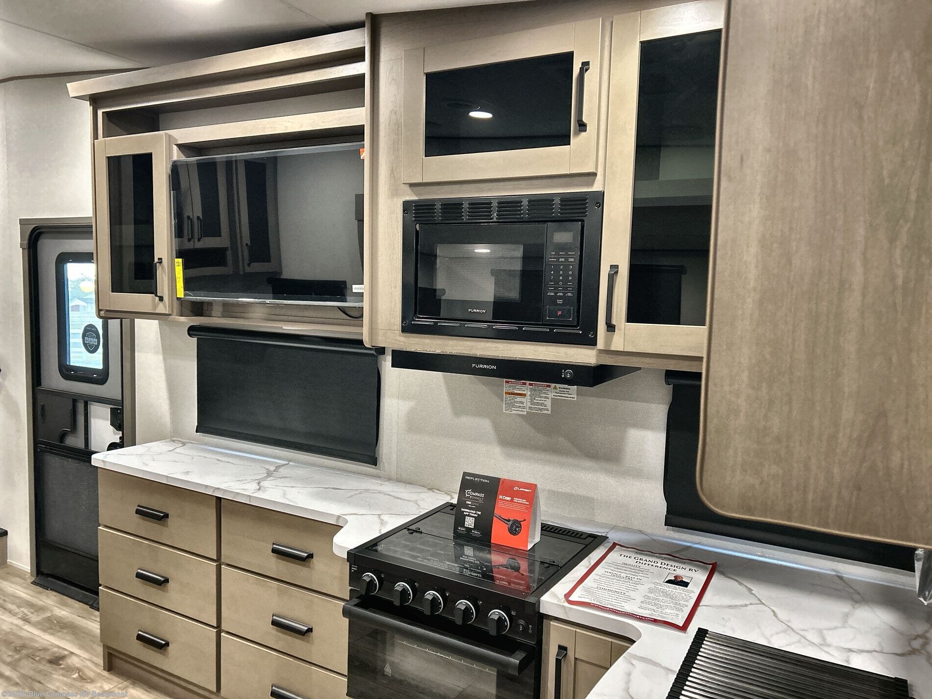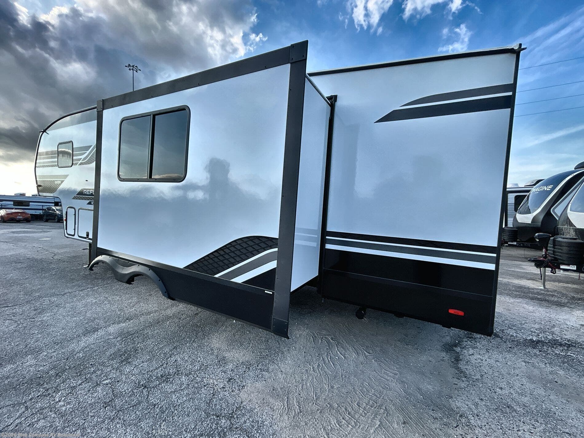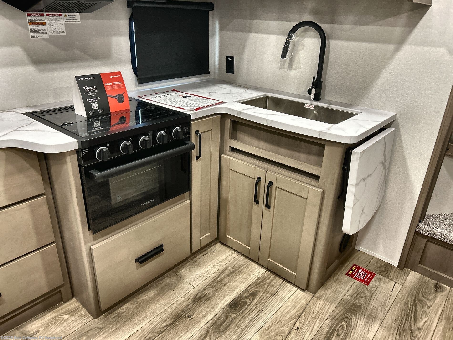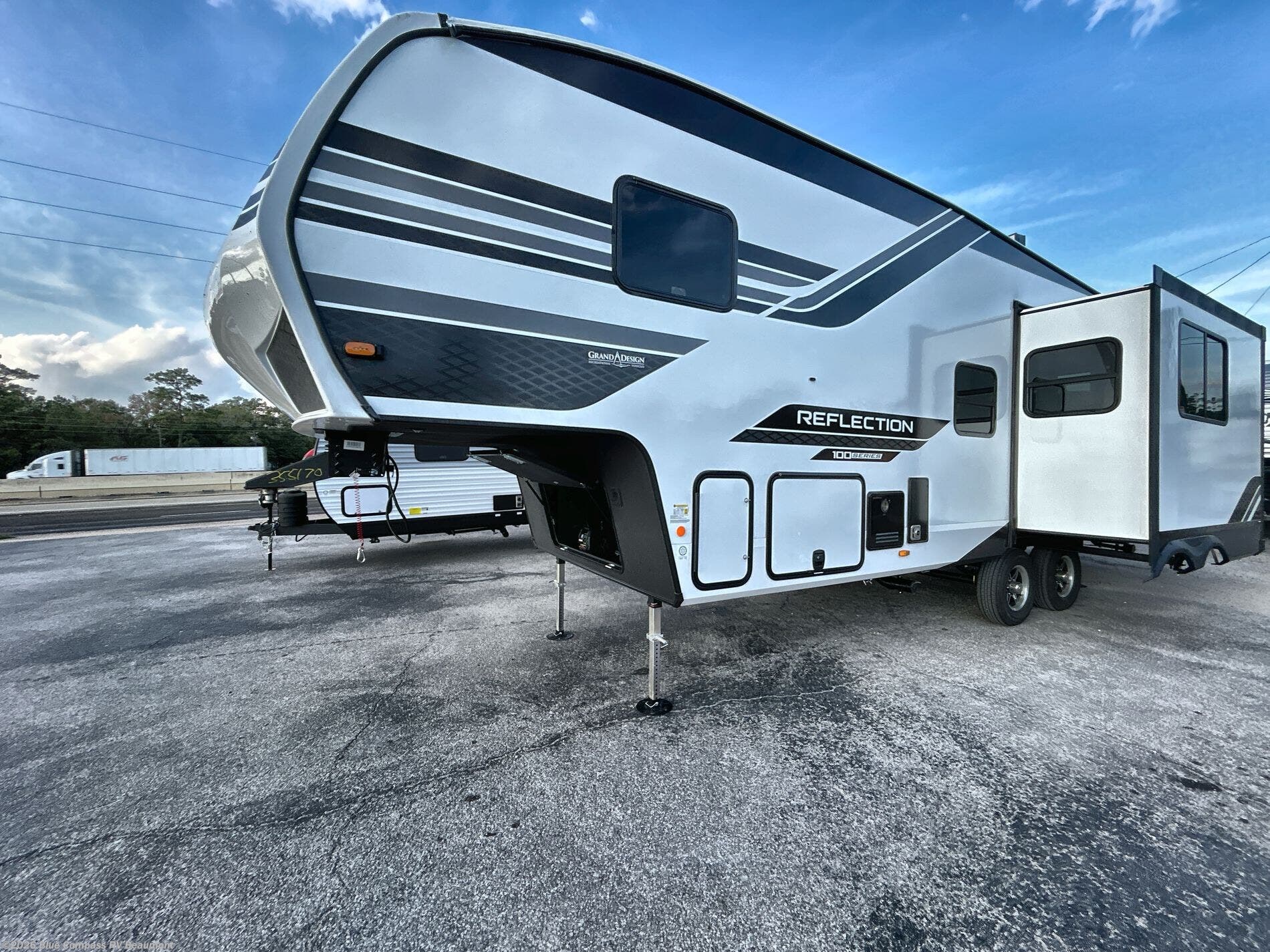 Each Reflection 100 Series fifth wheel by Grand Design is affordable and packed with luxury for unforgettable camping memories! The MorRyde CRE3000 suspension system and Goodyear Endurance tires will provide smooth towing from home to campground. And the solar package with a 180W solar panel, 60 Amp charge controller and 12V refrigerator will allow you to camp for longer periods of time and in more locations! A heated and enclosed underbelly with circulating heat is included in the Arctic 4-Seasons Protection Package, along with a double insulated roof and front cap, and thermofoil insulation under the holding tanks so you can camp all year long if you choose. You will appreciate having an on-demand water heater for hot showers after exploring, and the universal all-in-one docking station will let you monitor your RVs tanks levels and functions with ease. These models also include many luxurious interior features, such as premium Congoleum flooring, pleated shades, residential cabinetry, and matte black fixtures and hardware. Don't let the Reflection 100 Series fifth wheels pass you by!