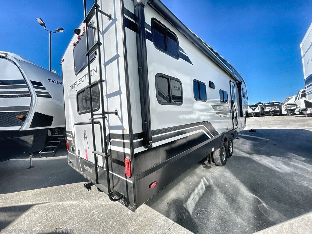 Each Reflection 100 Series fifth wheel by Grand Design is affordable and packed with luxury for unforgettable camping memories! The MorRyde CRE3000 suspension system and Goodyear Endurance tires will provide smooth towing from home to campground. And the solar package with a 180W solar panel, 60 Amp charge controller and 12V refrigerator will allow you to camp for longer periods of time and in more locations! A heated and enclosed underbelly with circulating heat is included in the Arctic 4-Seasons Protection Package, along with a double insulated roof and front cap, and thermofoil insulation under the holding tanks so you can camp all year long if you choose. You will appreciate having an on-demand water heater for hot showers after exploring, and the universal all-in-one docking station will let you monitor your RVs tanks levels and functions with ease. These models also include many luxurious interior features, such as premium Congoleum flooring, pleated shades, residential cabinetry, and matte black fixtures and hardware. Don't let the Reflection 100 Series fifth wheels pass you by!