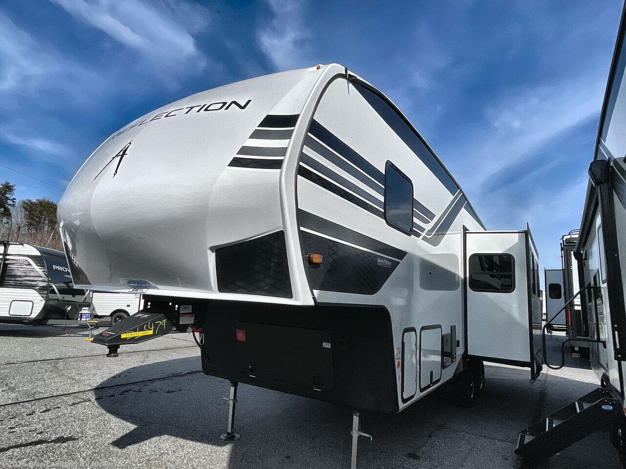 Each Reflection 100 Series fifth wheel by Grand Design is affordable and packed with luxury for unforgettable camping memories! The MorRyde CRE3000 suspension system and Goodyear Endurance tires will provide smooth towing from home to campground. And the solar package with a 180W solar panel, 60 Amp charge controller and 12V refrigerator will allow you to camp for longer periods of time and in more locations! A heated and enclosed underbelly with circulating heat is included in the Arctic 4-Seasons Protection Package, along with a double insulated roof and front cap, and thermofoil insulation under the holding tanks so you can camp all year long if you choose. You will appreciate having an on-demand water heater for hot showers after exploring, and the universal all-in-one docking station will let you monitor your RVs tanks levels and functions with ease. These models also include many luxurious interior features, such as premium Congoleum flooring, pleated shades, residential cabinetry, and matte black fixtures and hardware. Don't let the Reflection 100 Series fifth wheels pass you by!