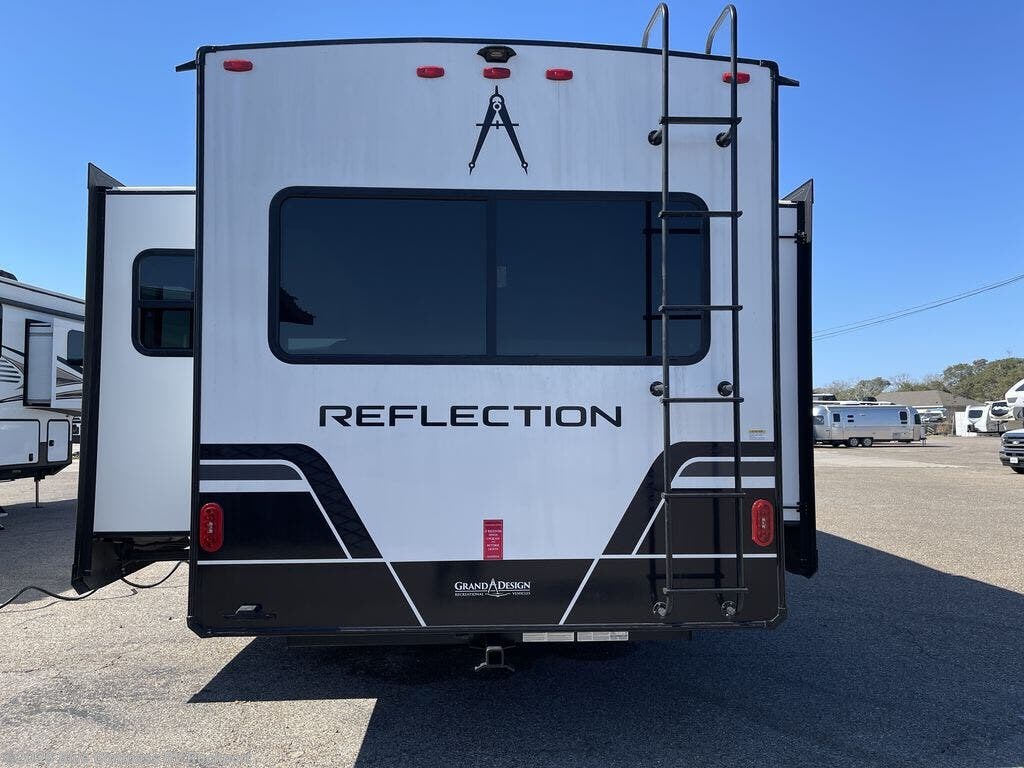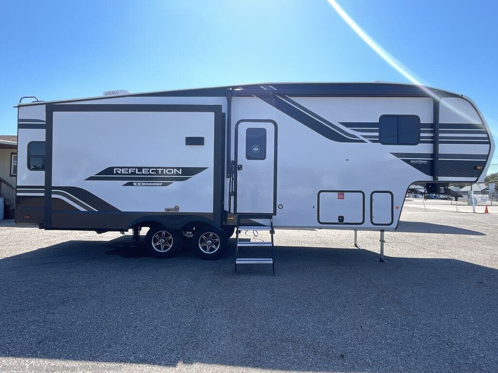 Each Reflection 100 Series fifth wheel by Grand Design is affordable and packed with luxury for unforgettable camping memories! The MorRyde CRE3000 suspension system and Goodyear Endurance tires will provide smooth towing from home to campground. And the solar package with a 180W solar panel, 60 Amp charge controller and 12V refrigerator will allow you to camp for longer periods of time and in more locations! A heated and enclosed underbelly with circulating heat is included in the Arctic 4-Seasons Protection Package, along with a double insulated roof and front cap, and thermofoil insulation under the holding tanks so you can camp all year long if you choose. You will appreciate having an on-demand water heater for hot showers after exploring, and the universal all-in-one docking station will let you monitor your RVs tanks levels and functions with ease. These models also include many luxurious interior features, such as premium Congoleum flooring, pleated shades, residential cabinetry, and matte black fixtures and hardware. Don't let the Reflection 100 Series fifth wheels pass you by!
