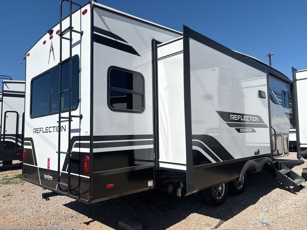 Each Reflection 100 Series fifth wheel by Grand Design is affordable and packed with luxury for unforgettable camping memories! The MorRyde CRE3000 suspension system and Goodyear Endurance tires will provide smooth towing from home to campground. And the solar package with a 180W solar panel, 60 Amp charge controller and 12V refrigerator will allow you to camp for longer periods of time and in more locations! A heated and enclosed underbelly with circulating heat is included in the Arctic 4-Seasons Protection Package, along with a double insulated roof and front cap, and thermofoil insulation under the holding tanks so you can camp all year long if you choose. You will appreciate having an on-demand water heater for hot showers after exploring, and the universal all-in-one docking station will let you monitor your RVs tanks levels and functions with ease. These models also include many luxurious interior features, such as premium Congoleum flooring, pleated shades, residential cabinetry, and matte black fixtures and hardware. Don't let the Reflection 100 Series fifth wheels pass you by!