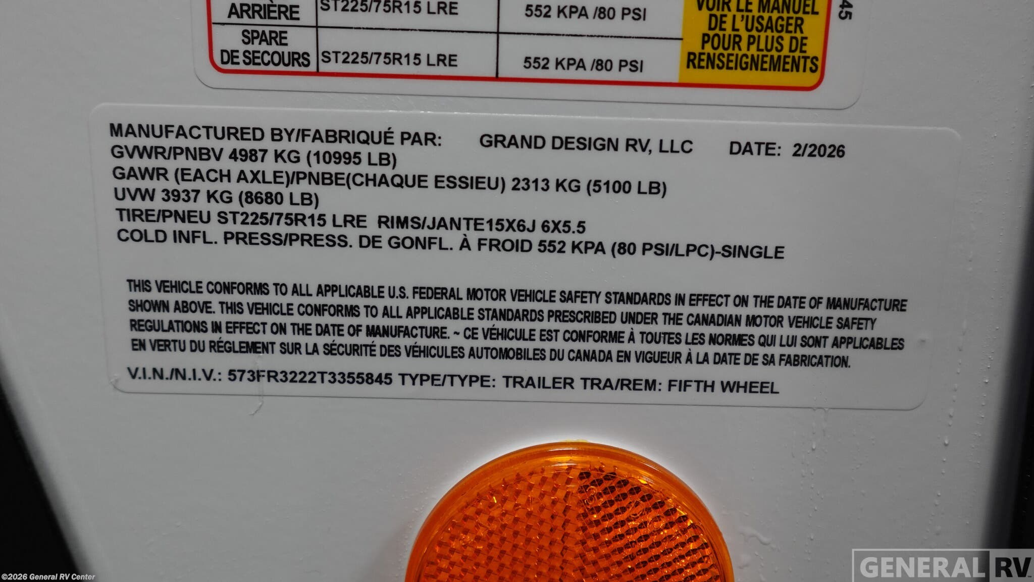 2026 Grand Design Reflection 100 Series 28RL Specifications