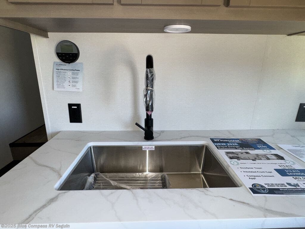 Each Reflection 100 Series fifth wheel by Grand Design is affordable and packed with luxury for unforgettable camping memories! The MorRyde CRE3000 suspension system and Goodyear Endurance tires will provide smooth towing from home to campground. And the solar package with a 180W solar panel, 60 Amp charge controller and 12V refrigerator will allow you to camp for longer periods of time and in more locations! A heated and enclosed underbelly with circulating heat is included in the Arctic 4-Seasons Protection Package, along with a double insulated roof and front cap, and thermofoil insulation under the holding tanks so you can camp all year long if you choose. You will appreciate having an on-demand water heater for hot showers after exploring, and the universal all-in-one docking station will let you monitor your RVs tanks levels and functions with ease. These models also include many luxurious interior features, such as premium Congoleum flooring, pleated shades, residential cabinetry, and matte black fixtures and hardware. Don't let the Reflection 100 Series fifth wheels pass you by!