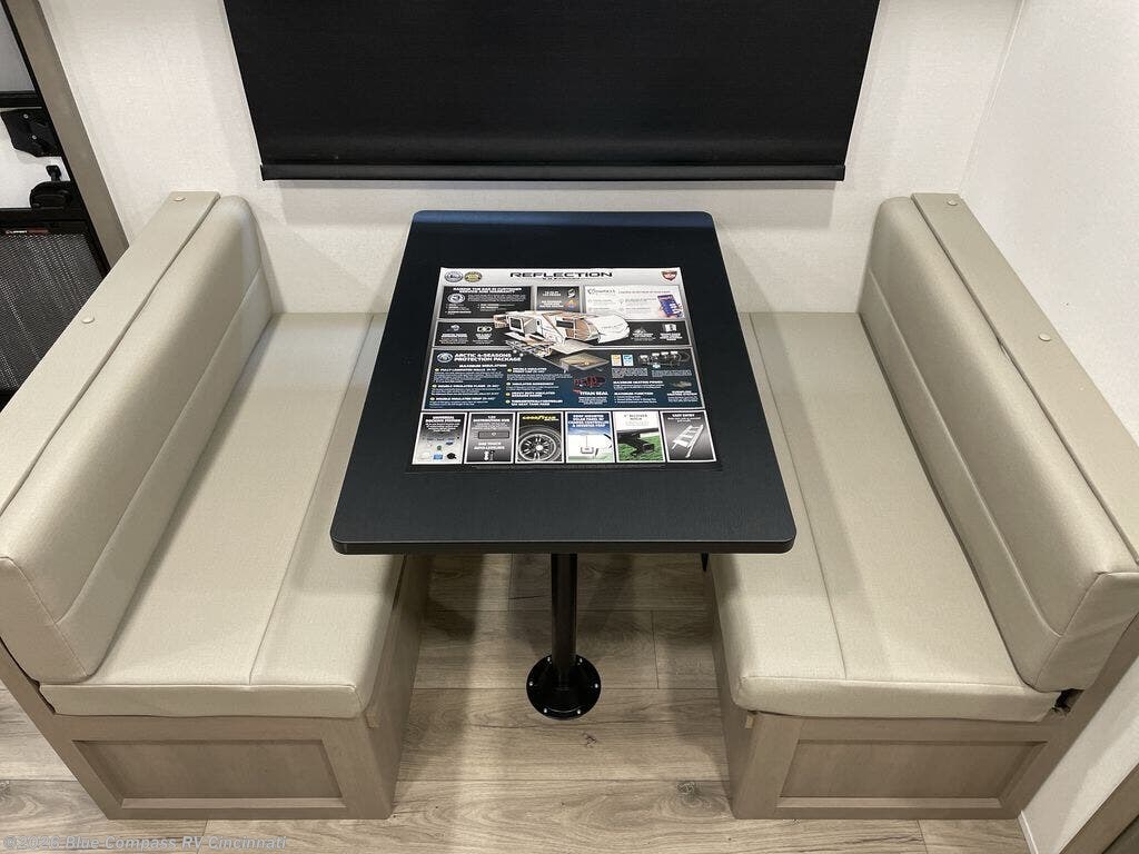 Each Reflection 100 Series fifth wheel by Grand Design is affordable and packed with luxury for unforgettable camping memories! The MorRyde CRE3000 suspension system and Goodyear Endurance tires will provide smooth towing from home to campground. And the solar package with a 180W solar panel, 60 Amp charge controller and 12V refrigerator will allow you to camp for longer periods of time and in more locations! A heated and enclosed underbelly with circulating heat is included in the Arctic 4-Seasons Protection Package, along with a double insulated roof and front cap, and thermofoil insulation under the holding tanks so you can camp all year long if you choose. You will appreciate having an on-demand water heater for hot showers after exploring, and the universal all-in-one docking station will let you monitor your RVs tanks levels and functions with ease. These models also include many luxurious interior features, such as premium Congoleum flooring, pleated shades, residential cabinetry, and matte black fixtures and hardware. Don't let the Reflection 100 Series fifth wheels pass you by!