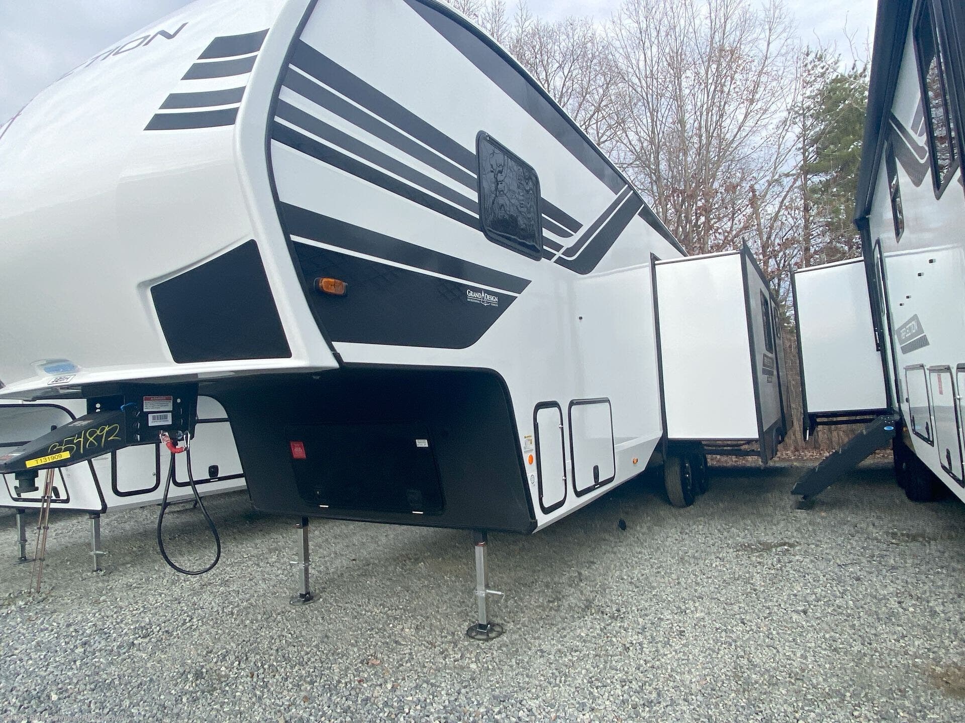 Each Reflection 100 Series fifth wheel by Grand Design is affordable and packed with luxury for unforgettable camping memories! The MorRyde CRE3000 suspension system and Goodyear Endurance tires will provide smooth towing from home to campground. And the solar package with a 180W solar panel, 60 Amp charge controller and 12V refrigerator will allow you to camp for longer periods of time and in more locations! A heated and enclosed underbelly with circulating heat is included in the Arctic 4-Seasons Protection Package, along with a double insulated roof and front cap, and thermofoil insulation under the holding tanks so you can camp all year long if you choose. You will appreciate having an on-demand water heater for hot showers after exploring, and the universal all-in-one docking station will let you monitor your RVs tanks levels and functions with ease. These models also include many luxurious interior features, such as premium Congoleum flooring, pleated shades, residential cabinetry, and matte black fixtures and hardware. Don't let the Reflection 100 Series fifth wheels pass you by!