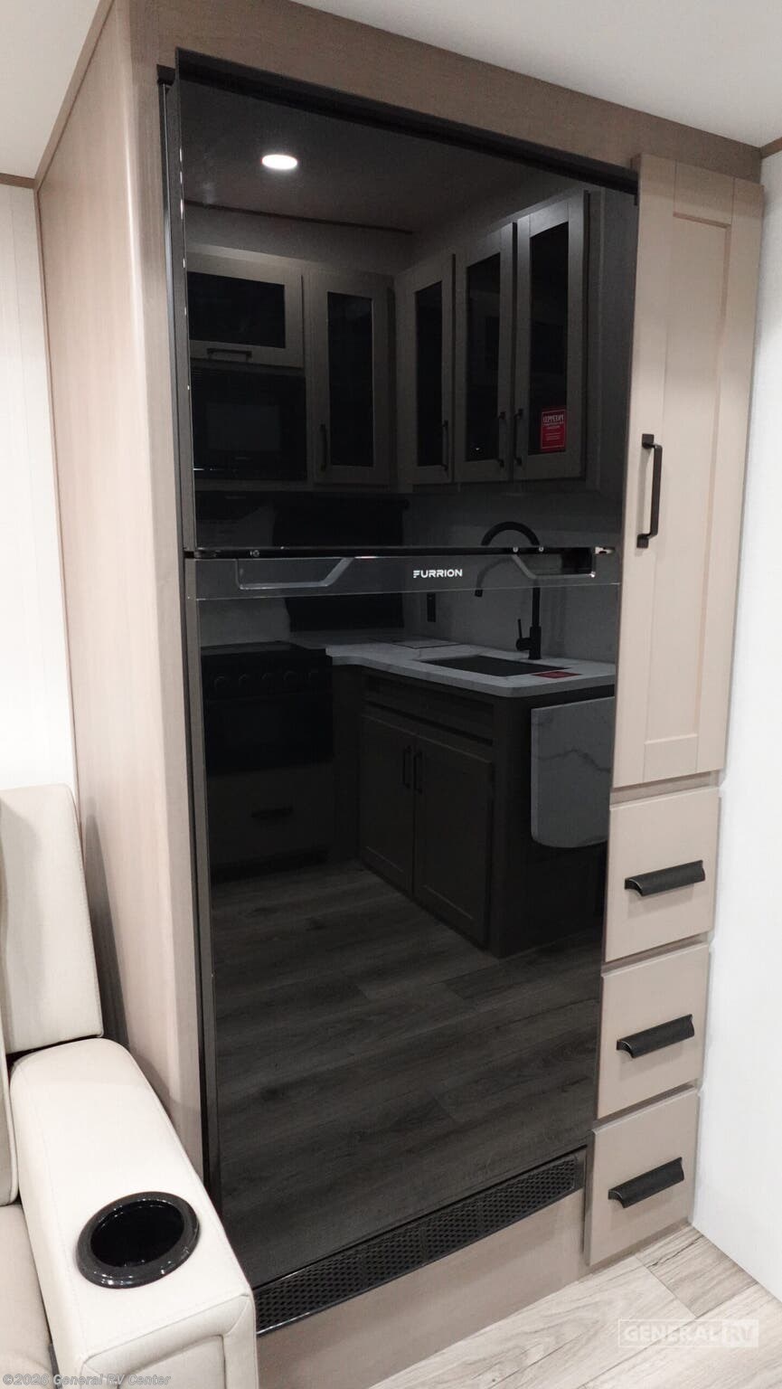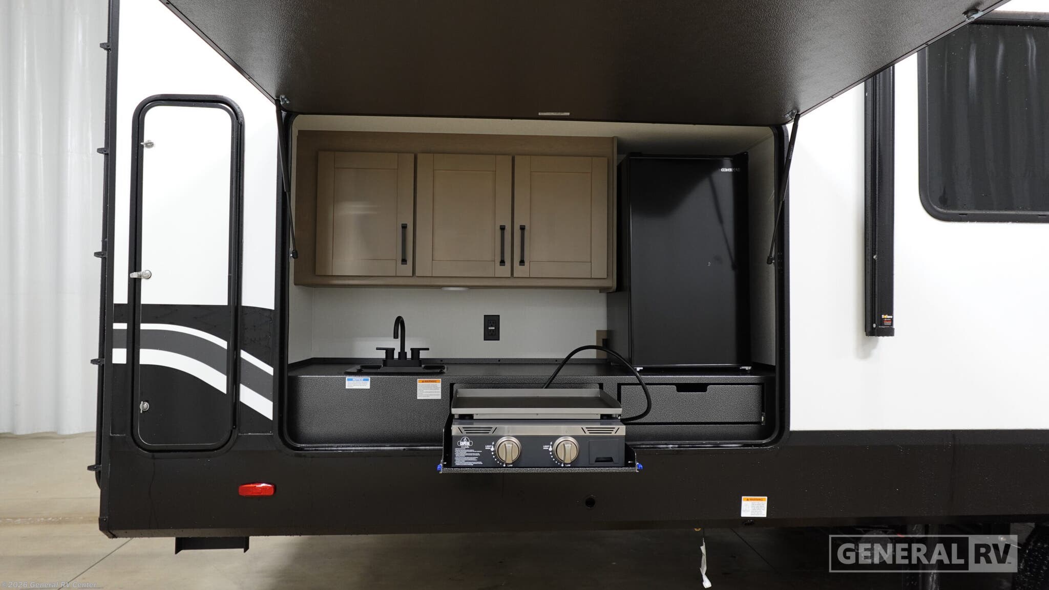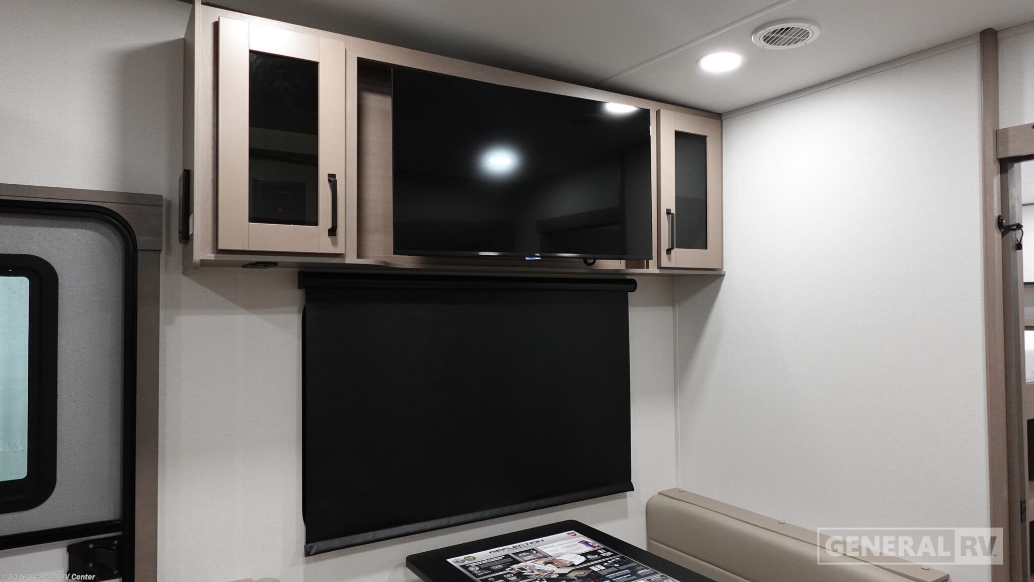 **Grand Design Reflection 100 Series fifth wheel 32BH highlights:** - Bunkhouse - Queen Bed - 19' "One Touch" Electric Awning - Full Bath - Front Private Bedroom - Outside Kitchen You will love this fifth wheel’s multiple sleeping spaces, such as the 36” flip top bunk offers flexible sleeping options for added capacity and comfort. A trundle bed provides an additional cozy sleeping space, ideal for guests or family members, and the 44” bunk bed with window features a comfortable sleeping area with natural light, ideal for kids or relaxation. Plus, the front bedroom boasts a queen bed, creating a peaceful retreat for rest and rejuvenation. In the living area, you will find a space that creates a warm and intimate spot for meals and conversation. The 40” TV delivers entertainment for relaxation and enjoyment, a theater seating provides immersive comfort for an exceptional viewing experience, and the well-appointed kitchen features a 10 cu ft refrigerator that ensures ample storage for fresh ingredients and beverages, a pantry, microwave, and a three-burner cooktop allows for versatile meal preparation. Finally, the full bathroom will complete the at-home experience, adding convenience to this model. Each Reflection 100 Series fifth wheel by Grand Design is affordable and packed with luxury for unforgettable camping memories! The MorRyde CRE3000 suspension system and Goodyear Endurance tires will provide smooth towing from home to campground. And the solar package with a 180W solar panel, 60 Amp charge controller and 12V refrigerator will allow you to camp for longer periods of time and in more locations! A heated and enclosed underbelly with circulating heat is included in the Arctic 4-Seasons Protection Package, along with a double insulated roof and front cap, and thermofoil insulation under the holding tanks so you can camp all year long if you choose. You will appreciate having an on-demand water heater for hot showers after exploring, and the universal all-in-one docking station will let you monitor your RVs tanks levels and functions with ease. These models also include many luxurious interior features, such as premium Congoleum flooring, pleated shades, residential cabinetry, and matte black fixtures and hardware. Don't let the Reflection 100 Series fifth wheels pass you by!