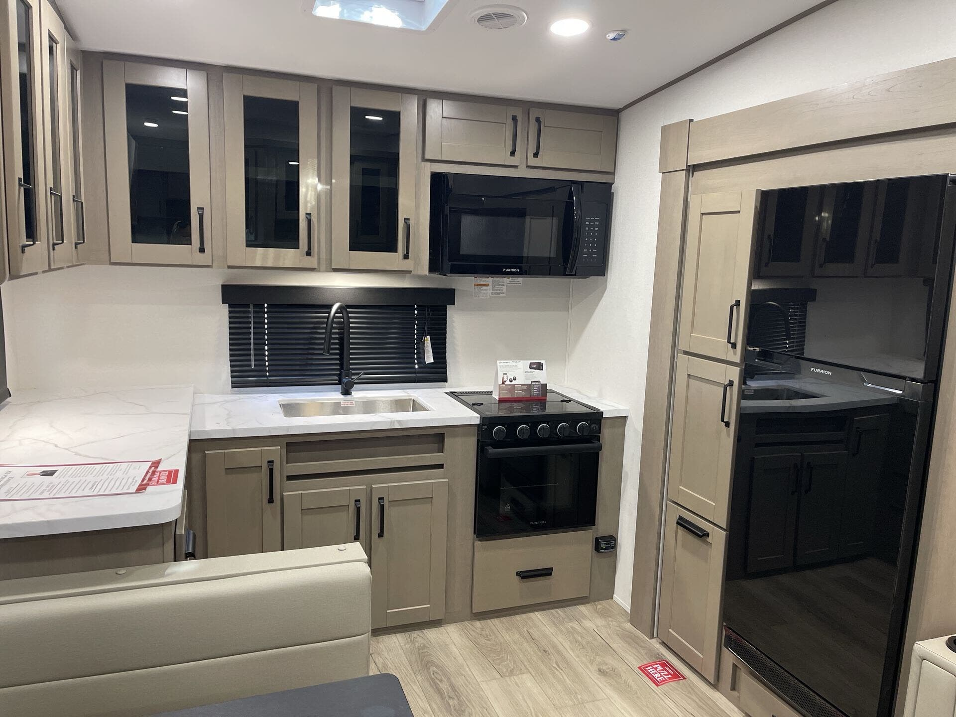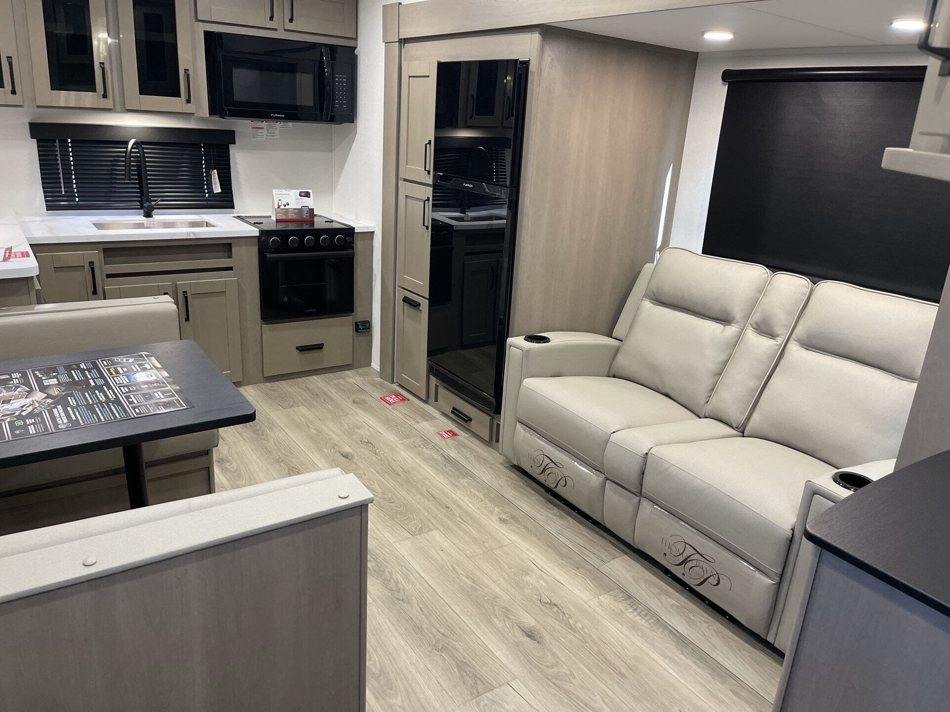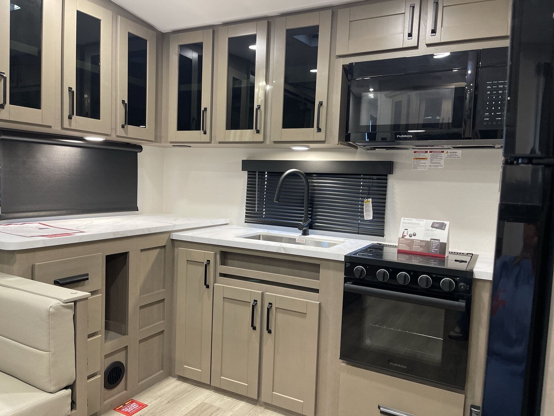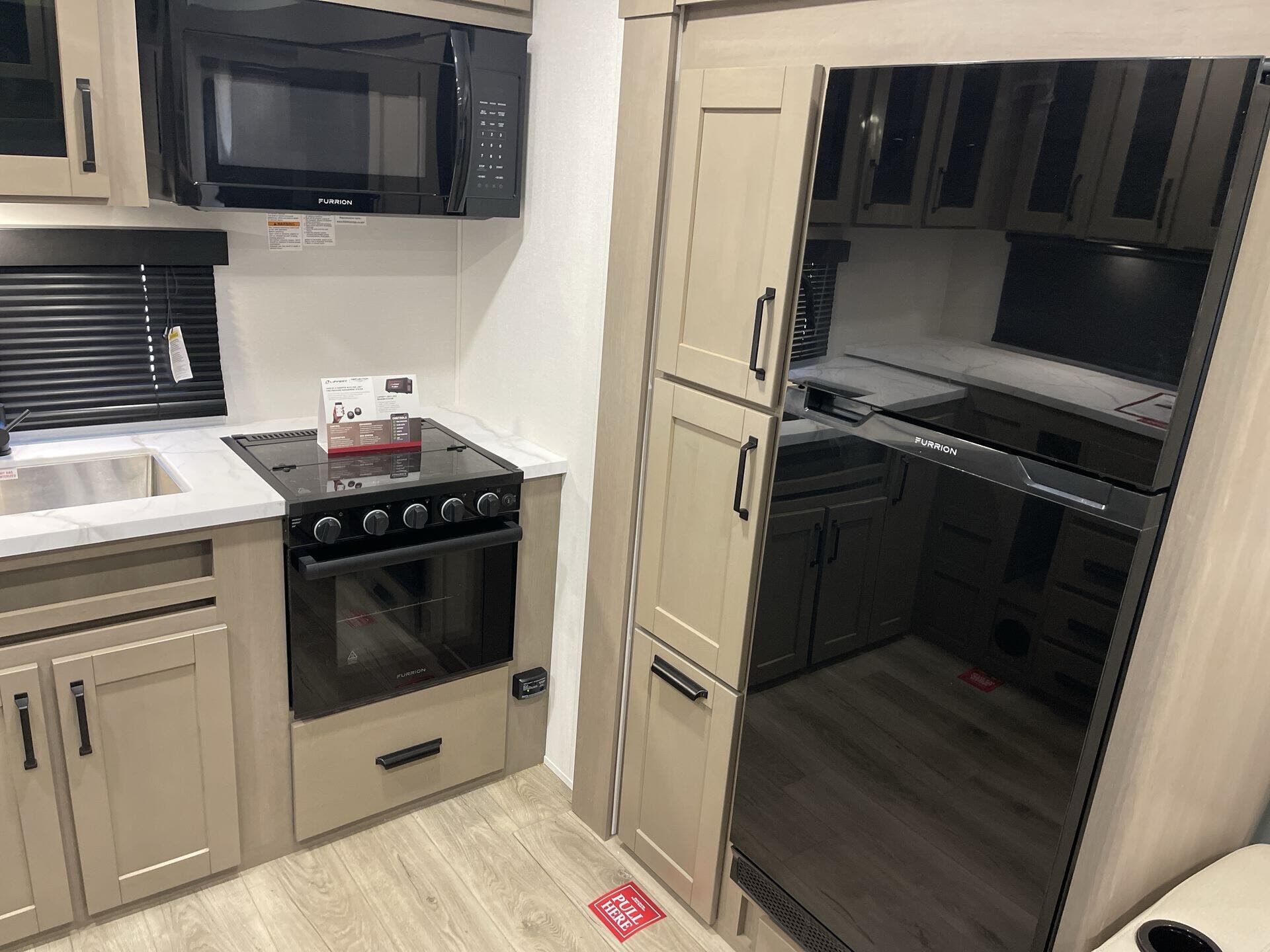 This premium recreational vehicle (RV) from Grand Design embodies the comfort and reliability RV enthusiasts expect from a top-tier travel trailer. As a 2026 Reflection fifth wheel, it delivers a balanced blend of home-like refinement and on-the-road versatility. With a front bedroom, mid bath, and rear kitchen layout, this model maximizes living space while maintaining a compact overall footprint for easy maneuvering. Designed as a new addition to the lineup, it’s ideal for weekend getaways or extended adventures in comfort.