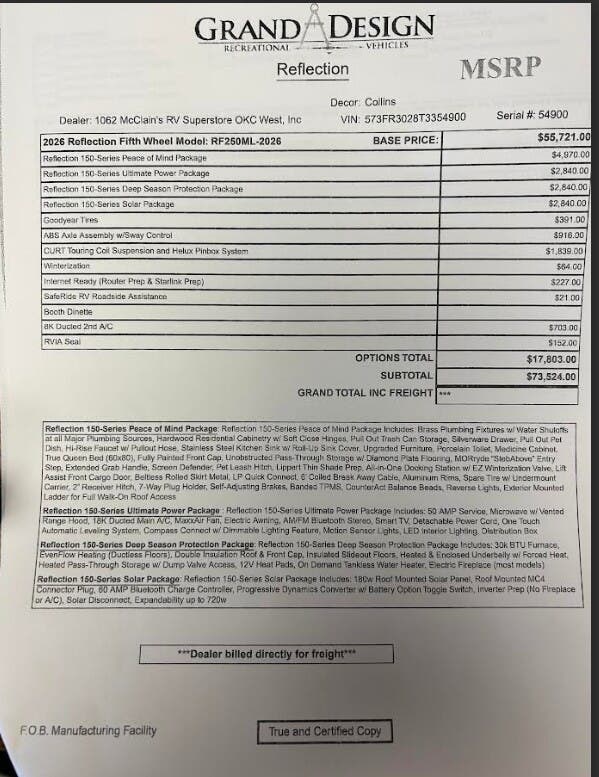 Request More Info on this 2026 Grand Design Reflection 150 250ML Offered for sale by McClain's RV Oklahoma City