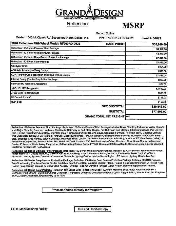 Request More Info on this 2026 Grand Design Reflection 150 260RD Offered for sale by McClain's RV Superstore