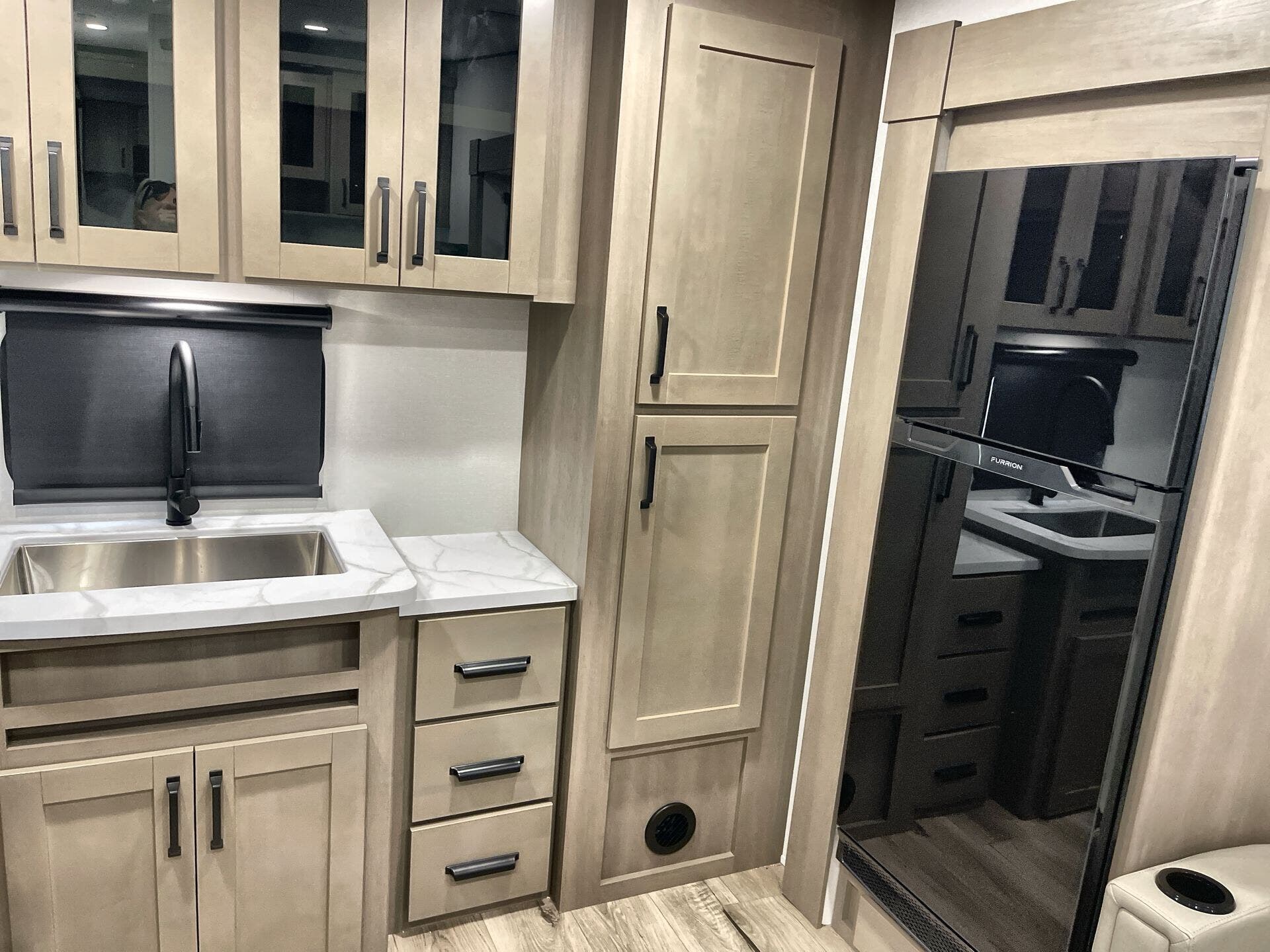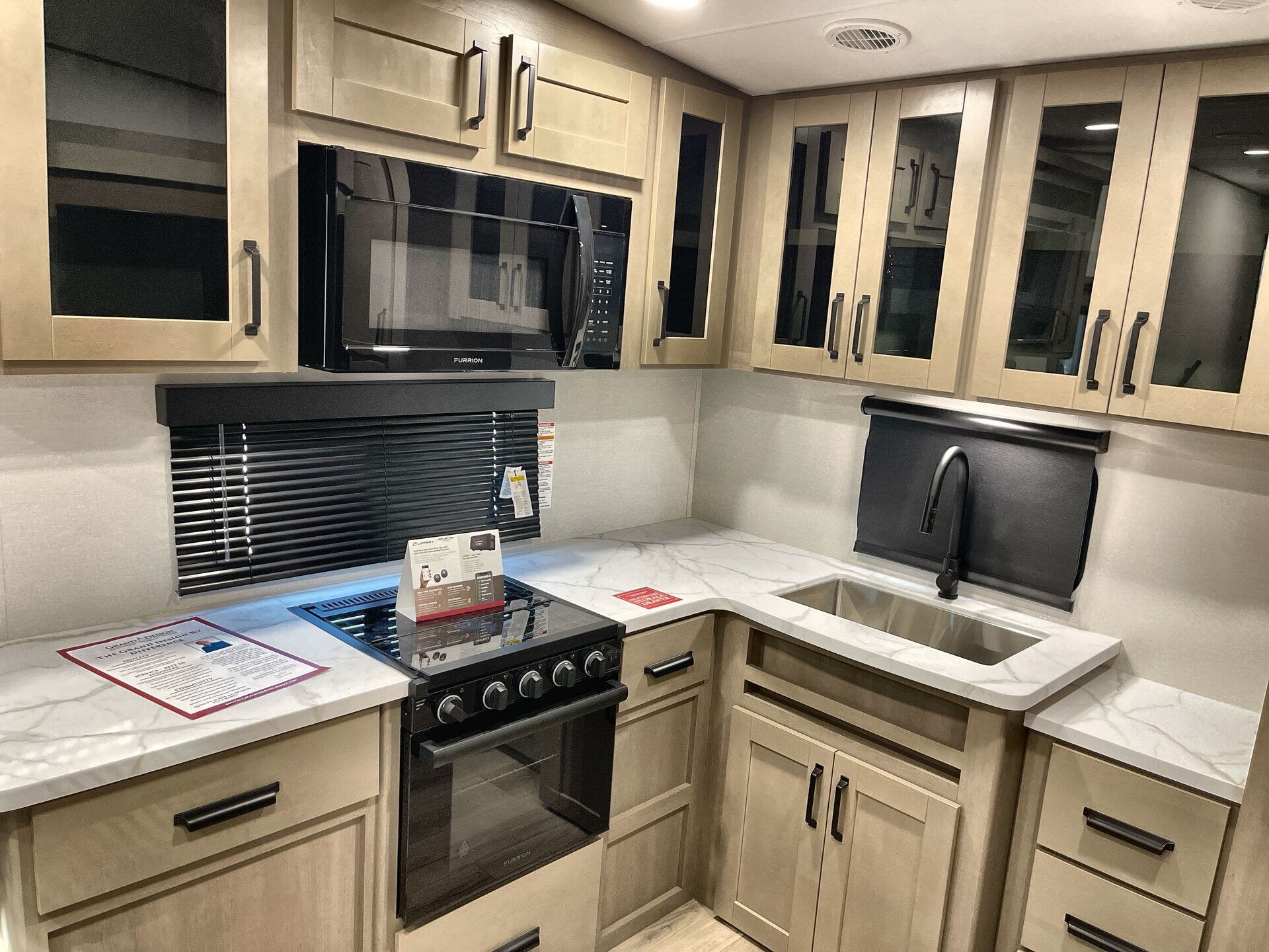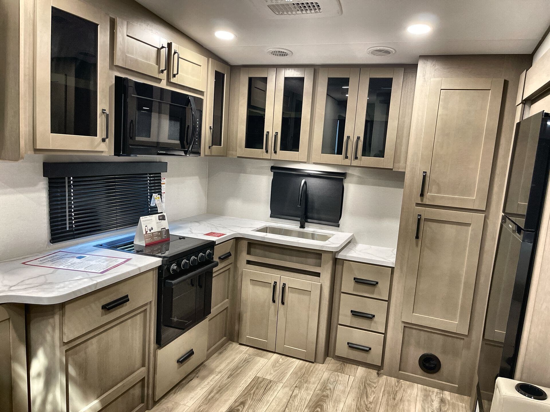 - Overhead cabinetry and residential-style kitchen features for organization and convenience