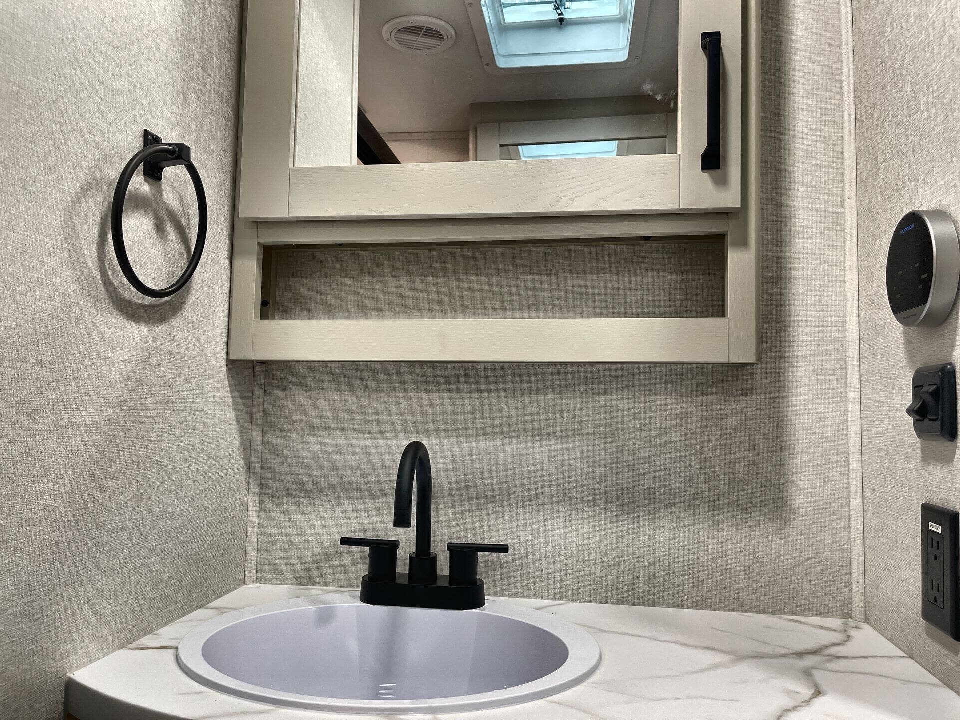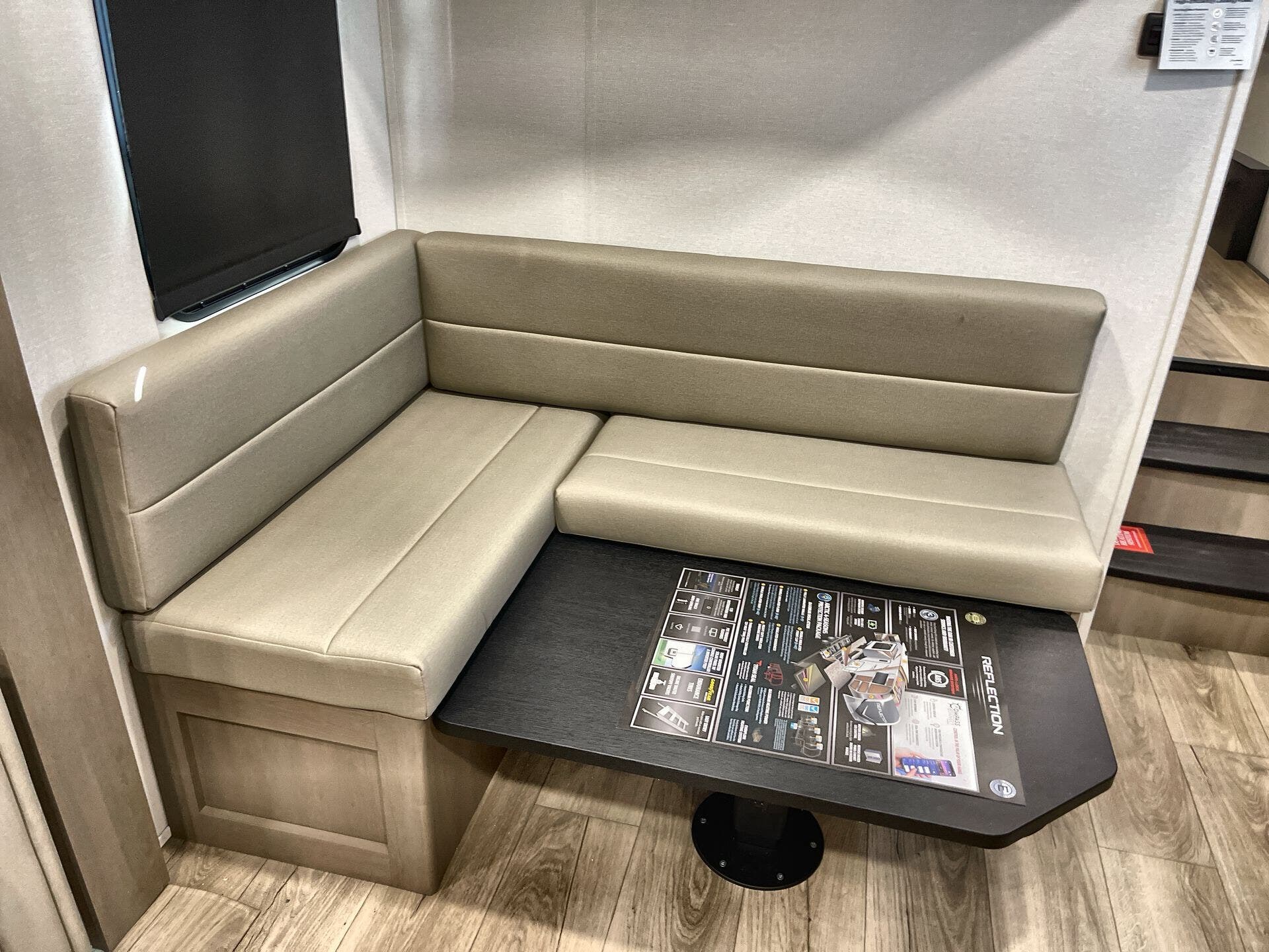 The Reflection floorplan features a well-balanced arrangement that includes a front bedroom, mid bath, rear living area, and flexible rear zones for dining and entertainment. With one slide-out, the layout maximizes usable living space without compromising maneuverability. This configuration is ideal for couples, families, or groups seeking a comfortable, functional travel trailer experience. Whether you’re cooking, lounging, or sleeping, every area is designed for ease of use and long-lasting comfort.