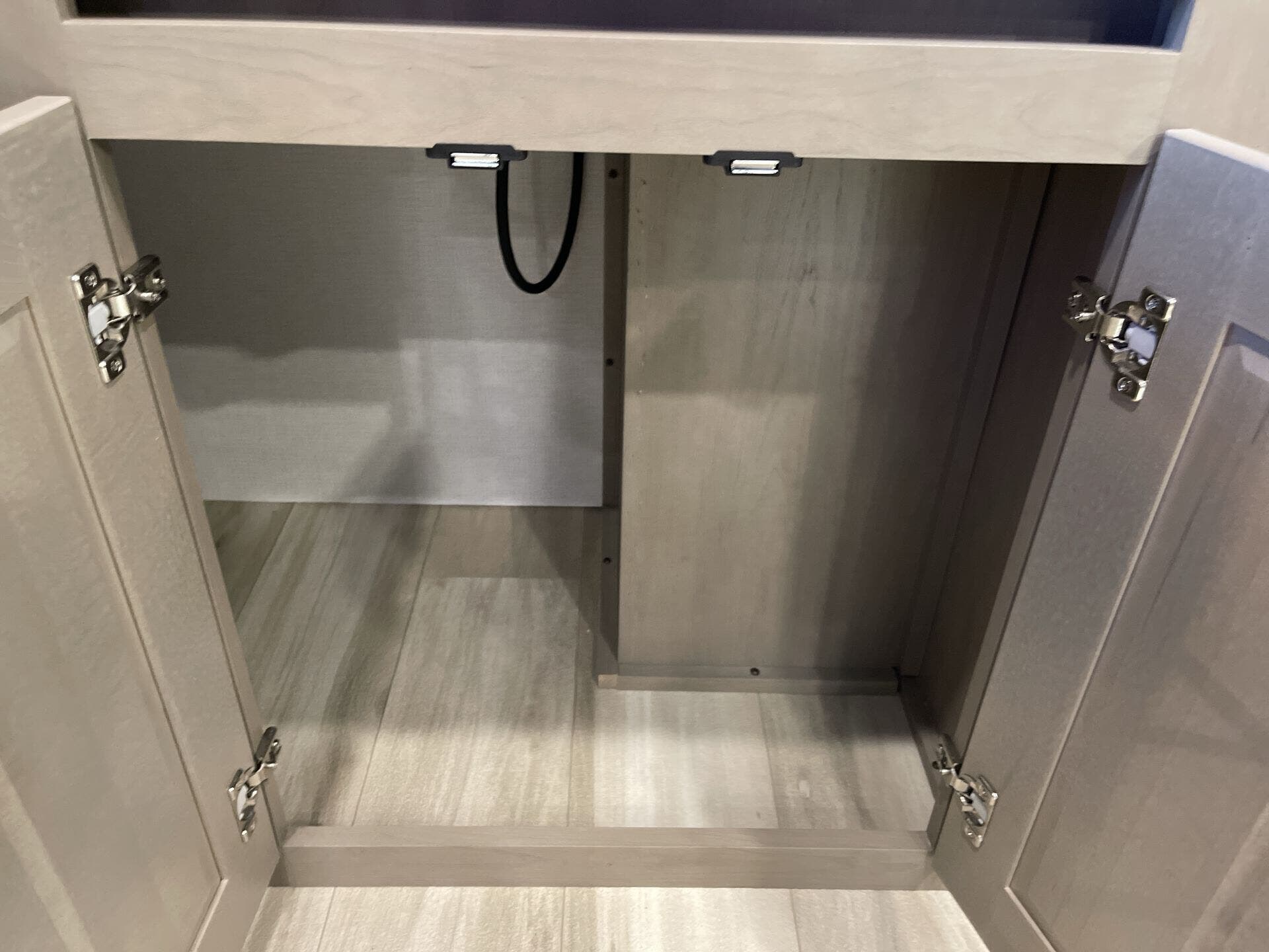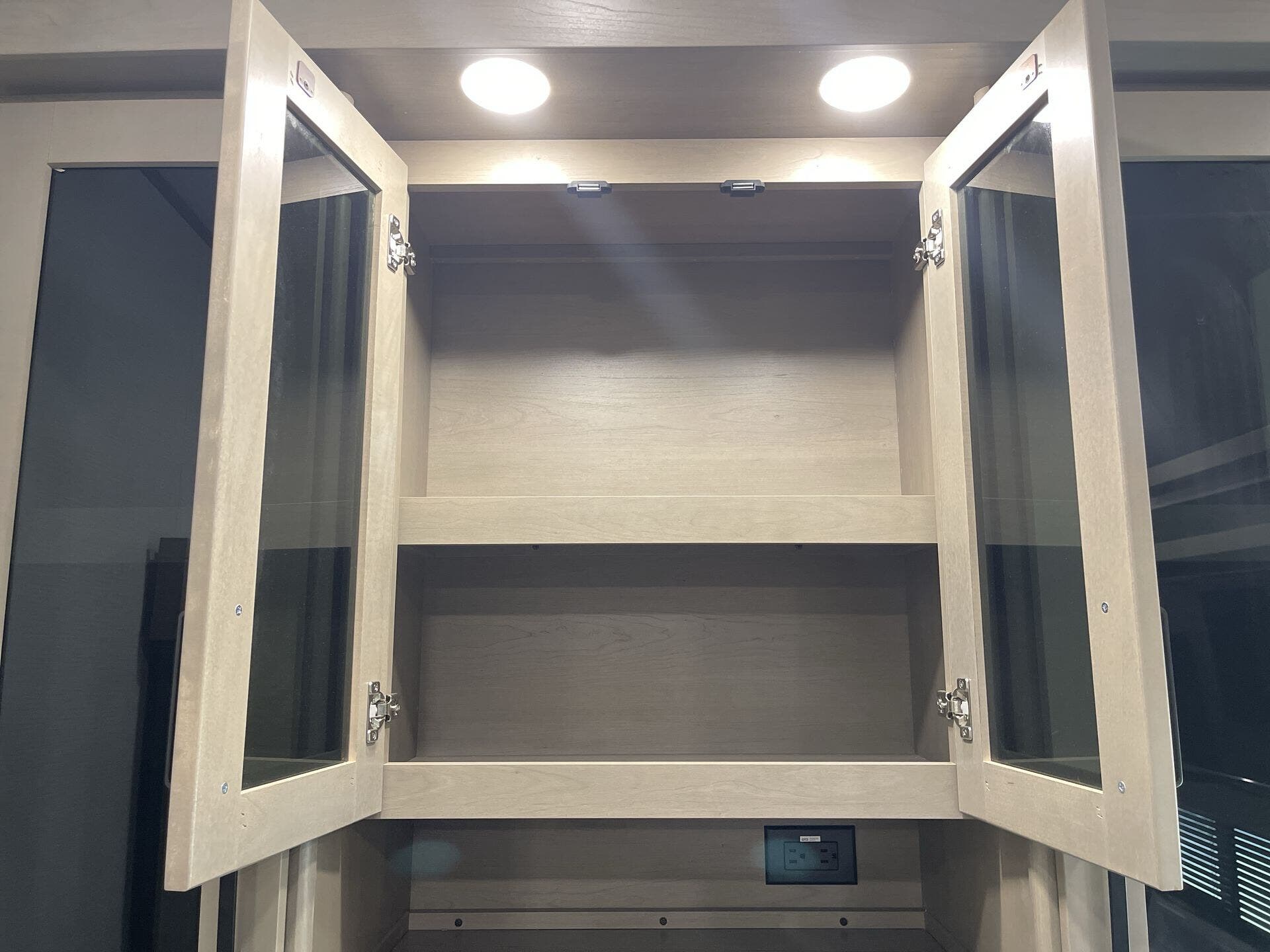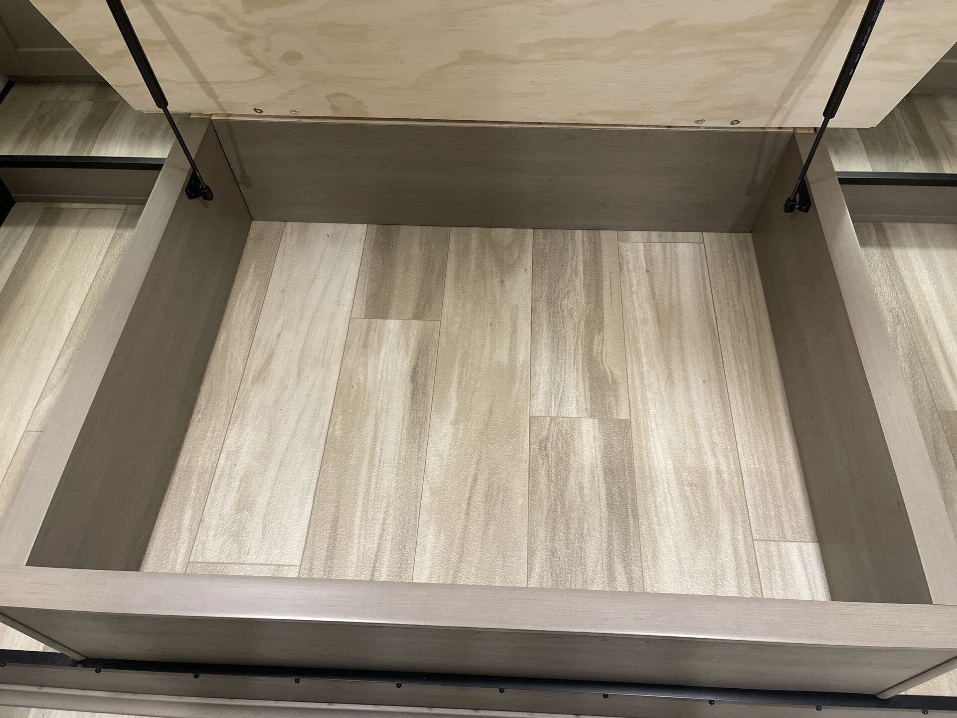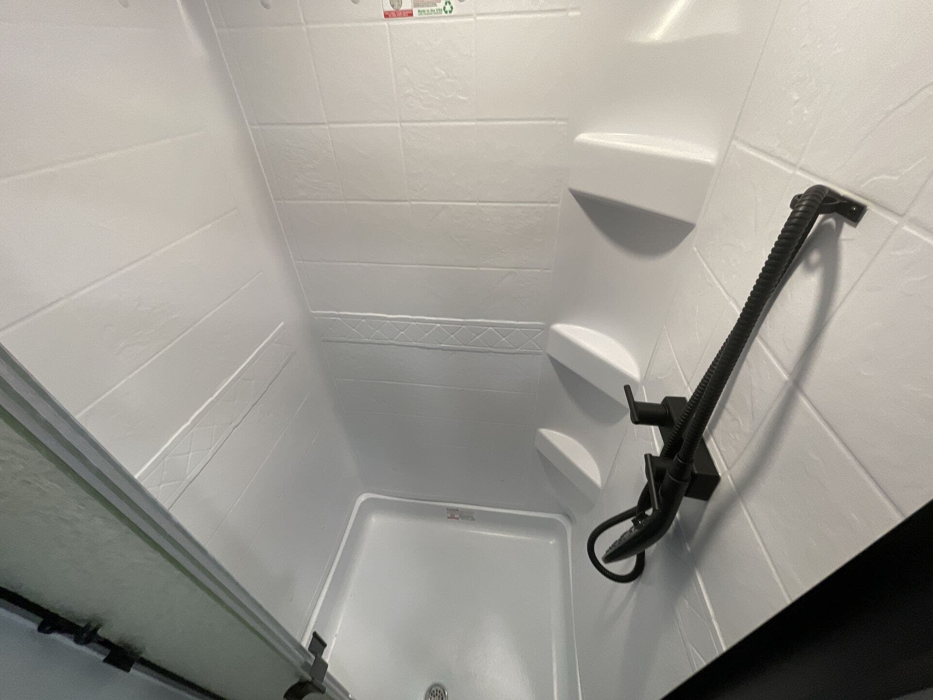 - Interior Amenities: Bunk beds, shower, toilet, U-shaped dinette, medicine cabinet, overhead cabinetry