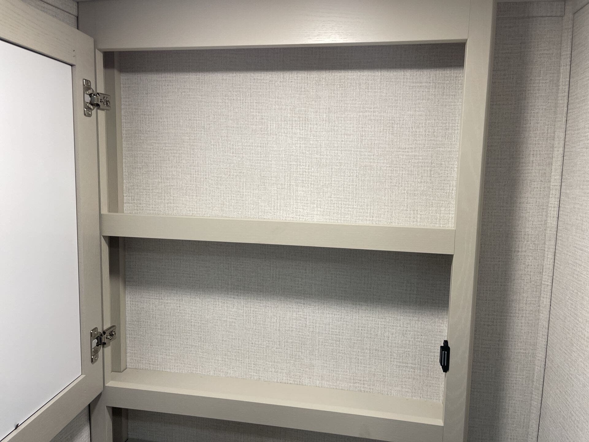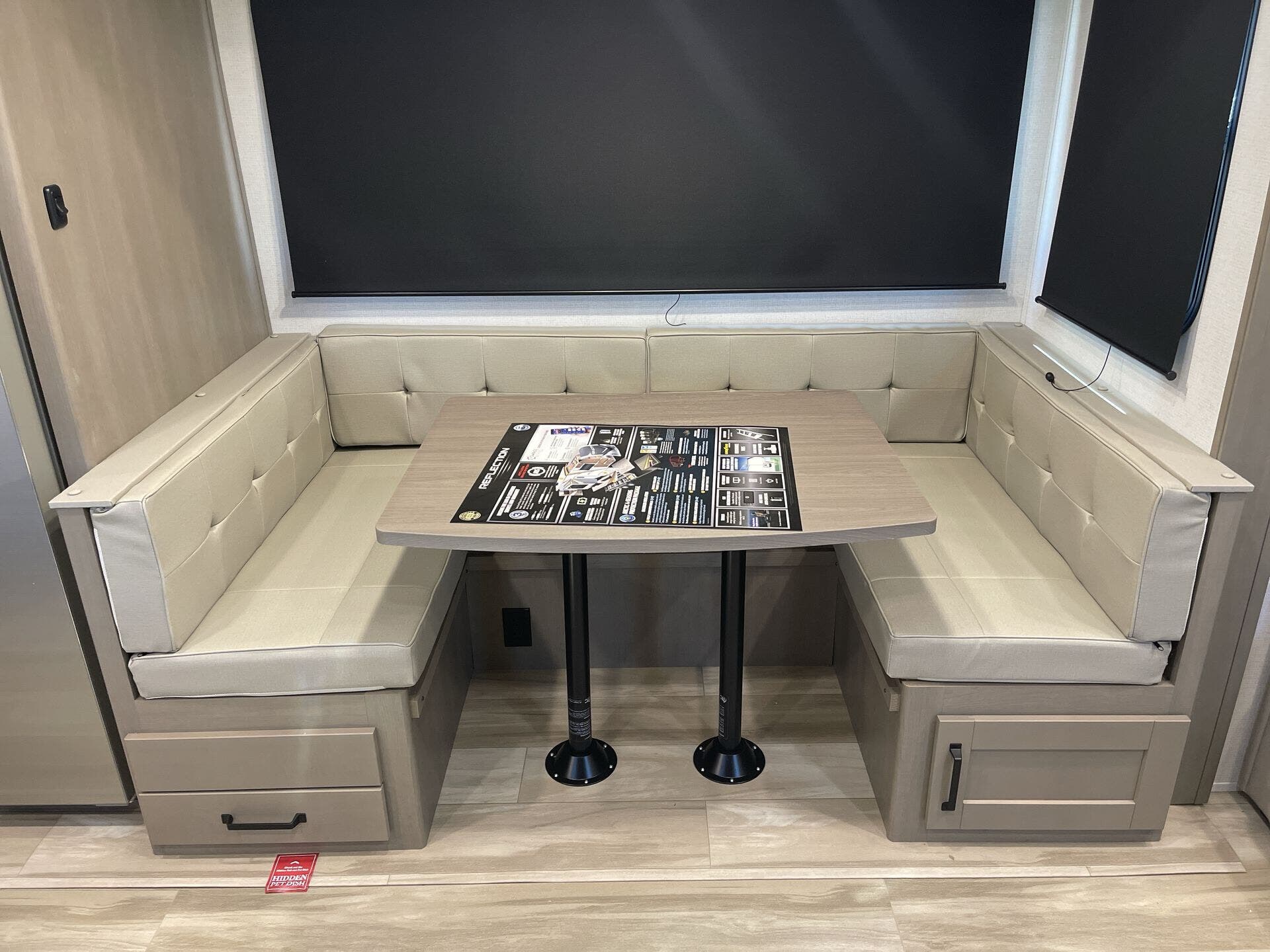 Bunk Beds, Medicine Cabinet, Overhead Cabinetry, Shower, Toilet, U-Shaped Dinette