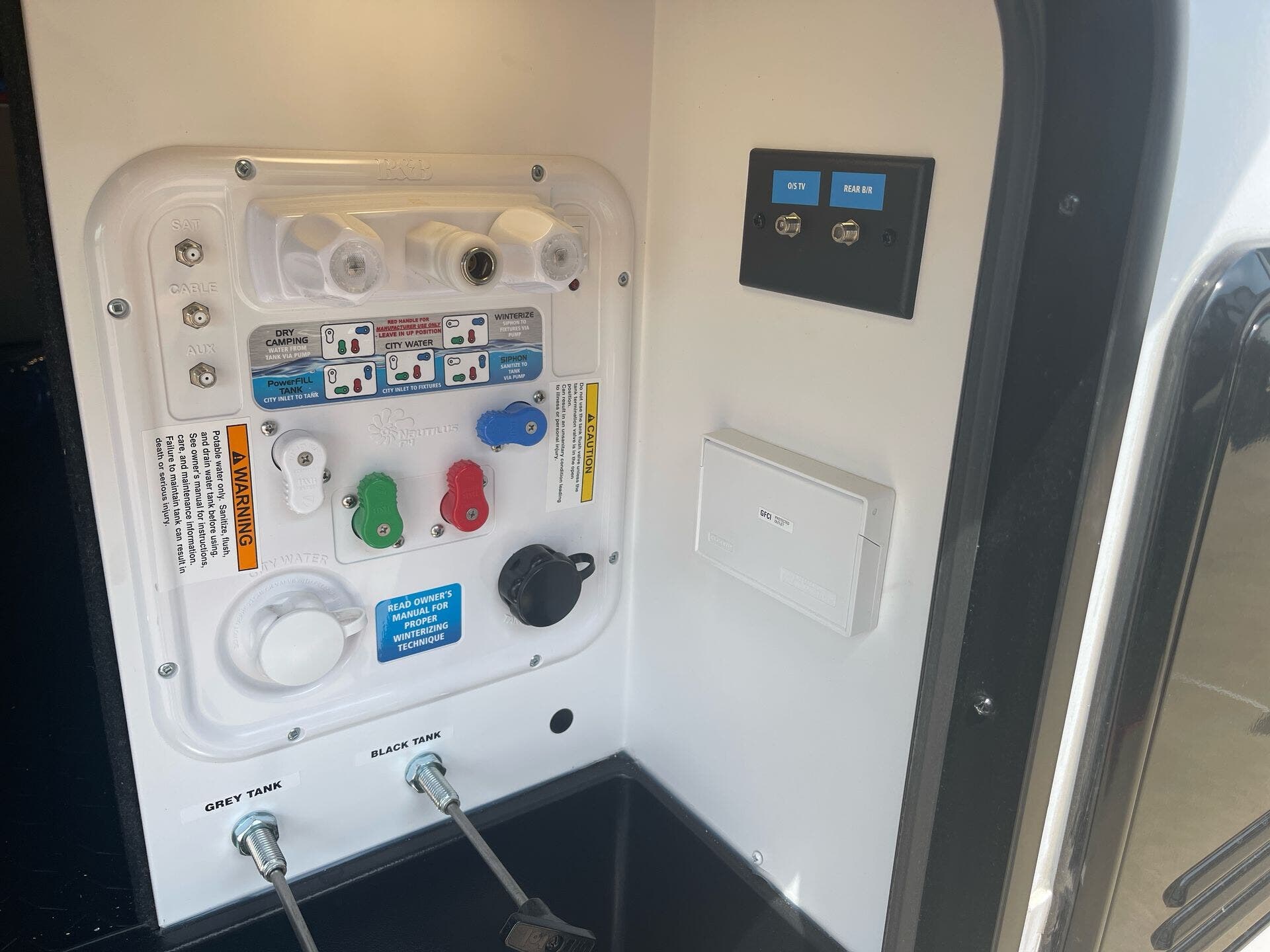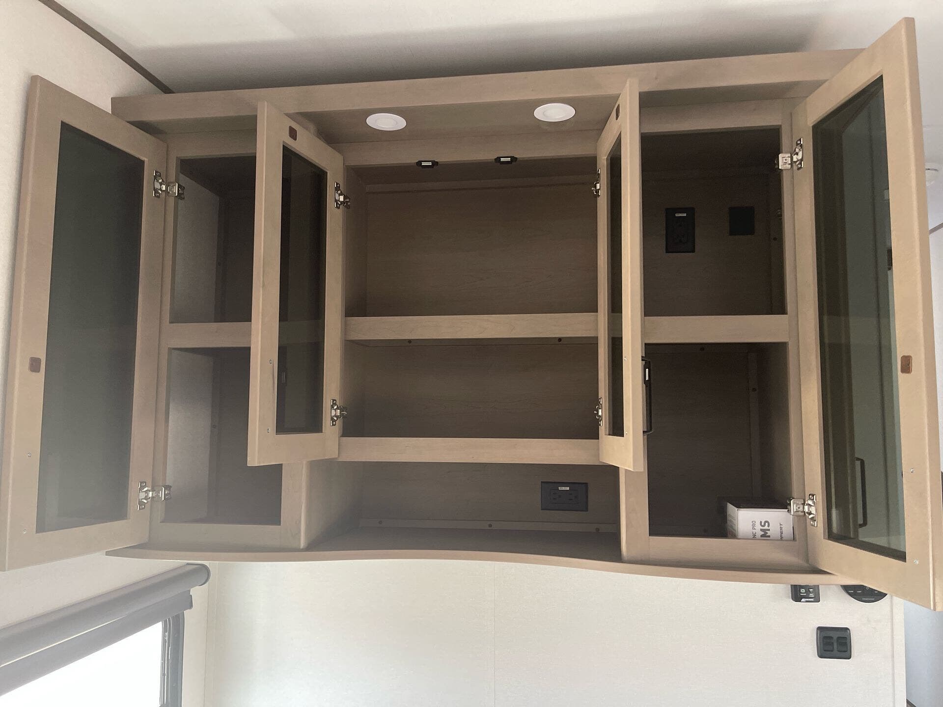 Awning, Exterior Grill, Exterior Speakers, External Shower, Hitch, Ladder, Leveling Jacks, Outside Kitchen, Power Roof Vent, Skylight, Slideout, Spare Tire Kit -