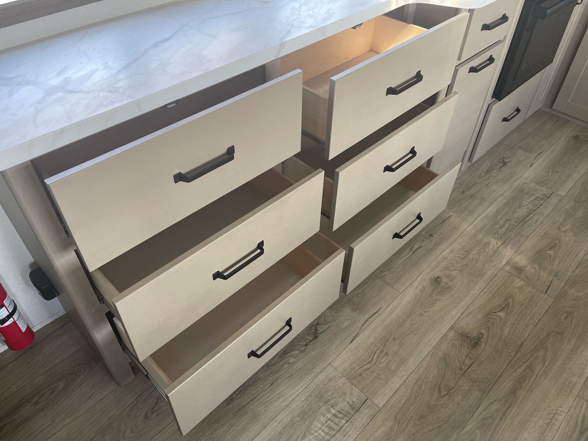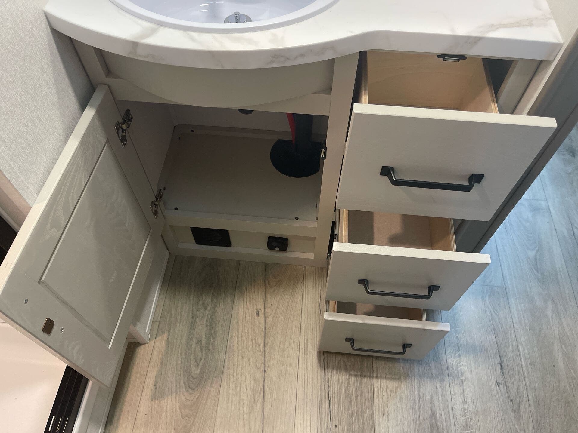 Built for durability across seasons, it’s constructed with aluminum cage framing, high R-value insulation (R-40 roof, R-9 walls, R-30 floor), tankless water heater, and a 21-ft one-touch LED awning. Families benefit from thoughtful touches like a 40″ LED HDTV, motion-sensor lighting, premium flooring, and easy setup via the Ultimate Power package.