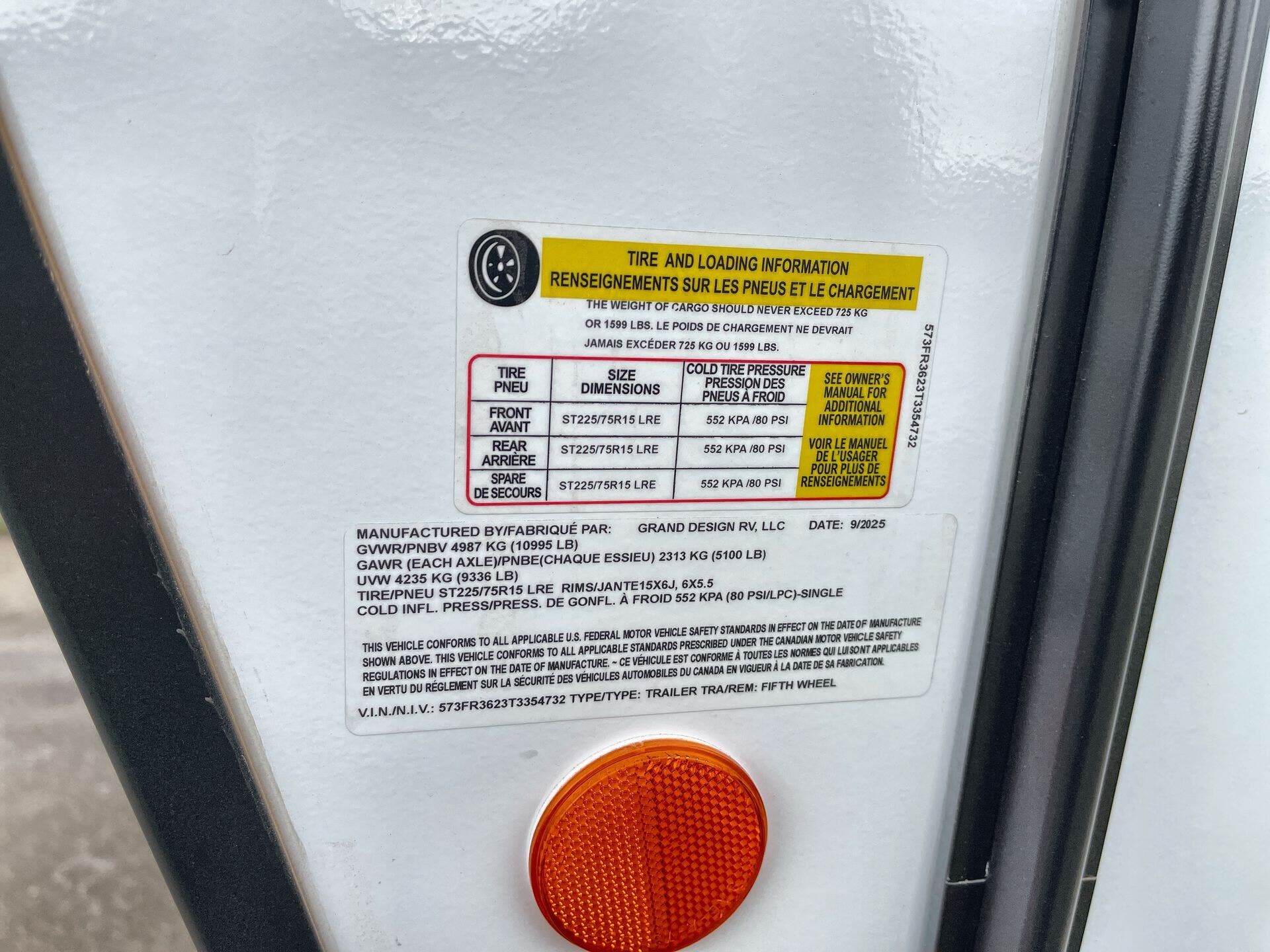 Discover the ideal family-friendly travel trailer that blends modern comfort with rugged RV reliability. This new 2026 Grand Design Reflection fifth wheel offers a bunkhouse layout designed for memorable road trips, weekend getaways, and long-term adventures in a high-quality recreational vehicle. At 34 feet 9 inches in length, 8 feet 0 inches wide, and 12 feet 3 inches tall, this bunkhouse model delivers spacious living without sacrificing towability. With a sturdy GVWR of 10,995 pounds and a hitch weight of 1,450 pounds, it pairs perfectly with a compatible tow vehicle for confident travel to your favorite destinations.