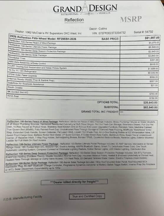 Request More Info on this 2026 Grand Design Reflection 150 298BH Offered for sale by McClain's RV Oklahoma City