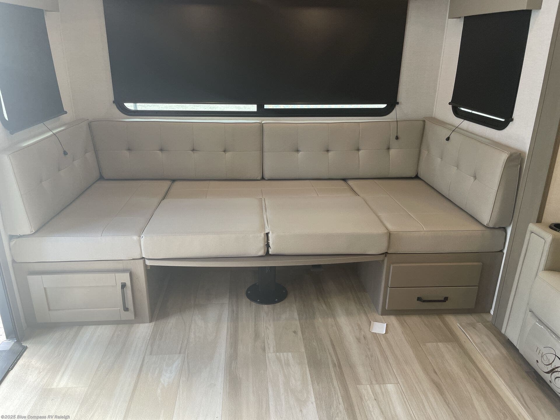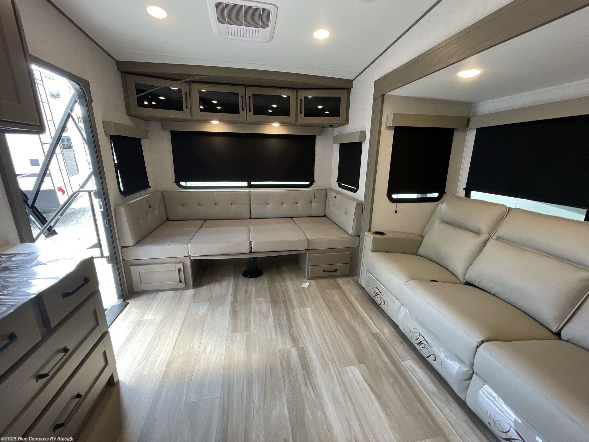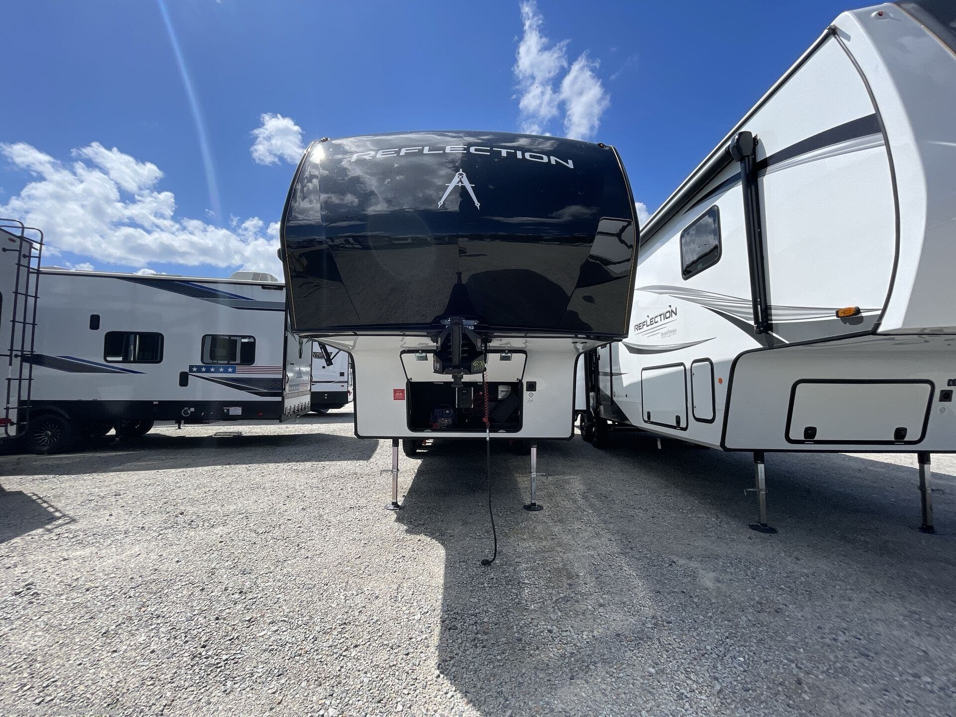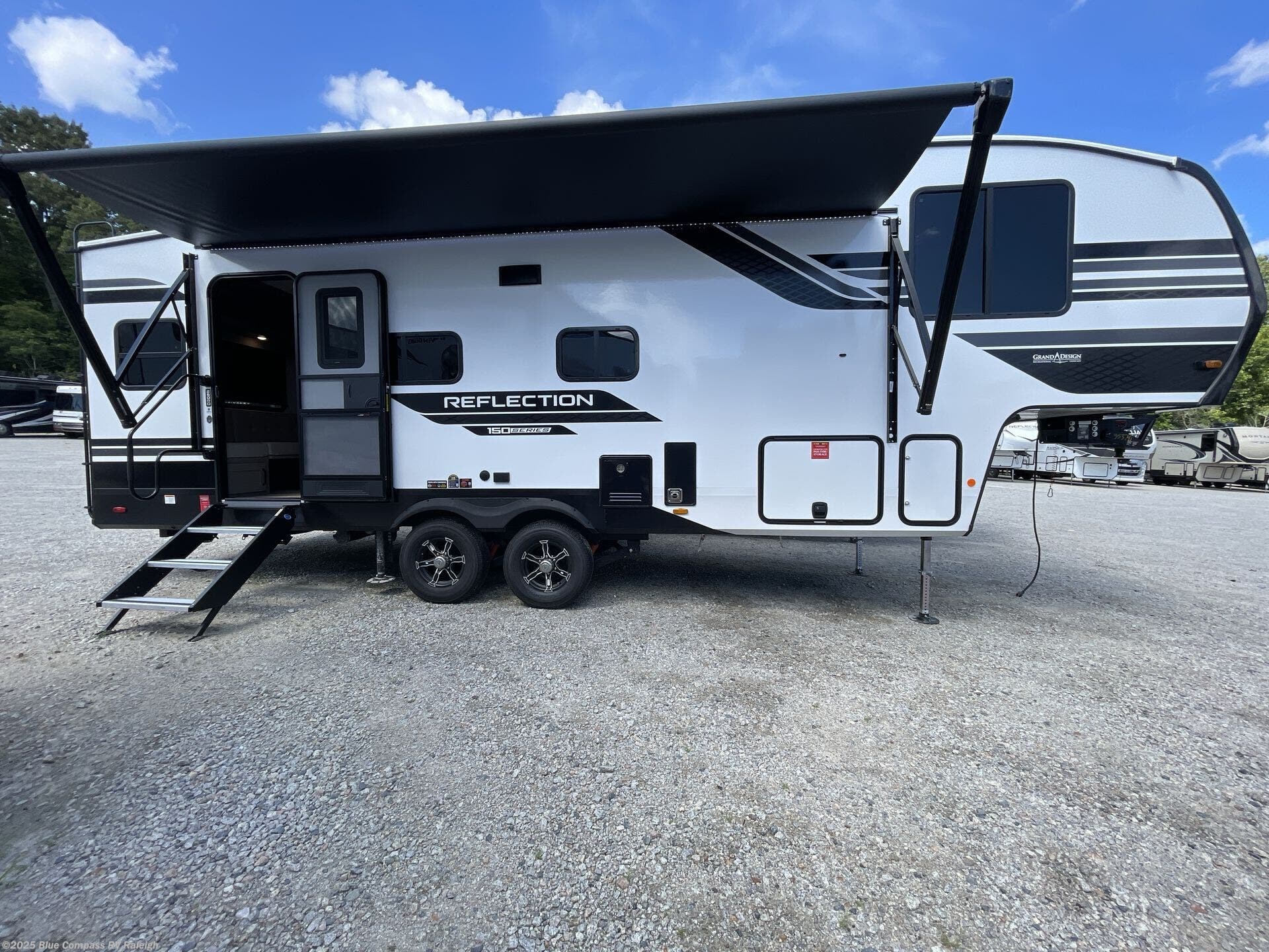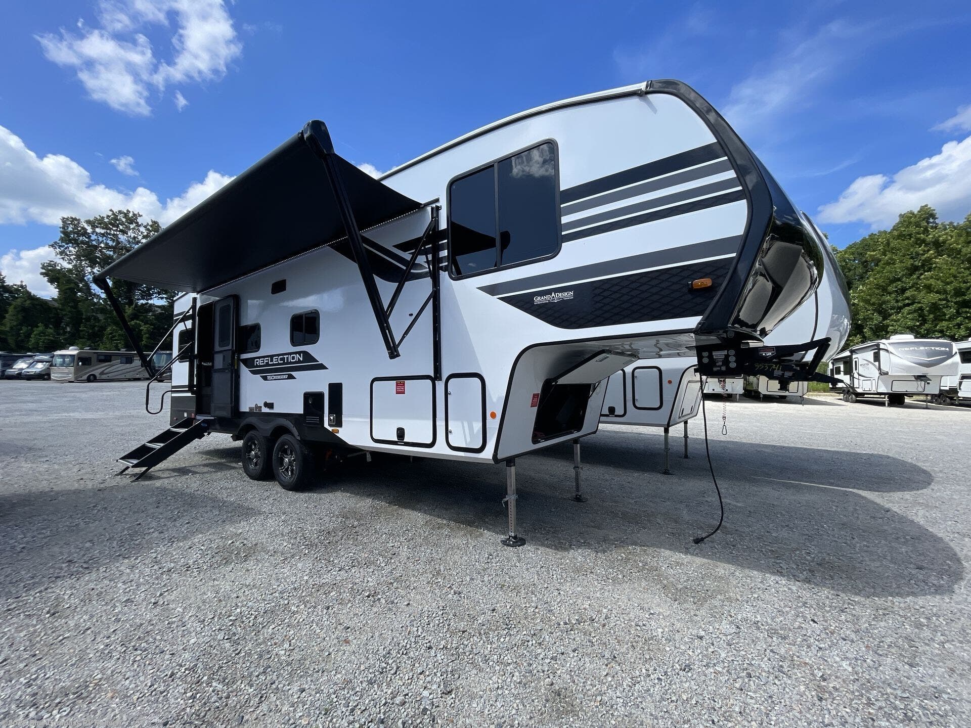With any Reflection 150 Series fifth wheel by Grand Design, there is more available payload capacity and a broader range of half-ton trucks capable of towing this fifth wheel, and no slider hitch is needed thanks to the 90-degree turning radius which makes them short bed friendly and easier to tow. The mandatory Ultimate Power package provides a "One-Touch" automatic leveling system and a detachable power cord with LED light for easy setup, plus motion sensor pass-through lighting and entry lighting, and the Tire Linc TPMS will help you stay safe on the road. The interior offers residential luxury from the cabinetry and premium Congoleum flooring, to the booth dinette and residential-style window treatment. Make your refined decision today!