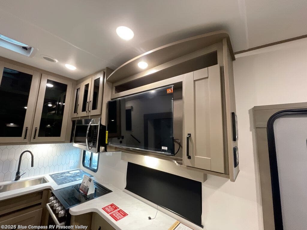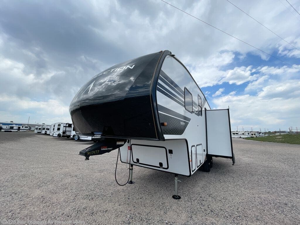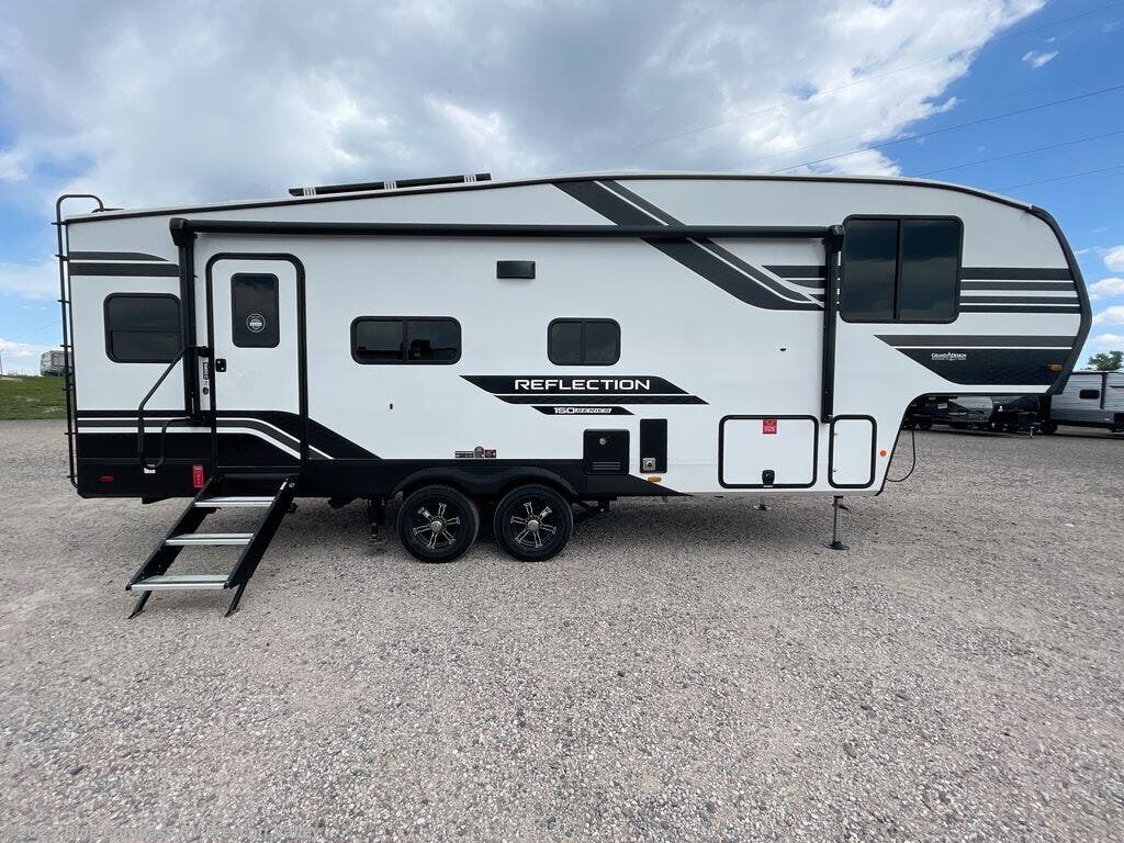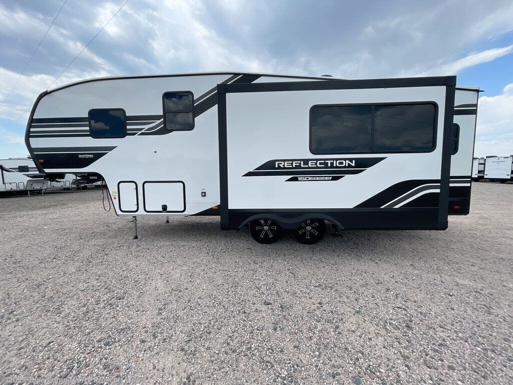 With any Reflection 150 Series fifth wheel by Grand Design, there is more available payload capacity and a broader range of half-ton trucks capable of towing this fifth wheel, and no slider hitch is needed thanks to the 90-degree turning radius which makes them short bed friendly and easier to tow. The mandatory Ultimate Power package provides a "One-Touch" automatic leveling system and a detachable power cord with LED light for easy setup, plus motion sensor pass-through lighting and entry lighting, and the Tire Linc TPMS will help you stay safe on the road. The interior offers residential luxury from the cabinetry and premium Congoleum flooring, to the booth dinette and residential-style window treatment. Make your refined decision today!