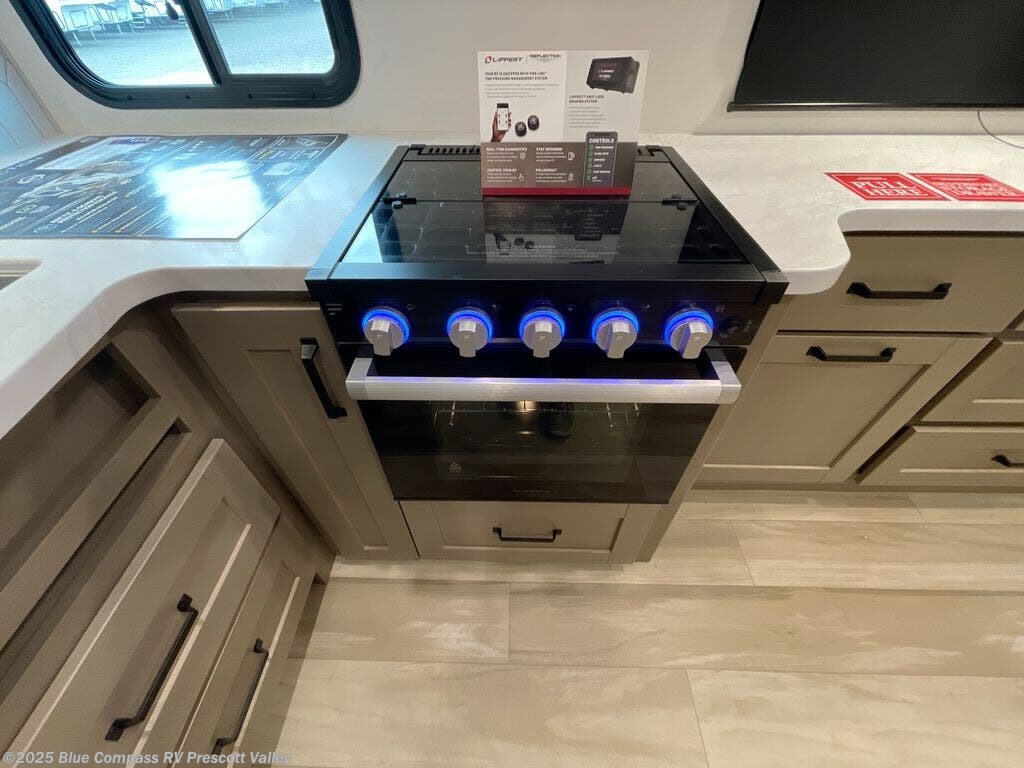 Feel right at home in this Reflection 150 Series with a private bedroom that includes a walk-around queen bed with storage on each side, windows, and a space savings sliding door. The full bathroom offers a walk-in shower, storage for your linens and a sliding door for easy access. When you get hungry, the cook will have an L-shaped kitchen area to make meals, plus full amenities including a 30" microwave, a flip-up counter extension, a pantry for your dry goods and a 16 cu. ft. refrigerator to store lots of food and cold beverages. You can dine at the rear U-shaped dinette lounge and enjoy the view out of all the windows or outside under the 18' electric awning. And the 78" theatre seating will be a nice place to relax and watch the 40" LED HDTV.