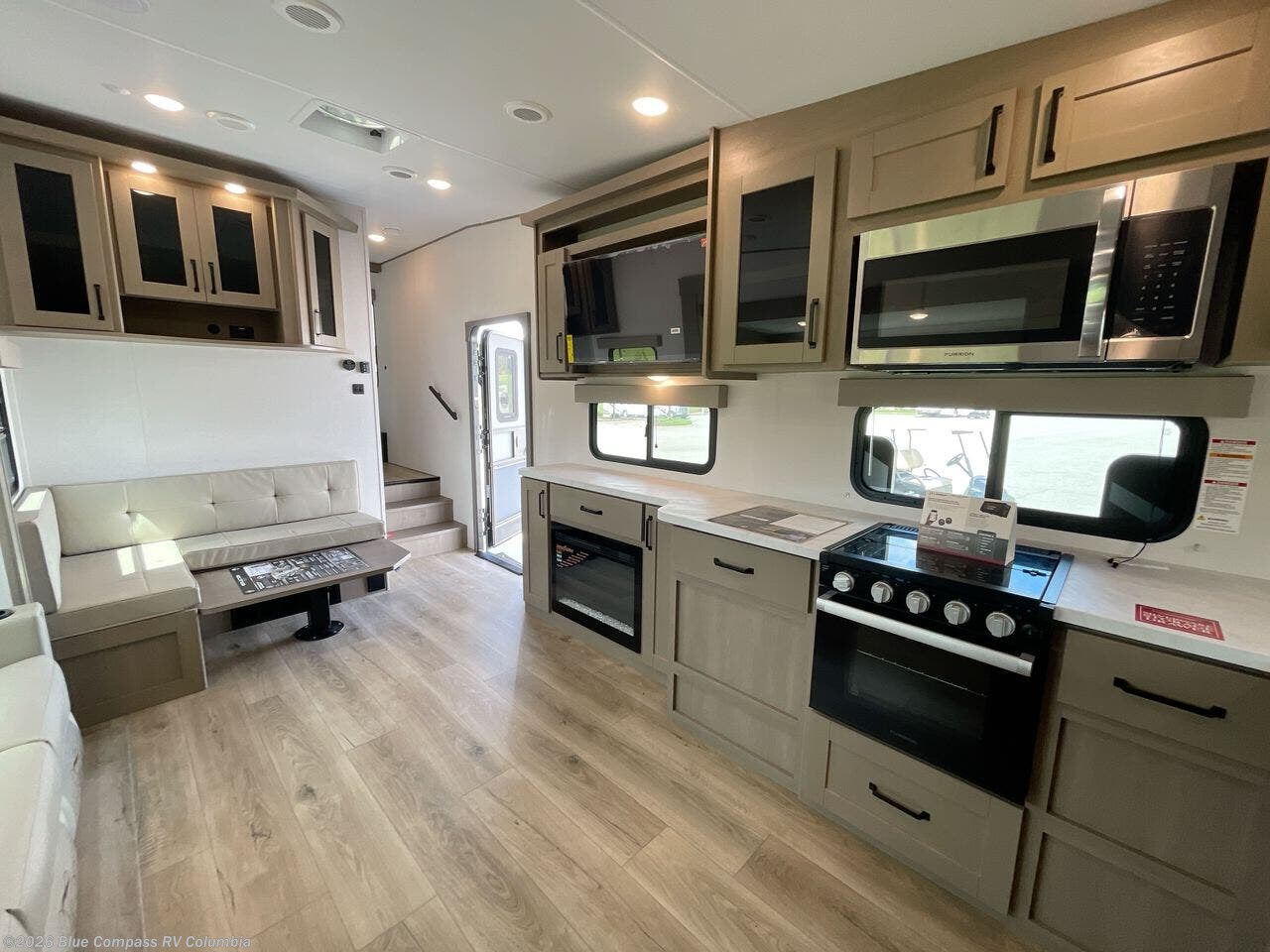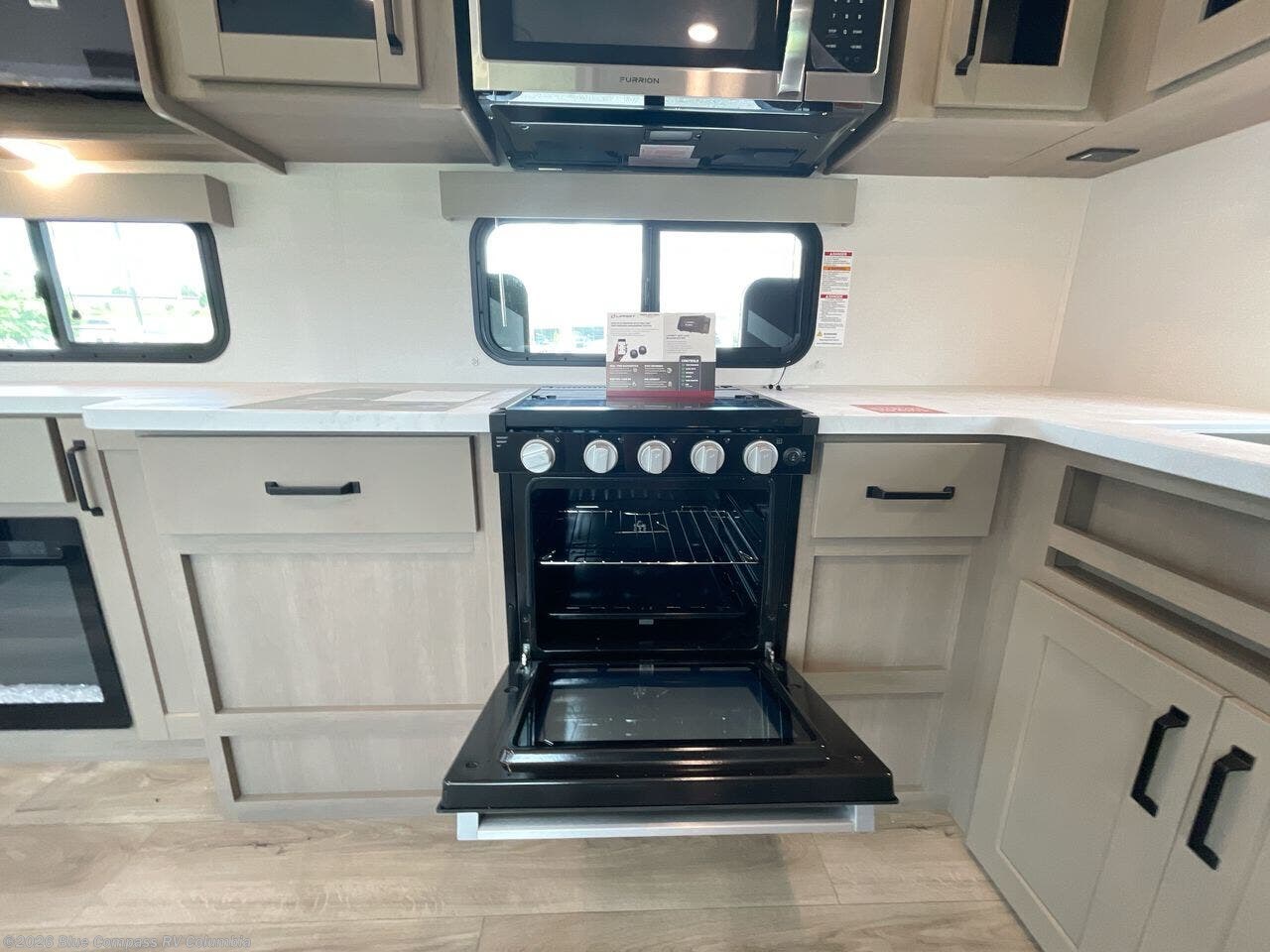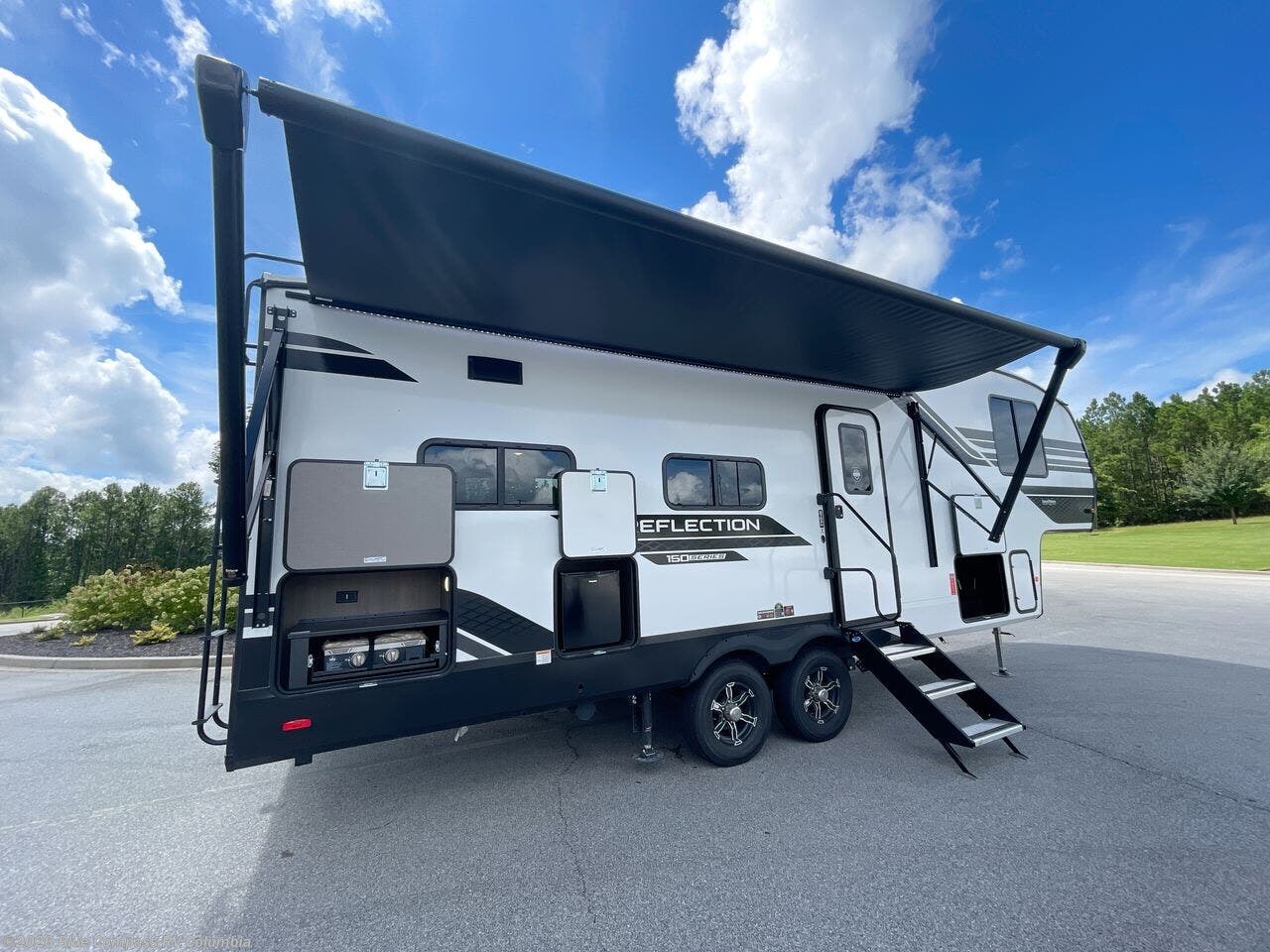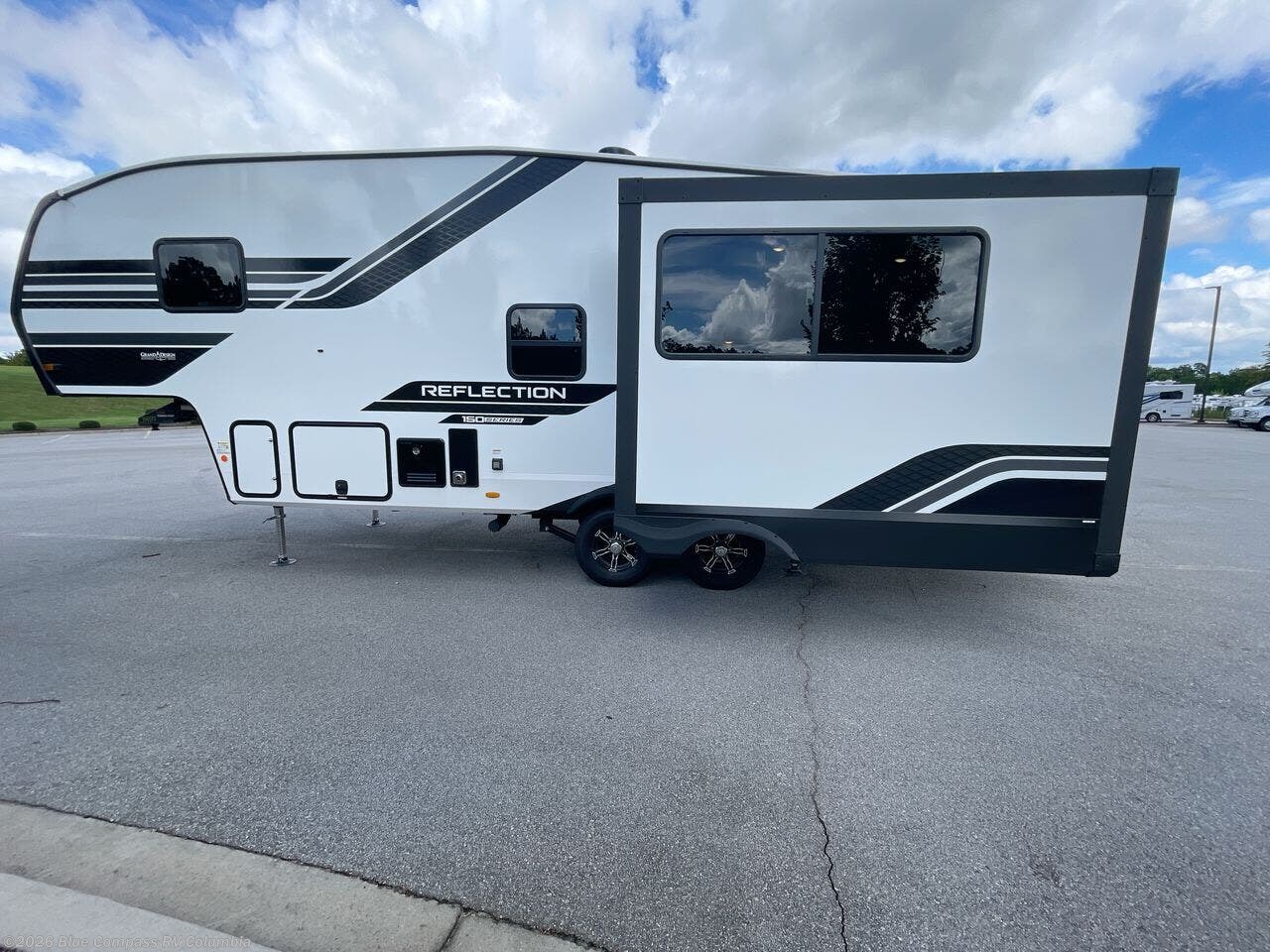 With any Reflection 150 Series fifth wheel by Grand Design, there is more available payload capacity and a broader range of half-ton trucks capable of towing this fifth wheel, and no slider hitch is needed thanks to the 90-degree turning radius which makes them short bed friendly and easier to tow. The mandatory Ultimate Power package provides a "One-Touch" automatic leveling system and a detachable power cord with LED light for easy setup, plus motion sensor pass-through lighting and entry lighting, and the Tire Linc TPMS will help you stay safe on the road. The interior offers residential luxury from the cabinetry and premium Congoleum flooring, to the booth dinette and residential-style window treatment. Make your refined decision today!