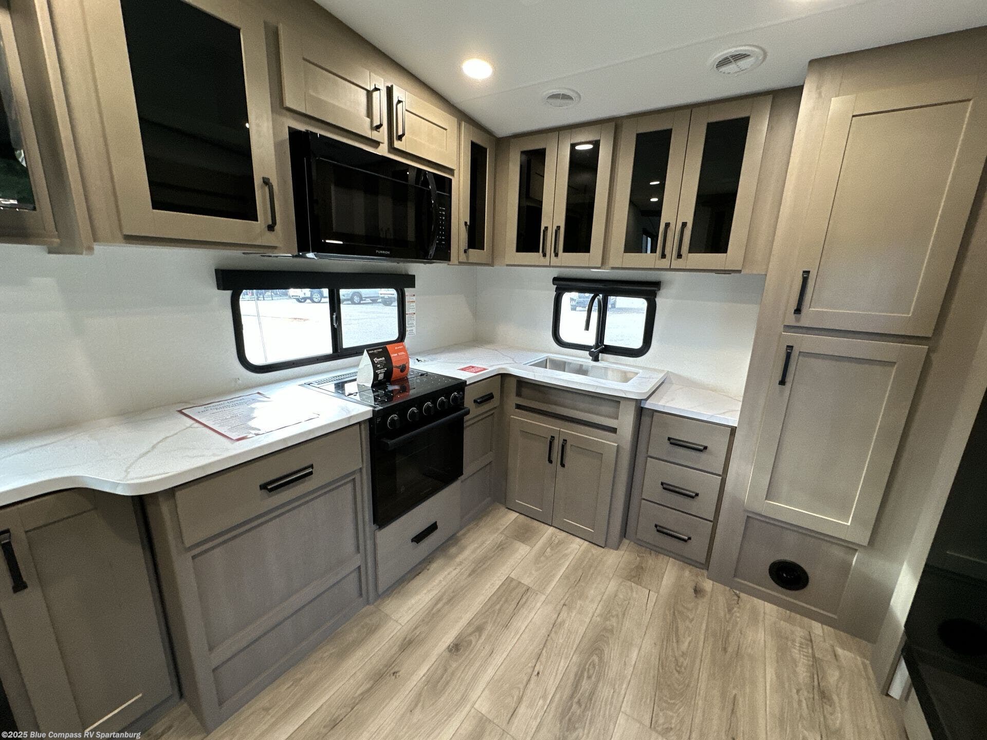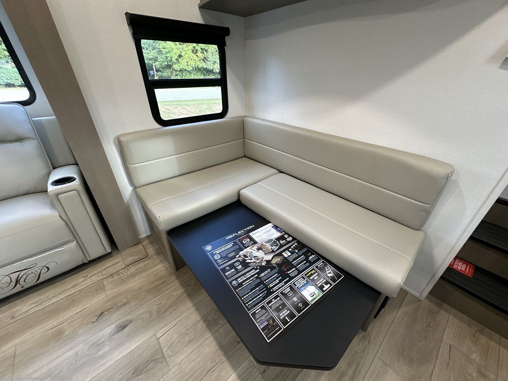 With any Reflection 150 Series fifth wheel by Grand Design, there is more available payload capacity and a broader range of half-ton trucks capable of towing this fifth wheel, and no slider hitch is needed thanks to the 90-degree turning radius which makes them short bed friendly and easier to tow. The mandatory Ultimate Power package provides a "One-Touch" automatic leveling system and a detachable power cord with LED light for easy setup, plus motion sensor pass-through lighting and entry lighting, and the Tire Linc TPMS will help you stay safe on the road. The interior offers residential luxury from the cabinetry and premium Congoleum flooring, to the booth dinette and residential-style window treatment. Make your refined decision today!