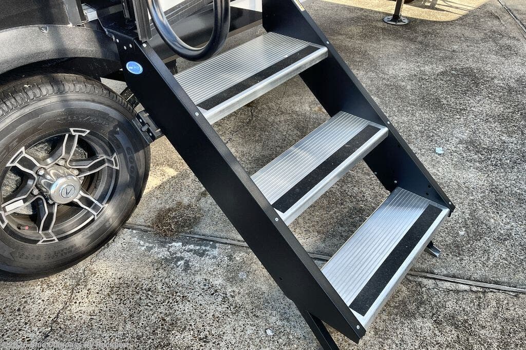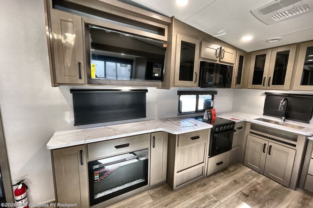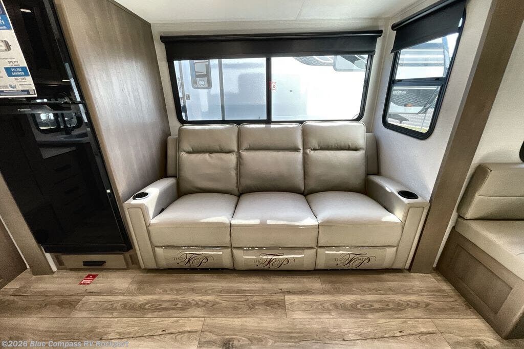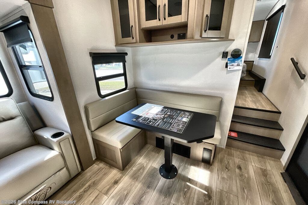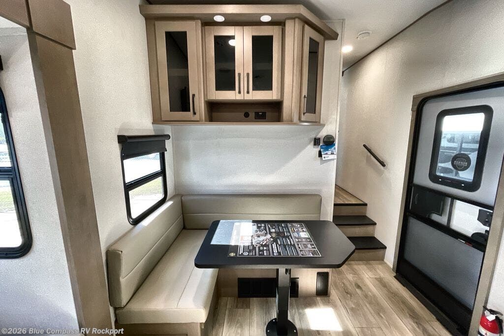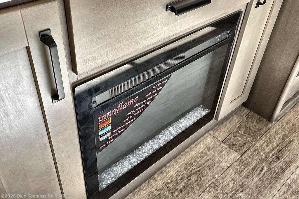 You will love this fifth wheel featuring a single slide for added interior living space and all the comforts and conveniences it provides you while you travel. The slide features a 78" theater seat plus there is a breakfast nook for more seating. Both can easily view the entertainment center with 40" TV. A rear kitchen indoors provides everything you need to create meals like home while on the road, and if you want to spend as much time outside as possible, then the outdoor griddle will certainly accommodate you for meals. Up front, a cozy private bedroom with queen bed, wardrobe, and overhead cabinets. Right next door, you will find a large walk-in shower, as well as a toilet, and a vanity with sink and linen cabinet for your towels and toiletries. You will also love the full unobstructed pass-through compartment for all of your gear, plus so much more!