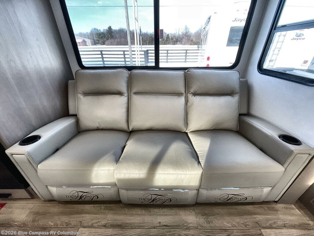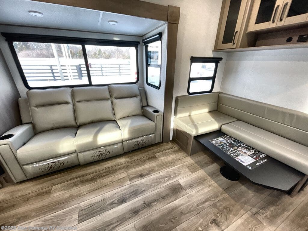 With any Reflection 150 Series fifth wheel by Grand Design, there is more available payload capacity and a broader range of half-ton trucks capable of towing this fifth wheel, and no slider hitch is needed thanks to the 90-degree turning radius which makes them short bed friendly and easier to tow. The mandatory Ultimate Power package provides a "One-Touch" automatic leveling system and a detachable power cord with LED light for easy setup, plus motion sensor pass-through lighting and entry lighting, and the Tire Linc TPMS will help you stay safe on the road. The interior offers residential cabinetry and premium Congoleum flooring, to the booth dinette and residential-style window treatment. Make your refined decision today!