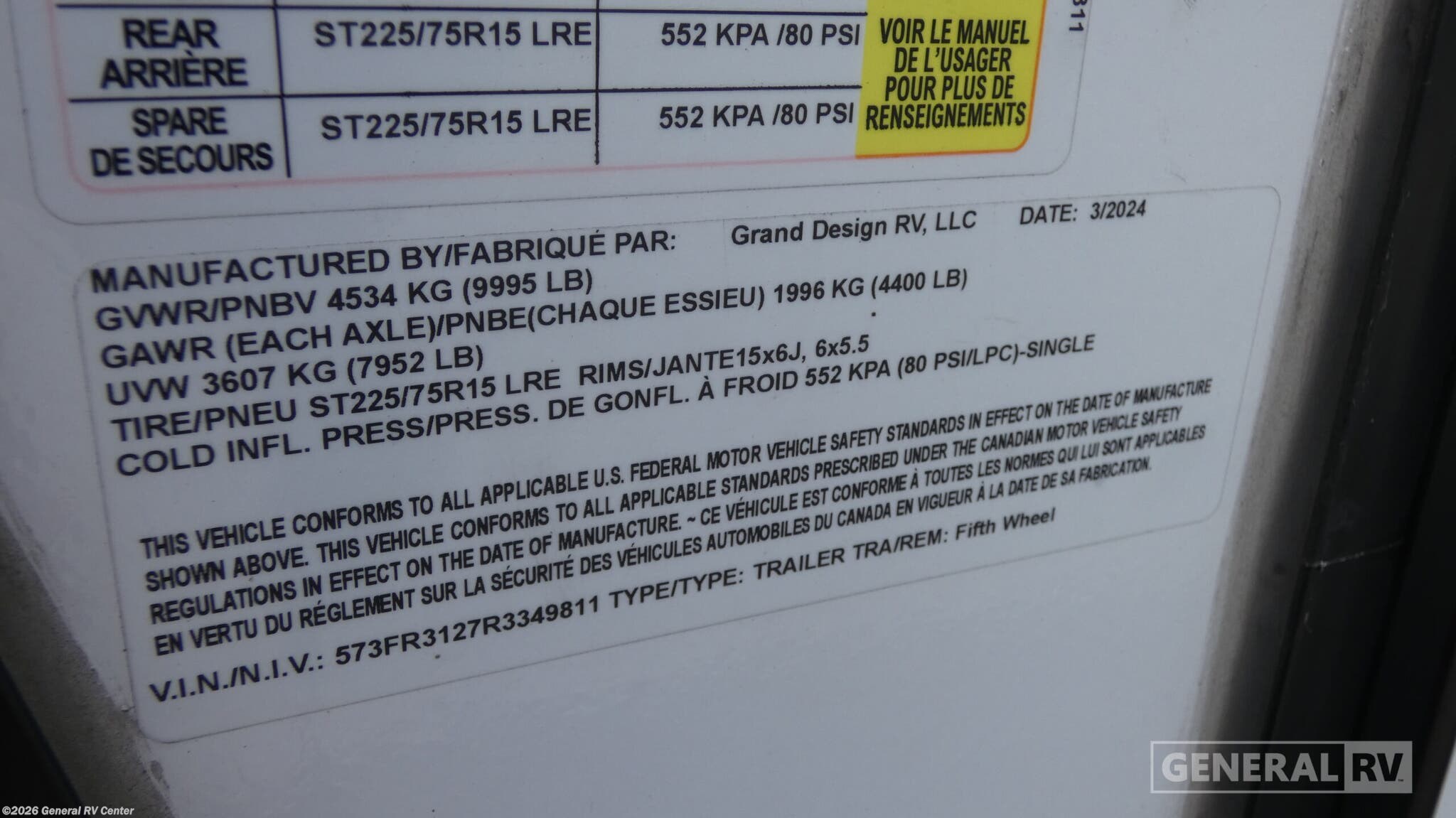- VIN573FR3127R3349811