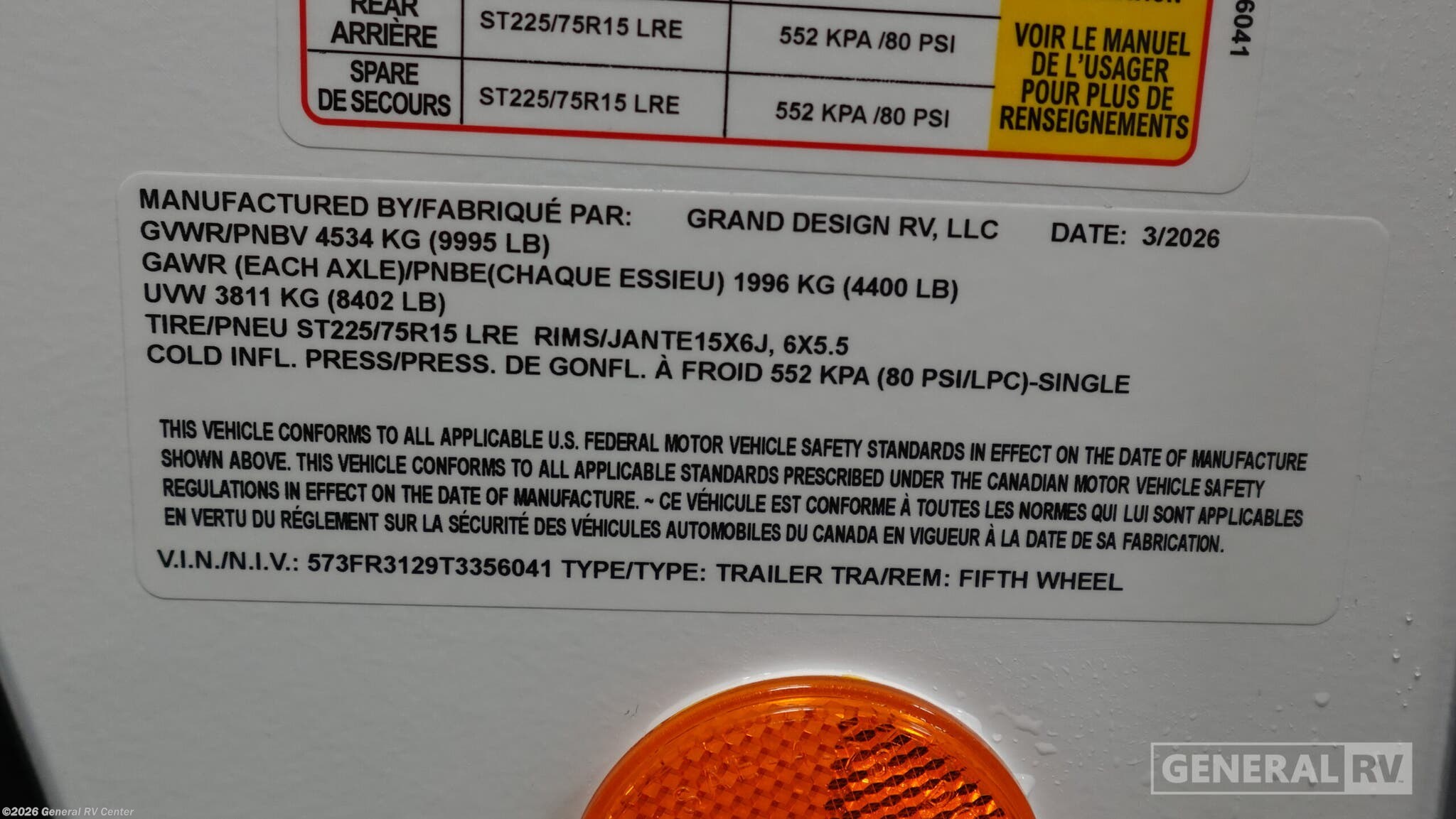 2026 Grand Design Reflection 150 Series 270BN Specifications