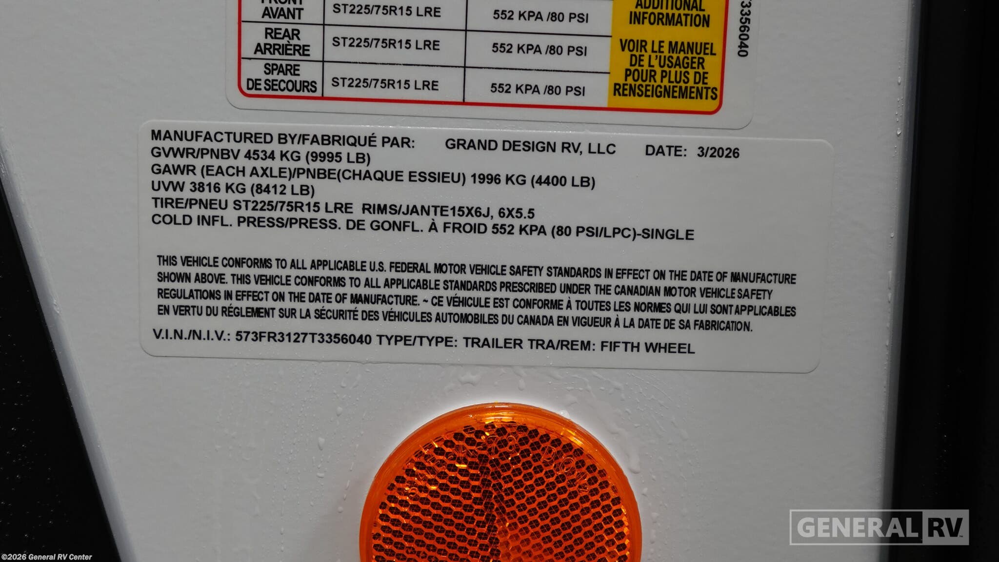 2026 Grand Design Reflection 150 Series 270BN Specifications