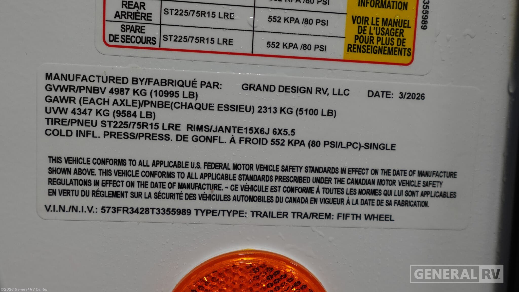2026 Grand Design Reflection 150 Series 295RL Specifications