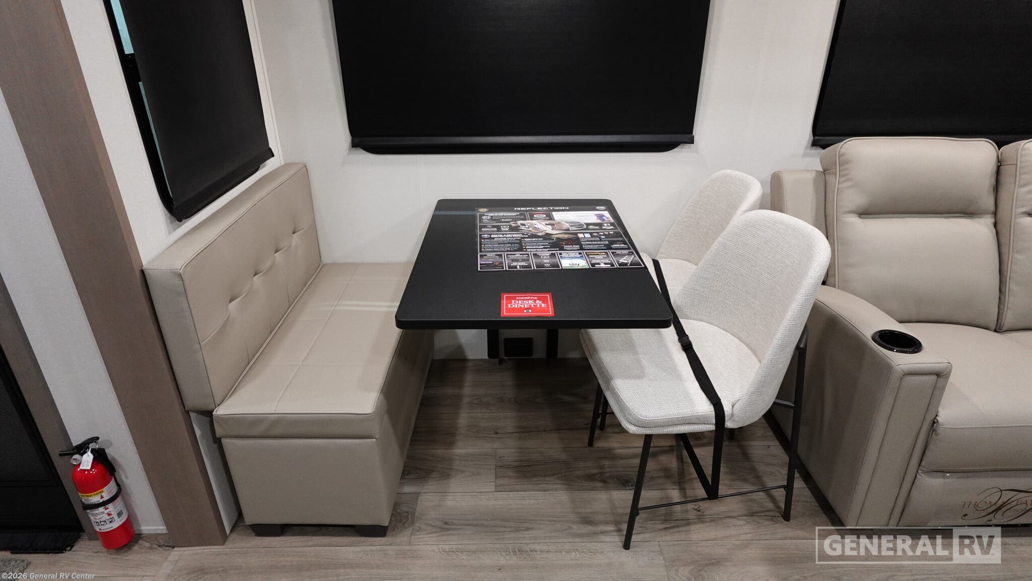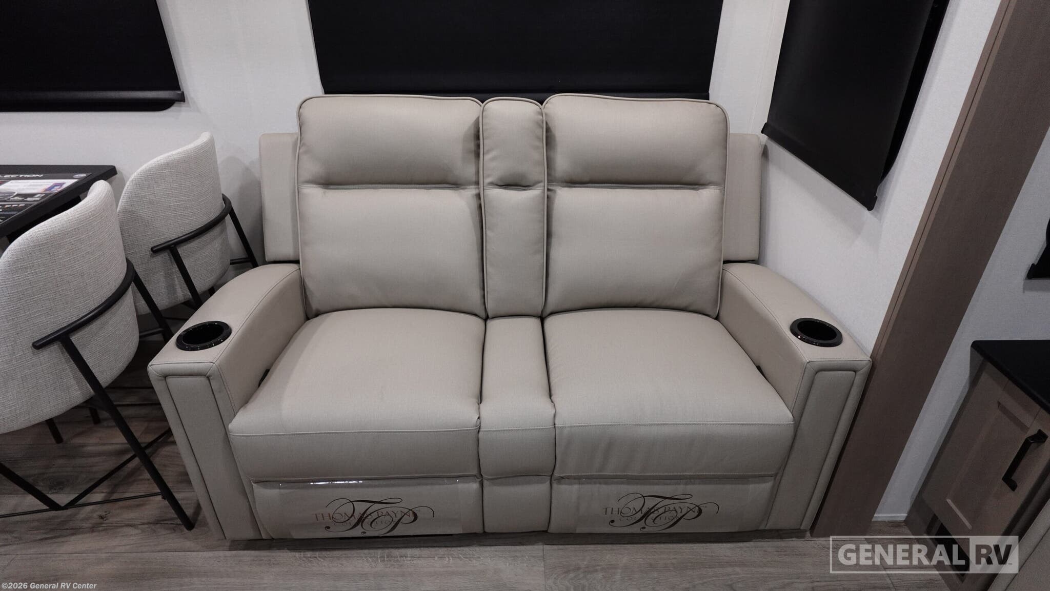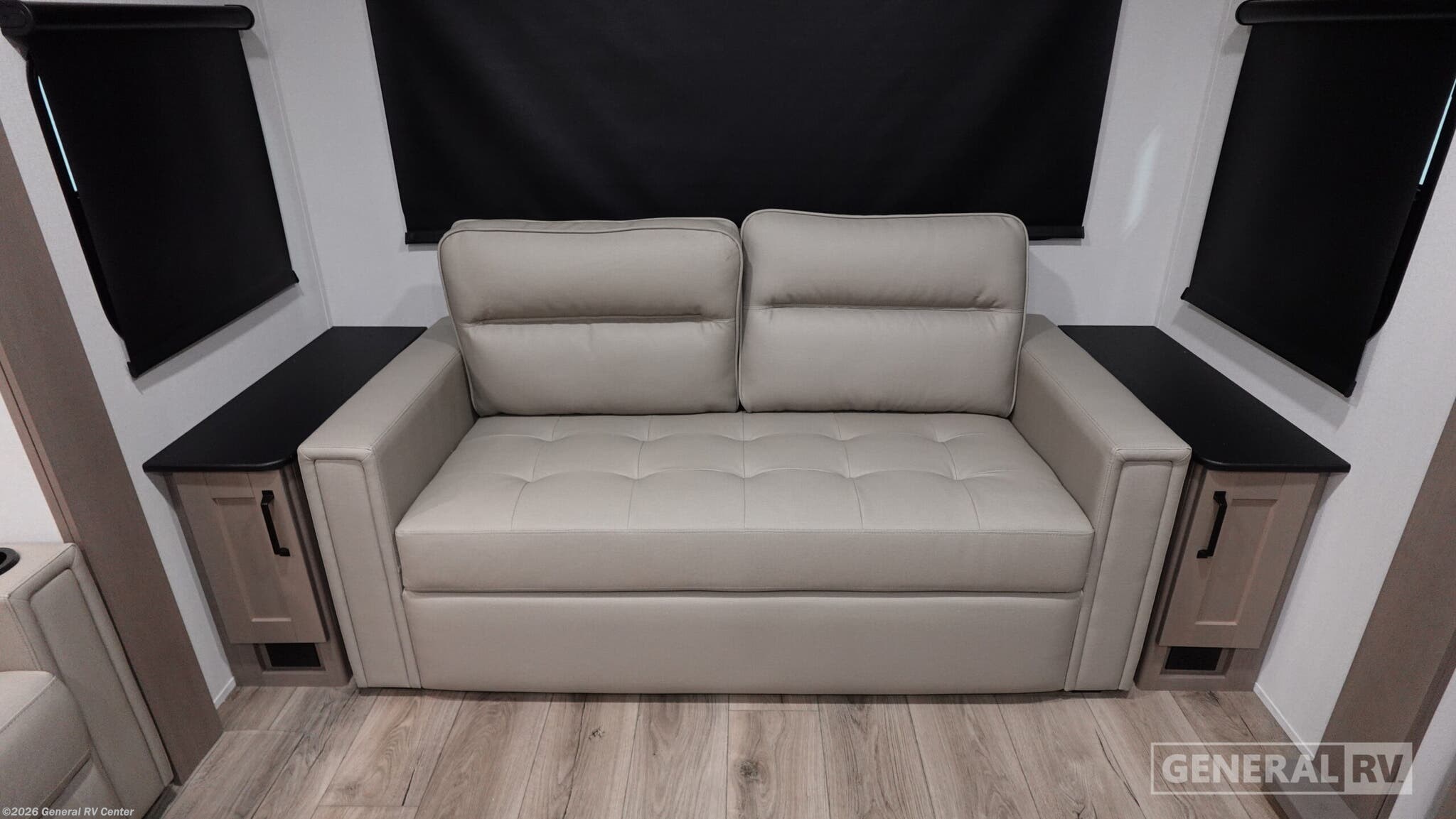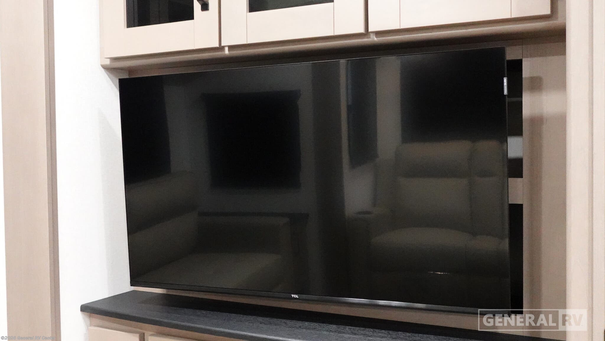 Experience the perfect blend of luxury and comfort with the 2026 Grand Design Reflection 150 Series 295RL. This fifth wheel redefines travel with its spacious design and thoughtful amenities. Measuring just under 33 feet, this RV offers a beautifully designed rear living area where you can unwind on the tri-fold sofa or enjoy the theater seating while watching your favorite shows. The center kitchen is a culinary delight, featuring a full-size electric refrigerator, a three-burner cooktop, and a convenient pantry, making meal preparation a breeze. The front bedroom is your private sanctuary, boasting a cozy queen bed and ample storage space. The center bath is thoughtfully designed with a stylish plastic and glass shower. With two powered retractable awnings, you can extend your living space outdoors and enjoy the fresh air. The Reflection 150 Series is not only about comfort but also practicality, with generous fresh, gray, and black water capacities, ensuring your adventures are uninterrupted. Discover the ultimate travel companion at your nearest General RV dealership.