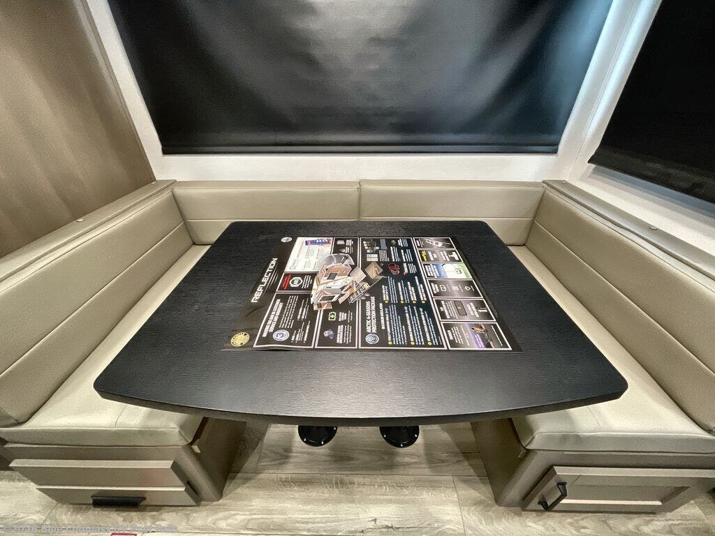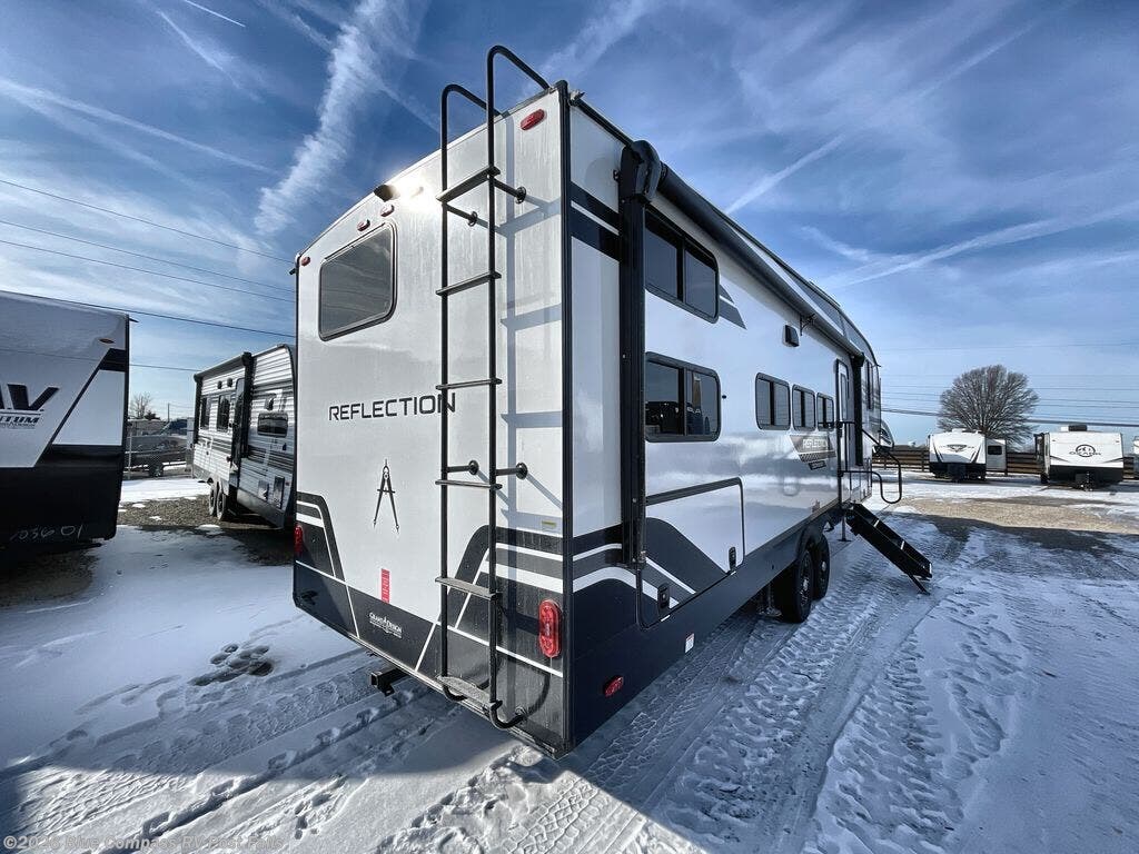 With any Reflection 150 Series fifth wheel by Grand Design, there is more available payload capacity and a broader range of half-ton trucks capable of towing this fifth wheel, and no slider hitch is needed thanks to the 90-degree turning radius which makes them short bed friendly and easier to tow. The mandatory Ultimate Power package provides a "One-Touch" automatic leveling system and a detachable power cord with LED light for easy setup, plus motion sensor pass-through lighting and entry lighting, and the Tire Linc TPMS will help you stay safe on the road. The interior offers residential cabinetry and premium Congoleum flooring, to the booth dinette and residential-style window treatment. Make your refined decision today!