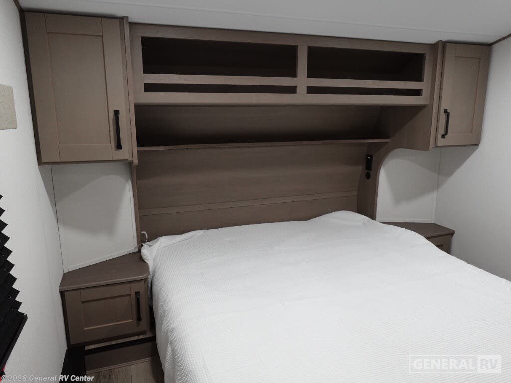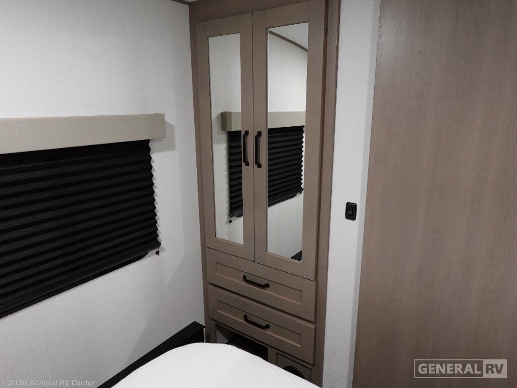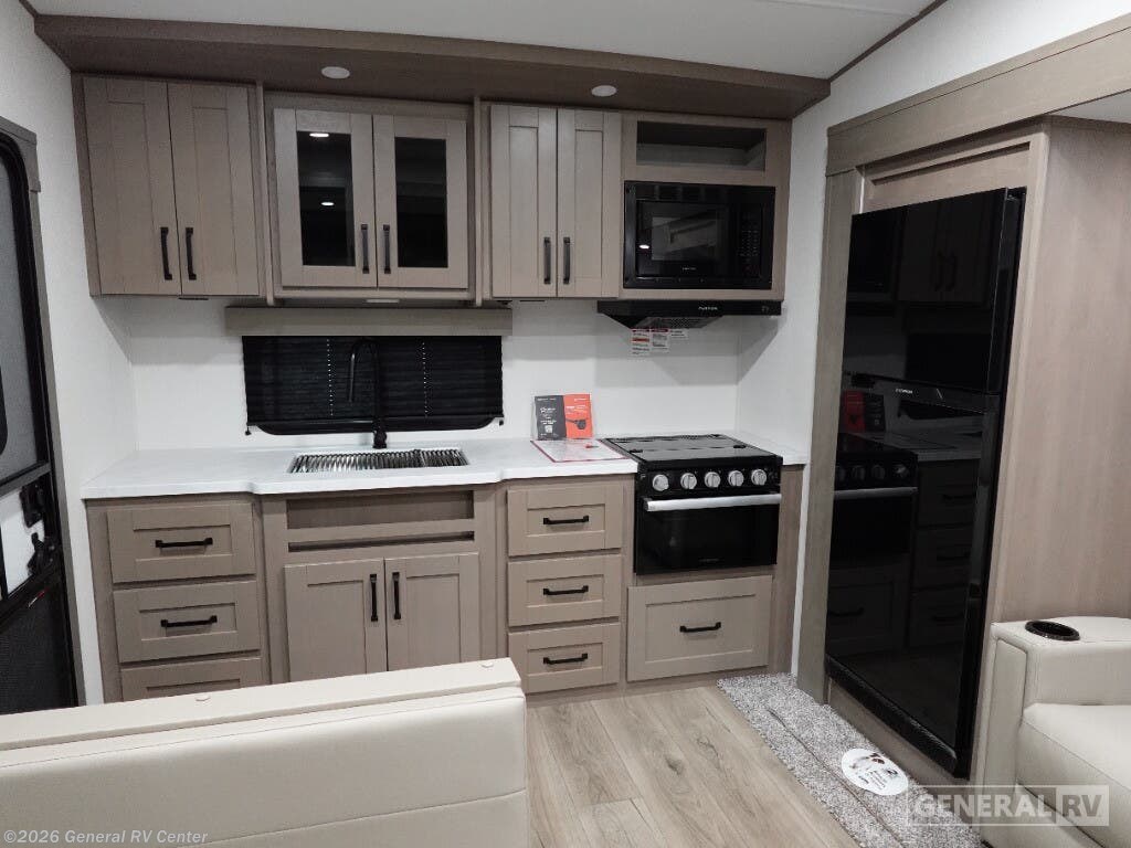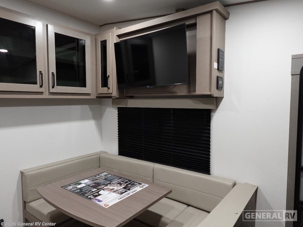 Experience the perfect blend of comfort and adventure with the 2026 Grand Design Reflection 100 Series 22RK. This travel trailer is designed for those who crave the open road without sacrificing the comforts of home. At just under 27 feet, it offers a spacious yet manageable layout, ideal for both weekend getaways and extended trips. The rear kitchen is a chef's delight, featuring a full-size electric refrigerator and three-burner cooktop, making meal prep a breeze. The center living area, complete with a cozy booth dinette and theater seating, creates a welcoming space for family gatherings or a quiet night in. The Reflection 22RK is thoughtfully designed to maximize every inch of space. The front bedroom boasts a plush queen bed, ensuring a restful night's sleep, while the convertible seating options accommodate up to six guests comfortably. Enjoy the great outdoors under the expansive 18-foot powered awning, perfect for al fresco dining or simply relaxing with a good book. With ample storage, including unobstructed pass-thru compartments and an all-in-one docking station, you'll have everything you need at your fingertips. Ready to explore more? Visit your nearest General RV dealership to discover the Reflection 100 Series today!