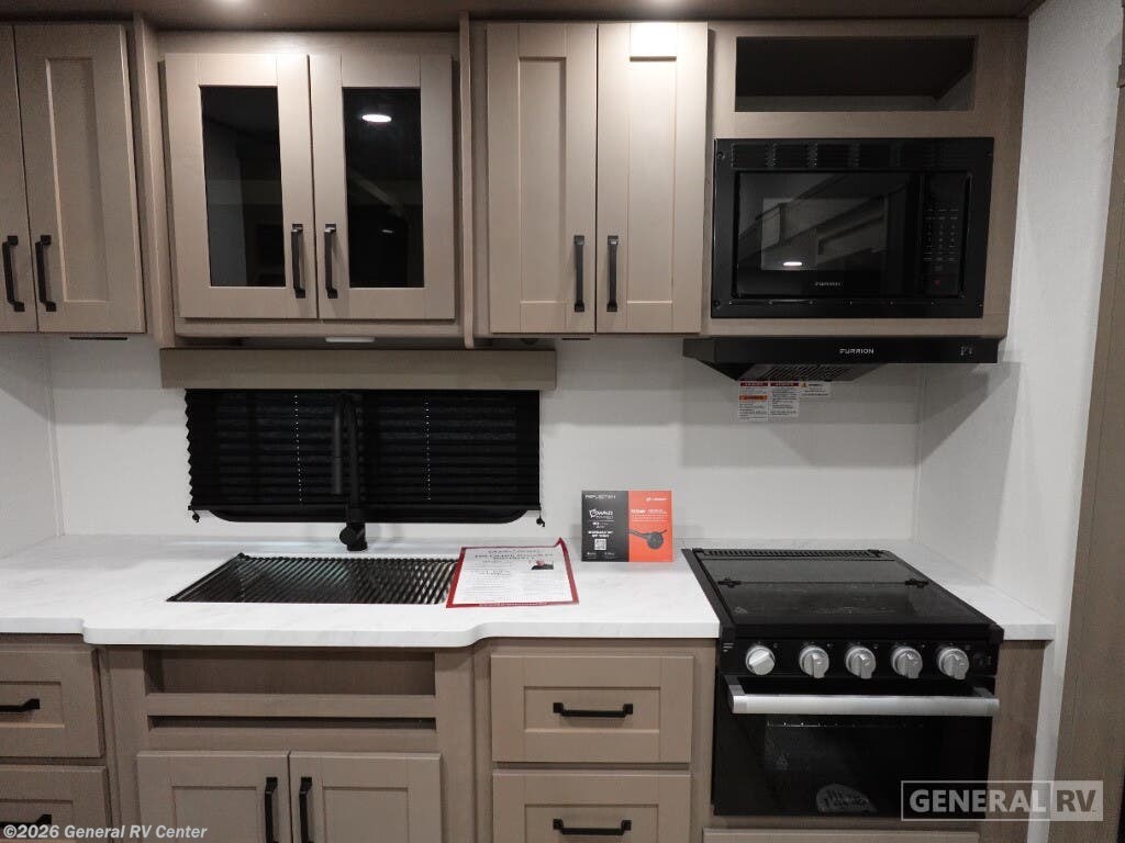 Experience the perfect blend of comfort and adventure with the 2026 Grand Design Reflection 100 Series 22RK. This travel trailer is designed for those who crave the open road without sacrificing the comforts of home. At just under 27 feet, it offers a spacious yet manageable layout, ideal for both weekend getaways and extended trips. The rear kitchen is a chef's delight, featuring a full-size electric refrigerator and three-burner cooktop, making meal prep a breeze. The center living area, complete with a cozy booth dinette and theater seating, creates a welcoming space for family gatherings or a quiet night in. The Reflection 22RK is thoughtfully designed to maximize every inch of space. The front bedroom boasts a plush queen bed, ensuring a restful night's sleep, while the convertible seating options accommodate guests comfortably. Enjoy the great outdoors under the expansive 18-foot powered awning, perfect for al fresco dining or simply relaxing with a good book. With ample storage, including unobstructed pass-thru compartments and an all-in-one docking station, you'll have everything you need at your fingertips. Ready to explore more? Visit your nearest General RV dealership to discover the Reflection 100 Series today!