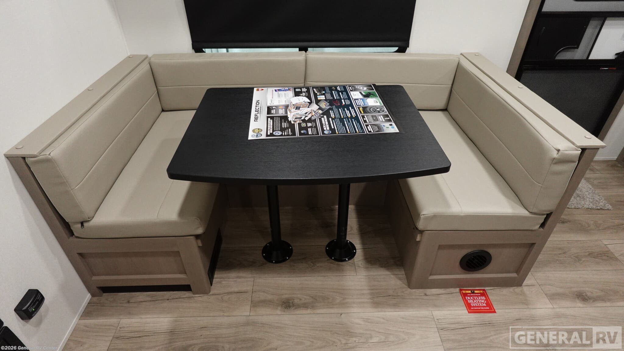 Experience the perfect blend of comfort and adventure with the 2026 Grand Design Reflection 100 Series 22RK. This travel trailer is designed for those who crave the open road without sacrificing the comforts of home. At just under 27 feet, it offers a spacious yet manageable layout, ideal for both weekend getaways and extended trips. The rear kitchen is a chef's delight, featuring a full-size electric refrigerator and three-burner cooktop, making meal prep a breeze. The center living area, complete with a cozy booth dinette and optional theater seating, creates a welcoming space for family gatherings or a quiet night in. The Reflection 22RK is thoughtfully designed to maximize every inch of space. The front bedroom boasts a plush queen bed, ensuring a restful night's sleep, while the convertible seating options accommodate up to four guests comfortably. Enjoy the great outdoors under the expansive 18-foot powered awning, perfect for al fresco dining or simply relaxing with a good book. With ample storage, including unobstructed pass-thru compartments and an all-in-one docking station, you'll have everything you need at your fingertips. Ready to explore more? Visit your nearest General RV dealership to discover the Reflection 100 Series today!