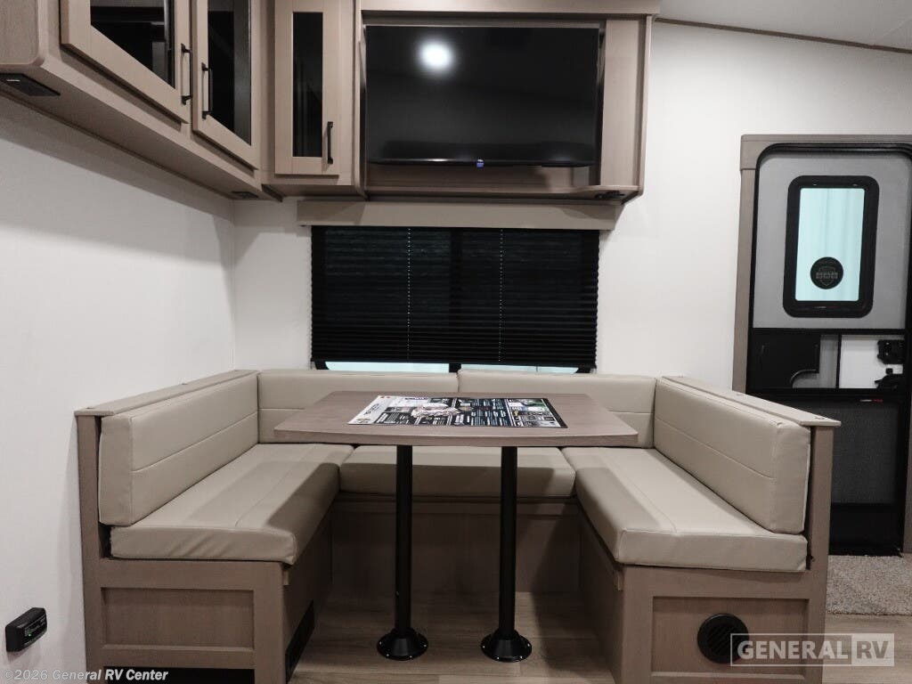 Experience the perfect blend of comfort and adventure with the 2026 Grand Design Reflection 100 Series 22RK. This travel trailer is designed for those who crave the open road without sacrificing the comforts of home. At just under 27 feet, it offers a spacious yet manageable layout, ideal for both weekend getaways and extended trips. The rear kitchen is a chef's delight, featuring a full-size electric refrigerator and three-burner cooktop, making meal prep a breeze. The center living area, complete with a cozy booth dinette and theater seating, creates a welcoming space for family gatherings or a quiet night in. The Reflection 22RK is thoughtfully designed to maximize every inch of space. The front bedroom boasts a plush queen bed, ensuring a restful night's sleep, while the convertible seating options accommodate guests comfortably. Enjoy the great outdoors under the expansive 18-foot powered awning, perfect for al fresco dining or simply relaxing with a good book. With ample storage, including unobstructed pass-thru compartments and an all-in-one docking station, you'll have everything you need at your fingertips. Ready to explore more? Visit your nearest General RV dealership to discover the Reflection 100 Series today!
