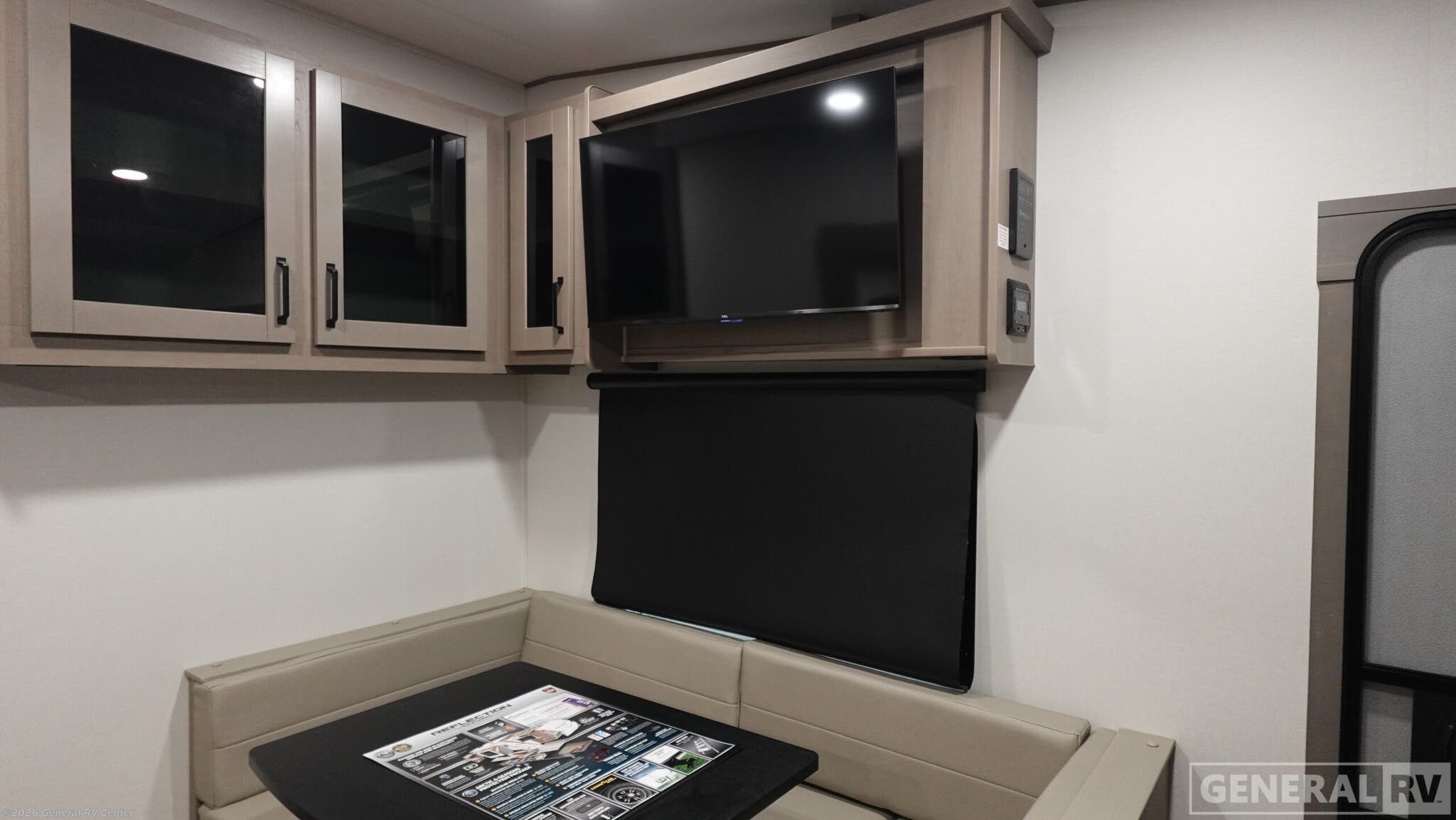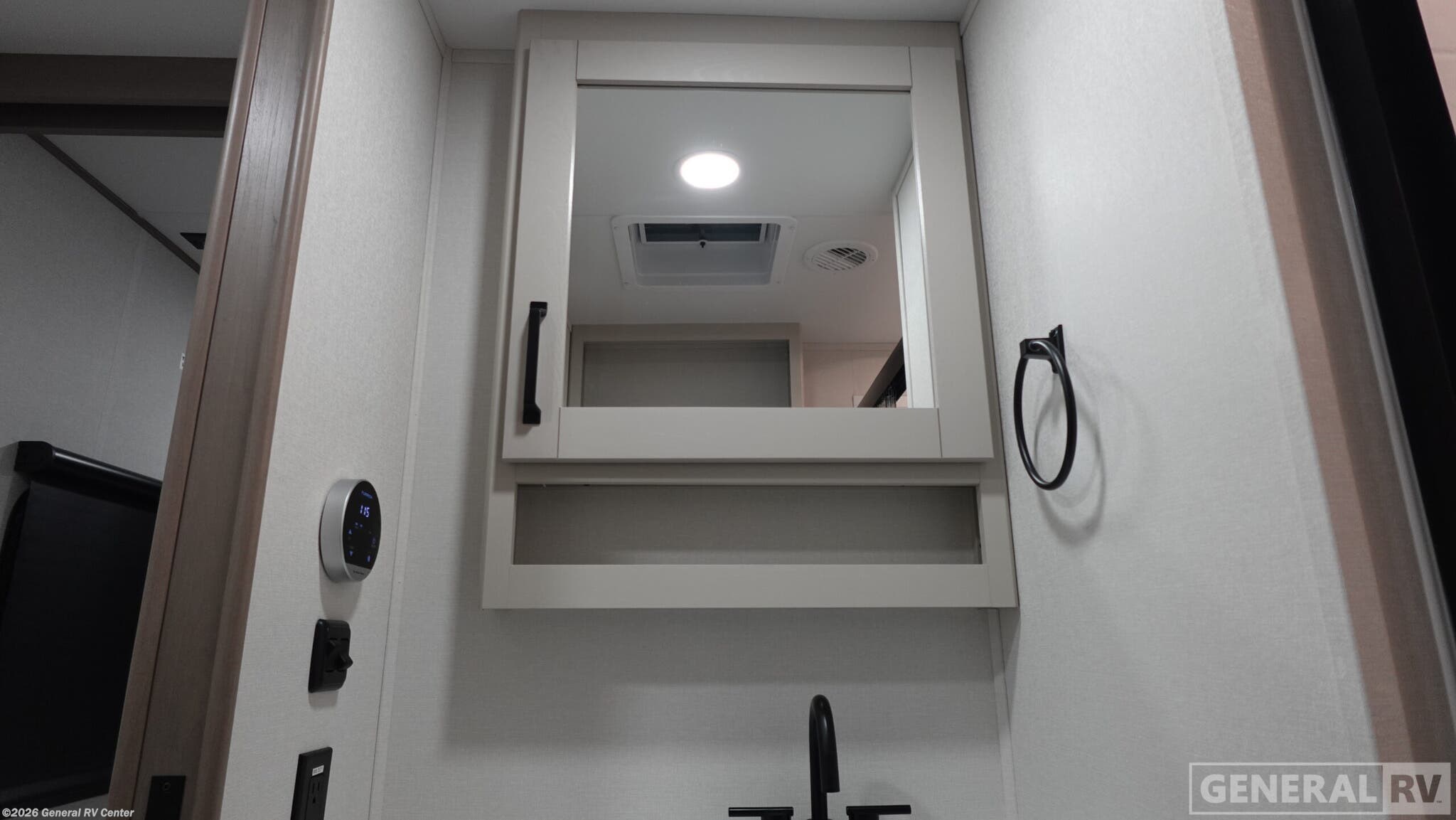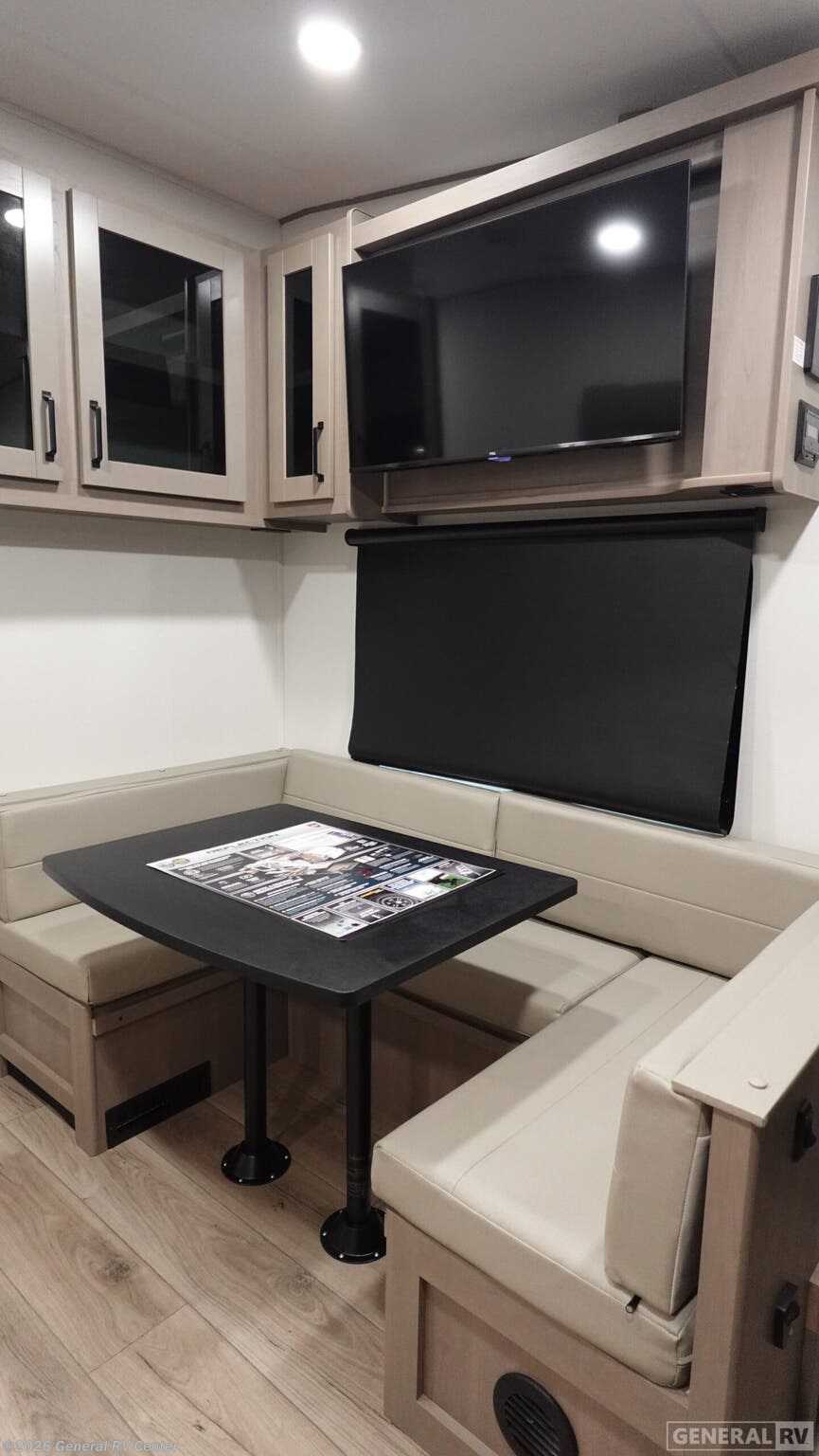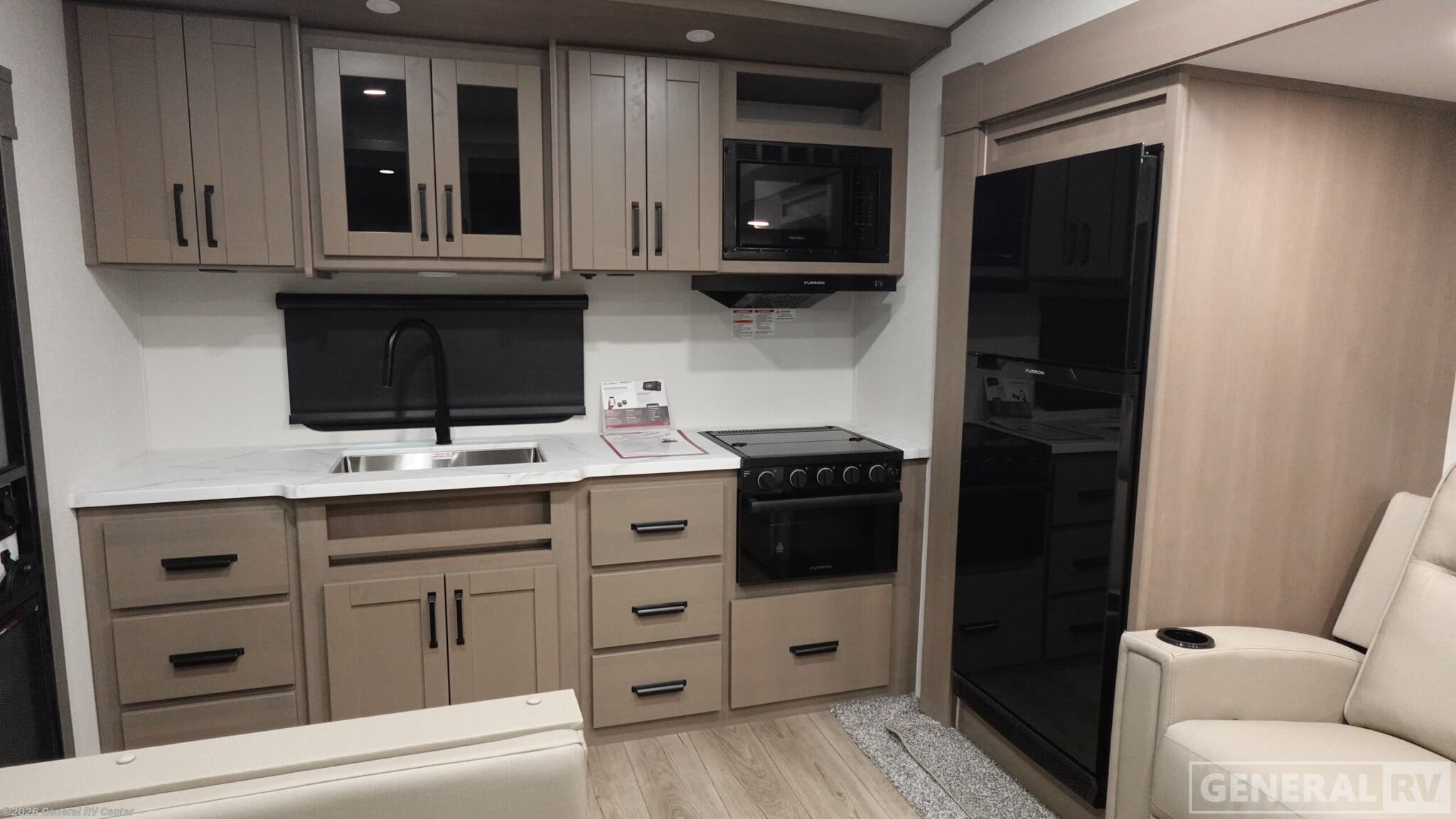 This rear kitchen fifth wheel is sure to meet all of your camping needs! Since the exterior length is only 26' 11", you can easily maneuver in and out of campgrounds. The rear kitchen includes ample counter space to prep meals, a three burner cooktop, and overhead storage for all your necessities. There is a 10 cu. ft. 12V refrigerator within the slide out that also includes the theater seating, and the U-shaped dinette provides a place to dine or play a card game. You will appreciate having convenient storage by the entry door, along with pull-out pet bowls, a functional wardrobe closet in the bedroom and an exterior pass-thru for belongings and camping gear. Each Reflection 100 Series fifth wheel by Grand Design is affordable and packed with luxury for unforgettable camping memories! The MorRyde CRE3000 suspension system and Goodyear Endurance tires will provide smooth towing from home to campground. And the solar package with a 180W solar panel, 60 Amp charge controller and 12V refrigerator will allow you to camp for longer periods of time and in more locations! A heated and enclosed underbelly with circulating heat is included in the Arctic 4-Seasons Protection Package, along with a double insulated roof and front cap, and thermofoil insulation under the holding tanks so you can camp all year long if you choose. You will appreciate having an on-demand water heater for hot showers after exploring, and the universal all-in-one docking station will let you monitor your RVs tanks levels and functions with ease. These models also include many luxurious interior features, such as premium Congoleum flooring, pleated shades, residential cabinetry, and matte black fixtures and hardware. Don't let the Reflection 100 Series fifth wheels pass you by!