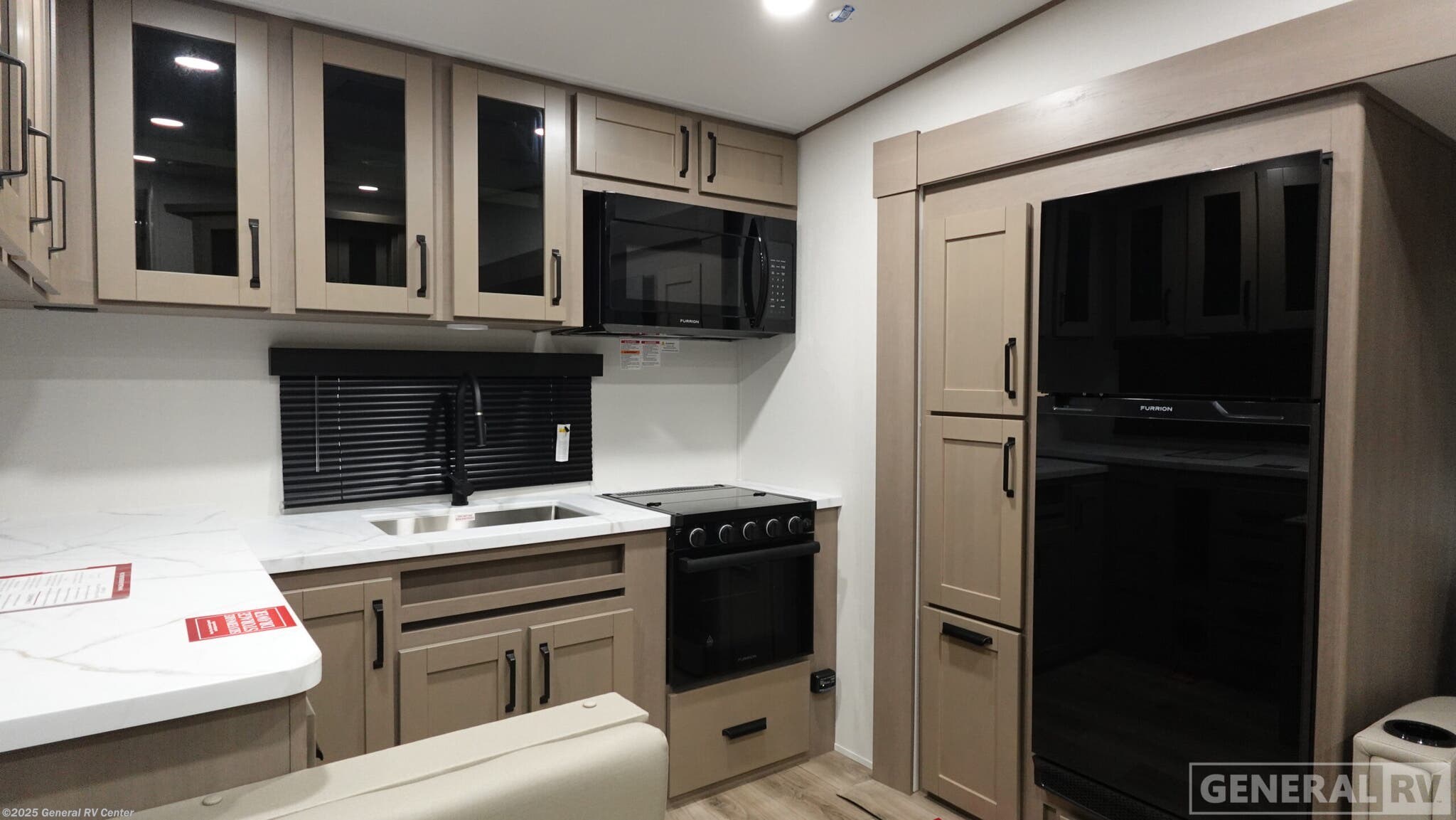 Experience the perfect blend of comfort and style with the 2026 Grand Design Reflection 150 Series 250ML. This fifth wheel is designed to elevate your adventures with its thoughtful layout and luxurious features. At a manageable 29 feet in length, it offers a spacious interior that will make you feel right at home on the road. The 62" theater seating and cozy booth dinette are perfect for relaxing or entertaining, while the 40" TV ensures you never miss your favorite shows. The kitchen is equipped with a 10 cu. ft. refrigerator and a handy pantry, making meal prep a breeze. Retreat to the inviting bedroom featuring a 60" x 80" queen bed, with ample storage options to keep your belongings organized. The bathroom offers a convenient layout with linen storage, and the RV is prepped for a washer/dryer, adding to your convenience. With a 17' awning, enjoy outdoor relaxation and take advantage of the unobstructed pass-thru storage for all your gear. The Reflection 150 Series 250ML is more than just an RV; it's your ticket to adventure with all the comforts of home. For more information, visit your nearest General RV dealership.