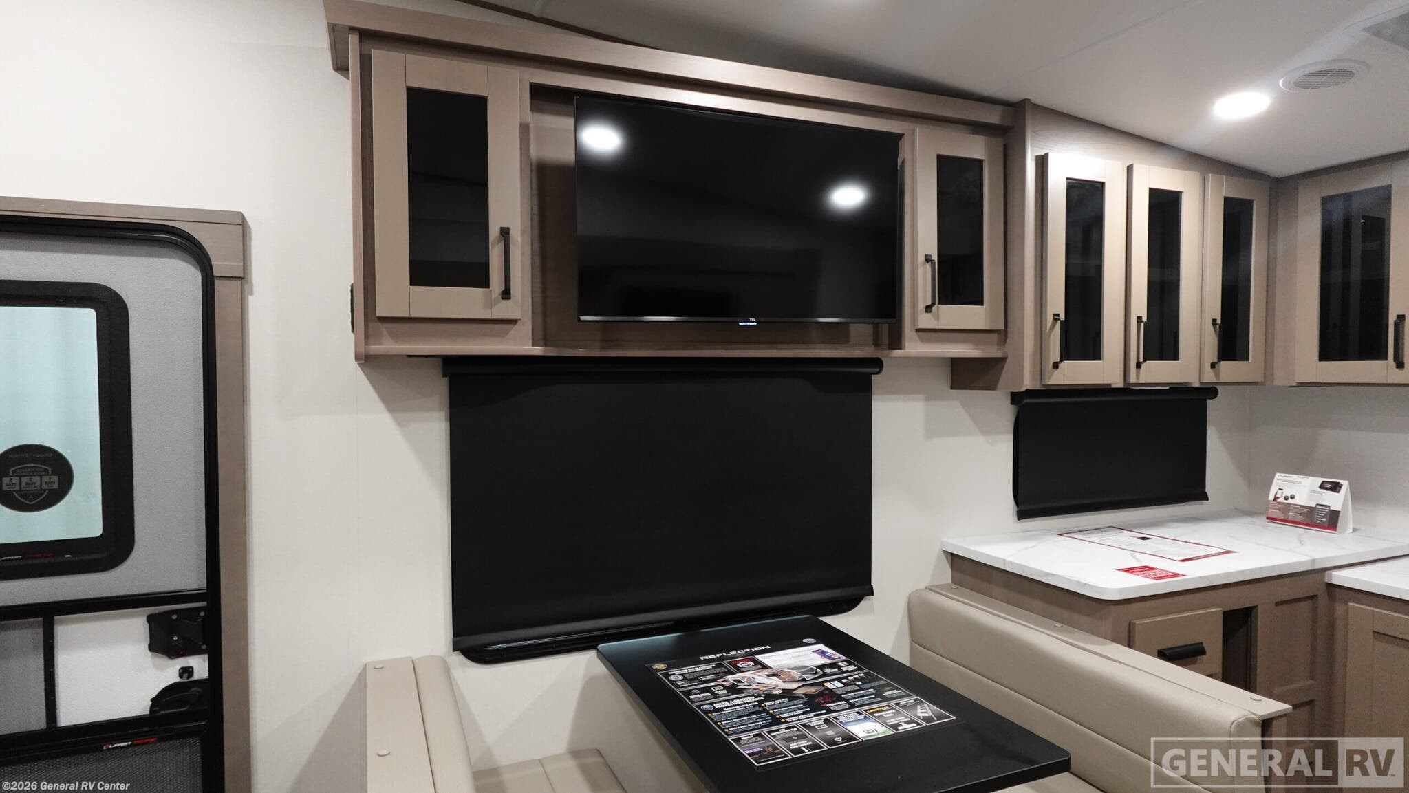 Experience the perfect blend of comfort and style with the 2026 Grand Design Reflection 150 Series 250ML. This fifth wheel is designed to elevate your adventures with its thoughtful layout and luxurious features. At a manageable 29 feet in length, it offers a spacious interior that will make you feel right at home on the road. The 62" theater seating and cozy booth dinette are perfect for relaxing or entertaining, while the 40" TV ensures you never miss your favorite shows. The kitchen is equipped with a 10 cu. ft. refrigerator and a handy pantry, making meal prep a breeze. Retreat to the inviting bedroom featuring a 60" x 80" queen bed, with ample storage options to keep your belongings organized. The bathroom offers a convenient layout with linen storage, and the RV is prepped for a washer/dryer, adding to your convenience. With a 17' awning, enjoy outdoor relaxation and take advantage of the unobstructed pass-thru storage for all your gear. The Reflection 150 Series 250ML is more than just an RV; it's your ticket to adventure with all the comforts of home. For more information, visit your nearest General RV dealership.