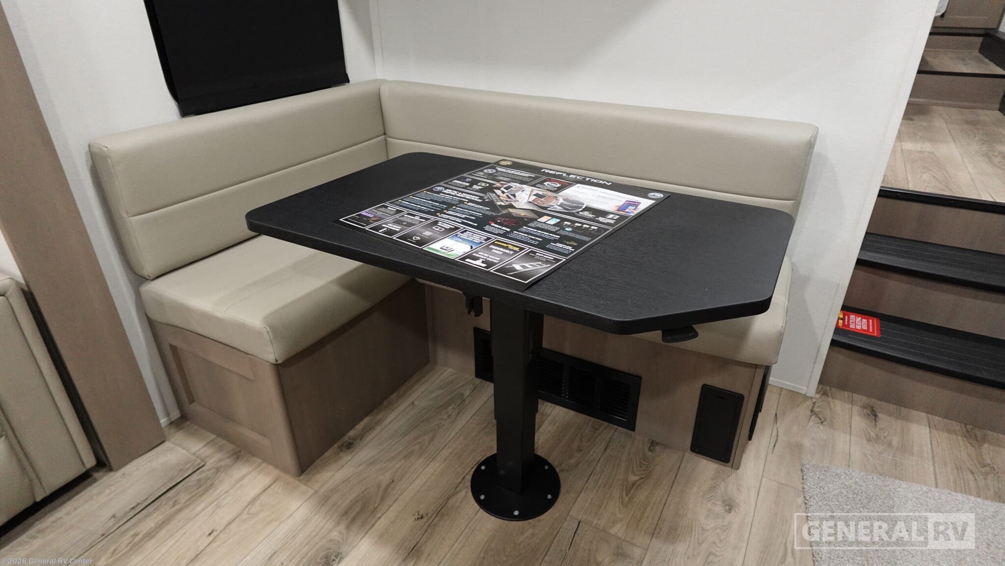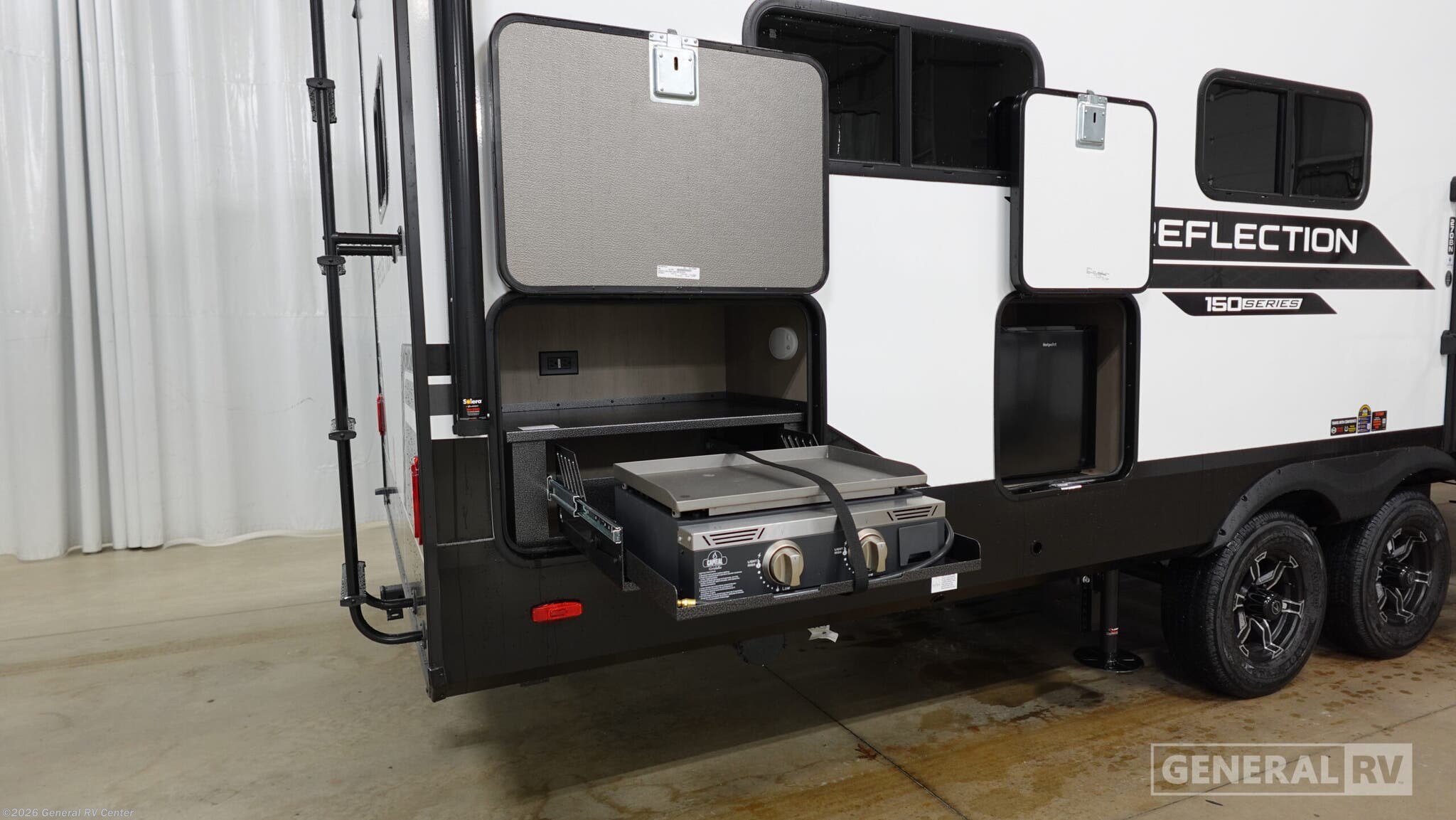 Grand Design Reflection 150 Series fifth wheel 270BN highlights: Outside Griddle Walk-In Shower Breakfast Nook Outdoor Spray Port 78" Theater Seating You will love this fifth wheel featuring a single slide for added interior living space and all the comforts and conveniences it provides you while you travel. The slide features a 78" theater seat plus there is a breakfast nook for more seating. Both can easily view the entertainment center with 40" TV. A rear kitchen indoors provides everything you need to create meals like home while on the road, and if you want to spend as much time outside as possible, then the outdoor griddle will certainly accommodate you for meals. Up front, a cozy private bedroom with queen bed, wardrobe, and overhead cabinets. Right next door, you will find a large walk-in shower, as well as a toilet, and a vanity with sink and linen cabinet for your towels and toiletries. You will also love the full unobstructed pass-through compartment for all of your gear, plus so much more! With any Reflection 150 Series fifth wheel by Grand Design, there is more available payload capacity and a broader range of half-ton trucks capable of towing this fifth wheel, and no slider hitch is needed thanks to the 90-degree turning radius which makes them short bed friendly and easier to tow. The mandatory Ultimate Power package provides a "One-Touch" automatic leveling system and a detachable power cord with LED light for easy setup, plus motion sensor pass-through lighting and entry lighting, and the Tire Linc TPMS will help you stay safe on the road. The interior offers residential luxury from the cabinetry and premium Congoleum flooring, to the booth dinette and residential-style window treatment. Make your refined decision today!