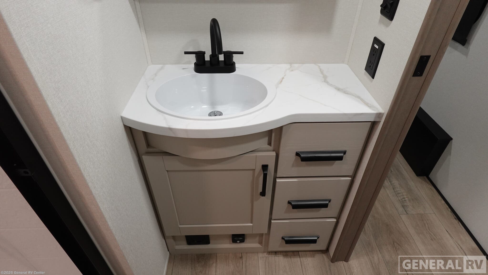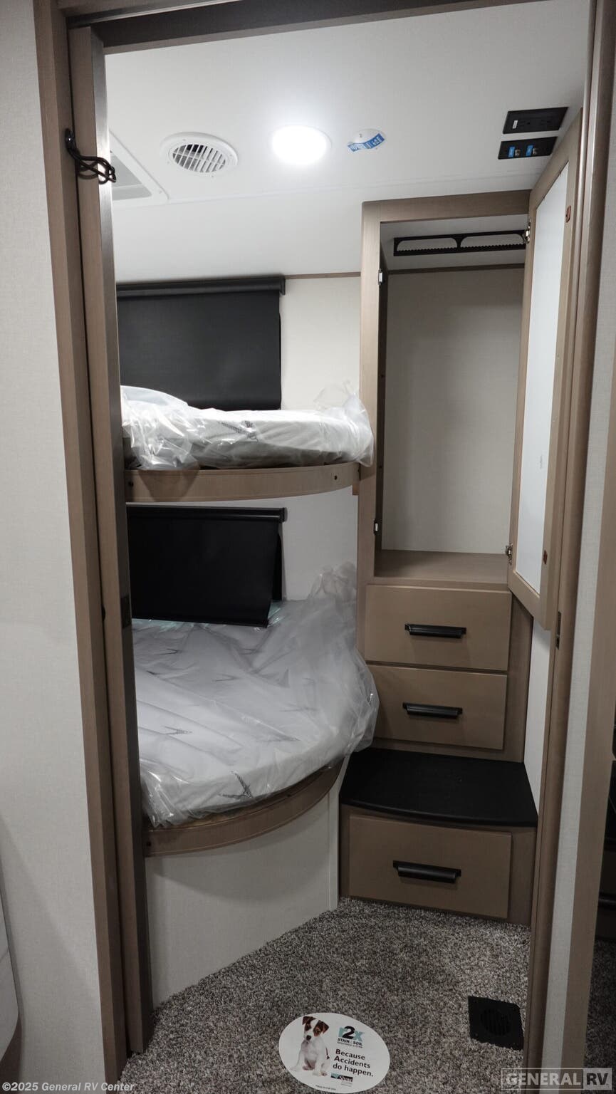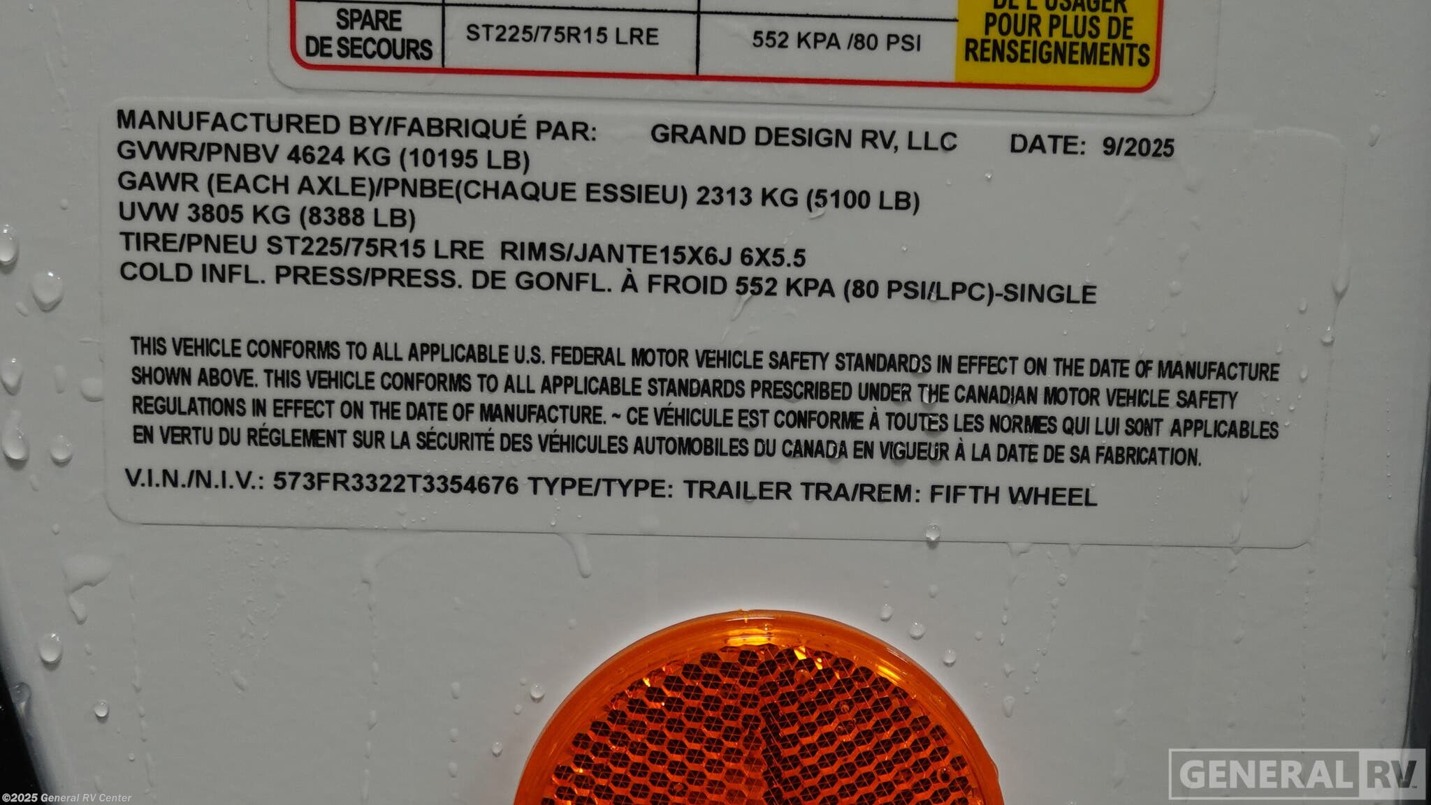 Experience the ultimate in family-friendly RV living with the 2026 Grand Design Reflection 100 Series 27BH. This spacious and versatile fifth wheel is designed to accommodate up to ten sleepers comfortably, making it perfect for family adventures or trips with friends. The thoughtful layout includes two double beds, a cozy queen bed, and convertible sleeping options, ensuring everyone has a comfortable place to rest after a day of exploring. The heart of the 27BH is its central kitchen and living area, featuring a full-size electric refrigerator and a three-burner cooktop, perfect for preparing meals on the go. The U-shaped dinette and tri-fold sofa offer ample seating for dining and relaxation, while the 40" TV provides entertainment for cozy nights in. The rear bunkhouse is a delightful retreat for the kids, offering them their own private space. With a 20 ft. powered retractable awning, you can effortlessly extend your living space outdoors, creating the perfect setting for enjoying the great outdoors. Practicality meets luxury with features like the center bath and rear bedroom, ensuring convenience and privacy. Ample storage, including unobstructed pass-through storage, means you can bring along all your adventure gear. With a robust GVWR of 10,195 lbs and a cargo capacity of 2,157 lbs, this RV is as capable as it is comfortable. Visit your nearest General RV dealership to explore the Reflection 27BH and start planning your next getaway.