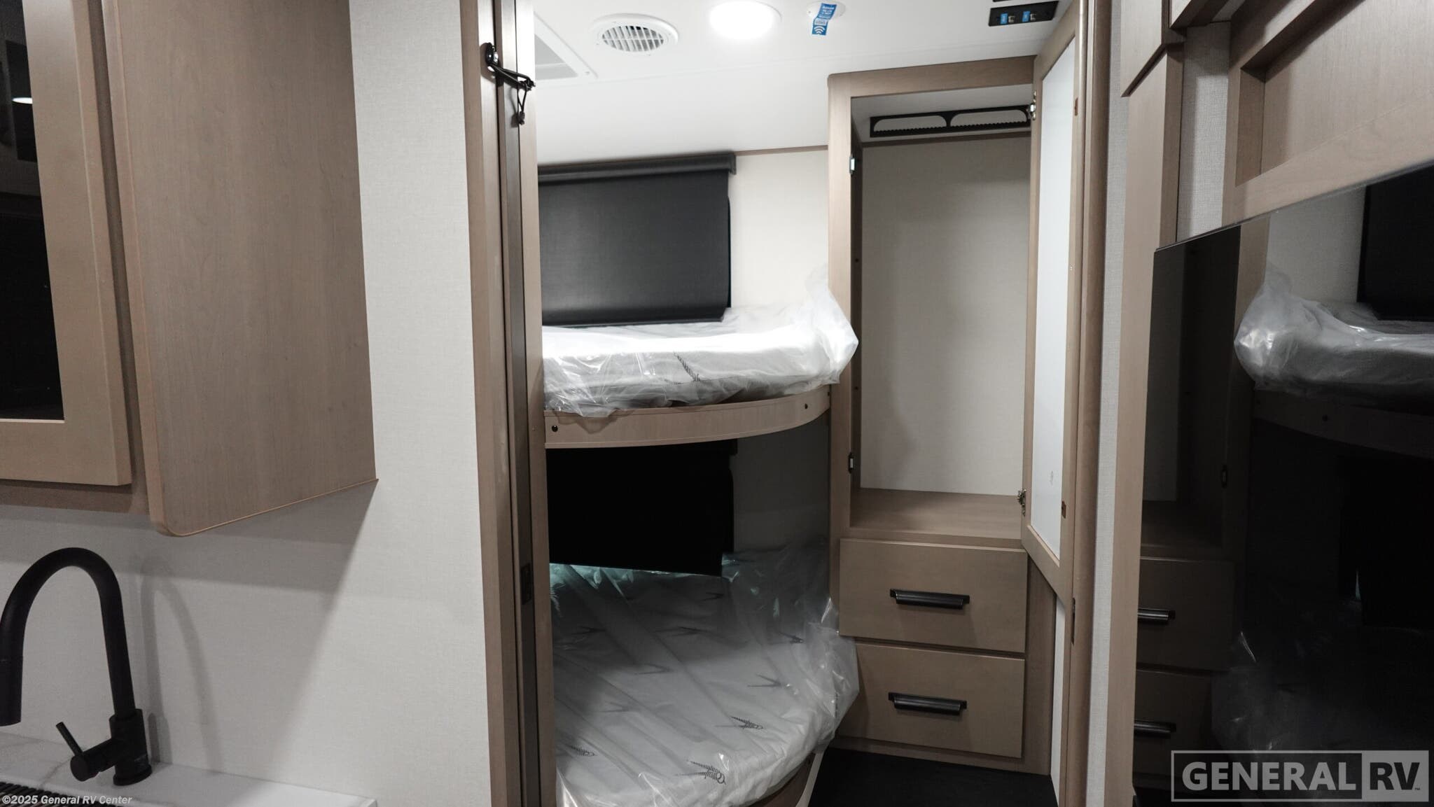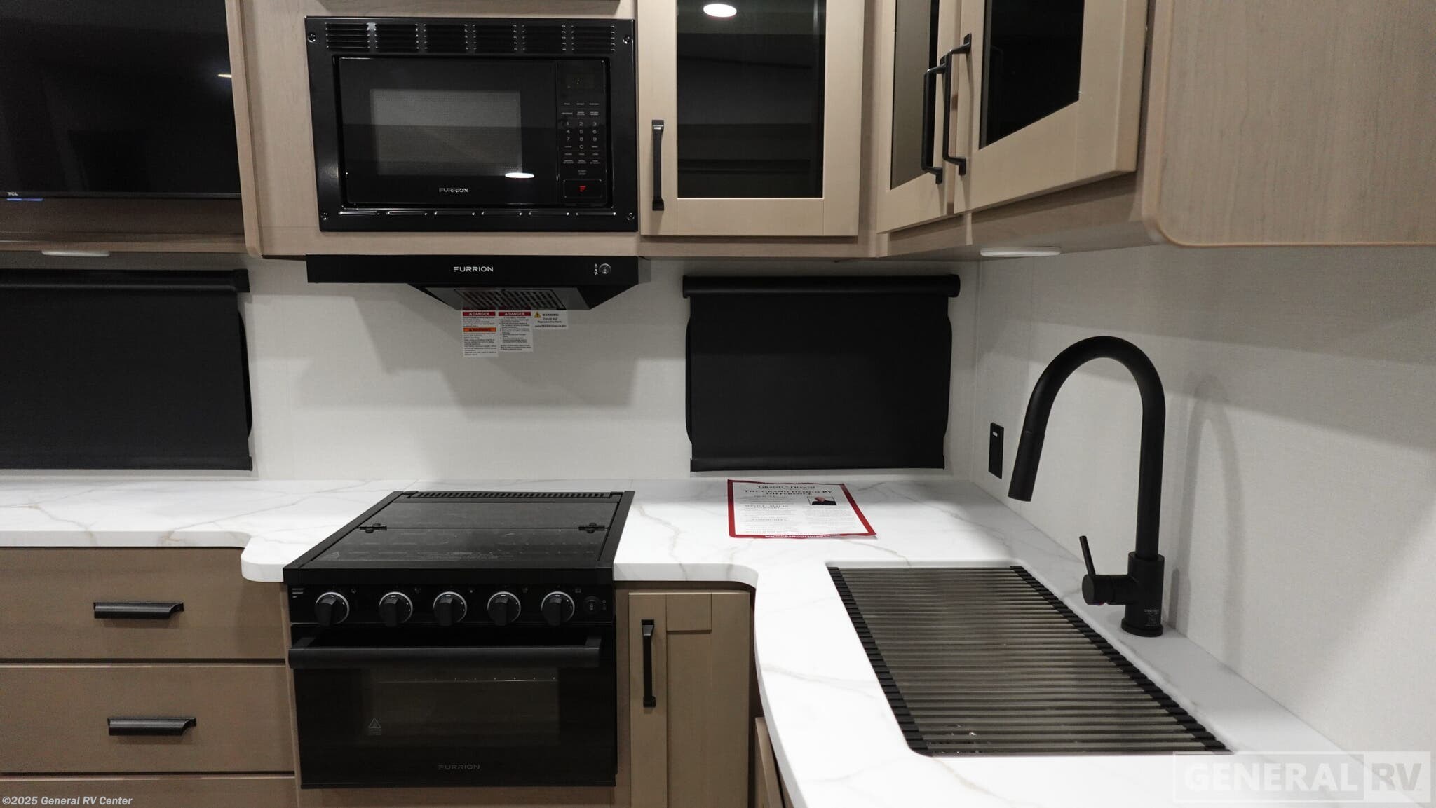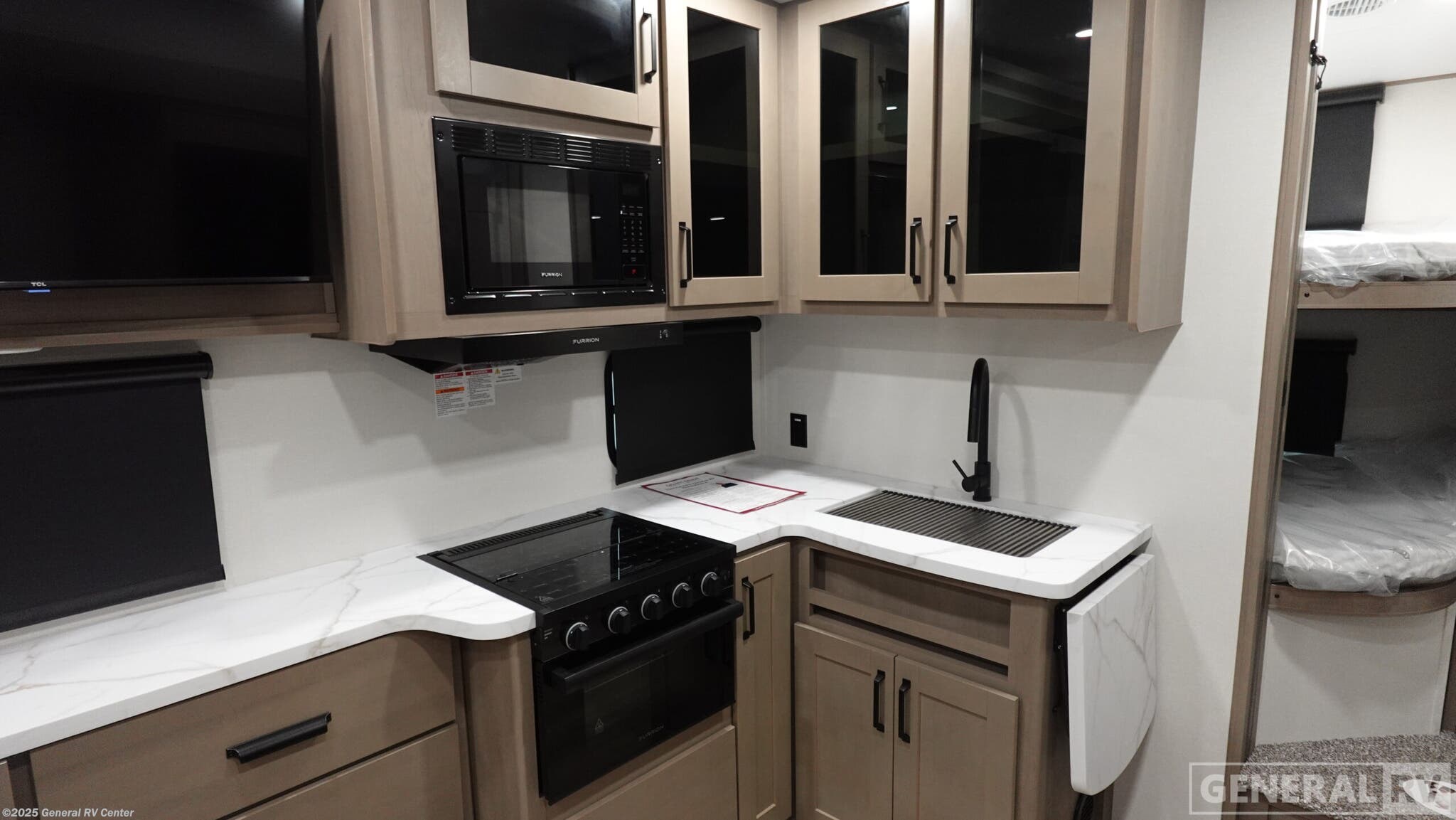 Experience the ultimate in family-friendly RV living with the 2026 Grand Design Reflection 100 Series 27BH. This spacious and versatile fifth wheel is designed to accommodate up to ten sleepers comfortably, making it perfect for family adventures or trips with friends. The thoughtful layout includes two double beds, a cozy queen bed, and convertible sleeping options, ensuring everyone has a comfortable place to rest after a day of exploring. The heart of the 27BH is its central kitchen and living area, featuring a full-size electric refrigerator and a three-burner cooktop, perfect for preparing meals on the go. The U-shaped dinette and tri-fold sofa offer ample seating for dining and relaxation, while the 40" TV provides entertainment for cozy nights in. The rear bunkhouse is a delightful retreat for the kids, offering them their own private space. With a 20 ft. powered retractable awning, you can effortlessly extend your living space outdoors, creating the perfect setting for enjoying the great outdoors. Practicality meets luxury with features like the center bath and rear bedroom, ensuring convenience and privacy. Ample storage, including unobstructed pass-through storage, means you can bring along all your adventure gear. With a robust GVWR of 10,195 lbs and a cargo capacity of 2,157 lbs, this RV is as capable as it is comfortable. Visit your nearest General RV dealership to explore the Reflection 27BH and start planning your next getaway.